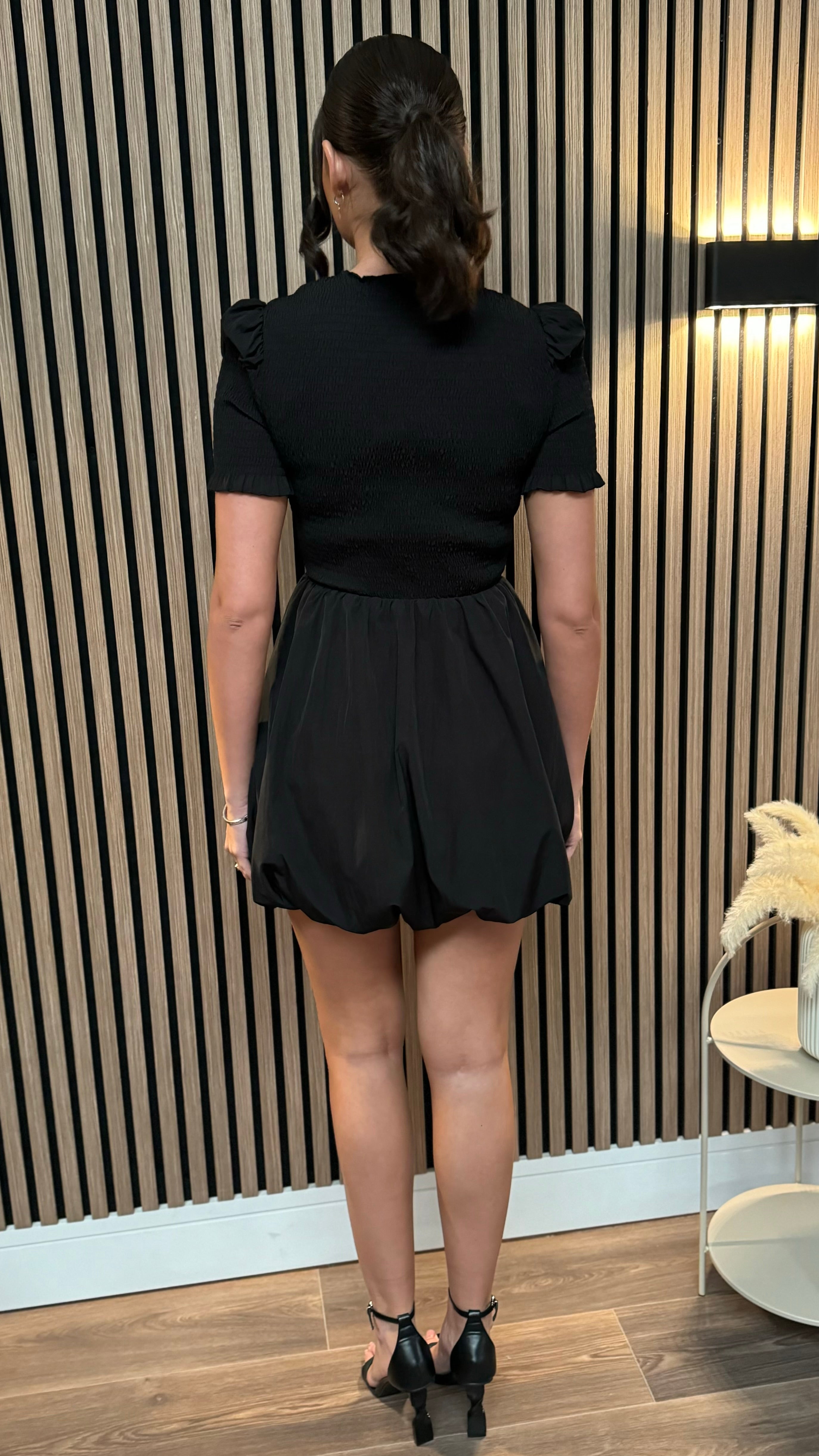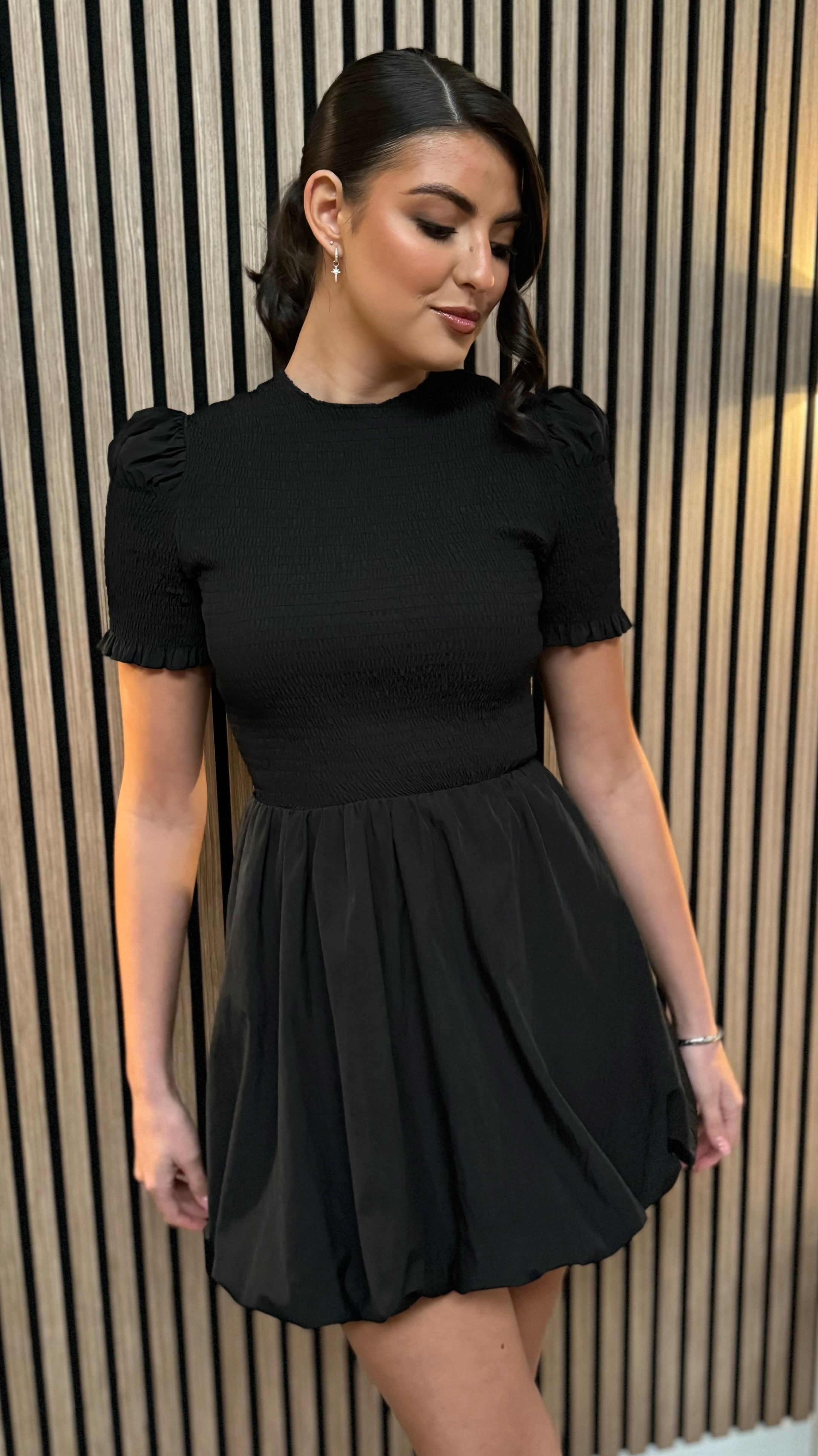 Miley Black Puffball Hem Mini Dress