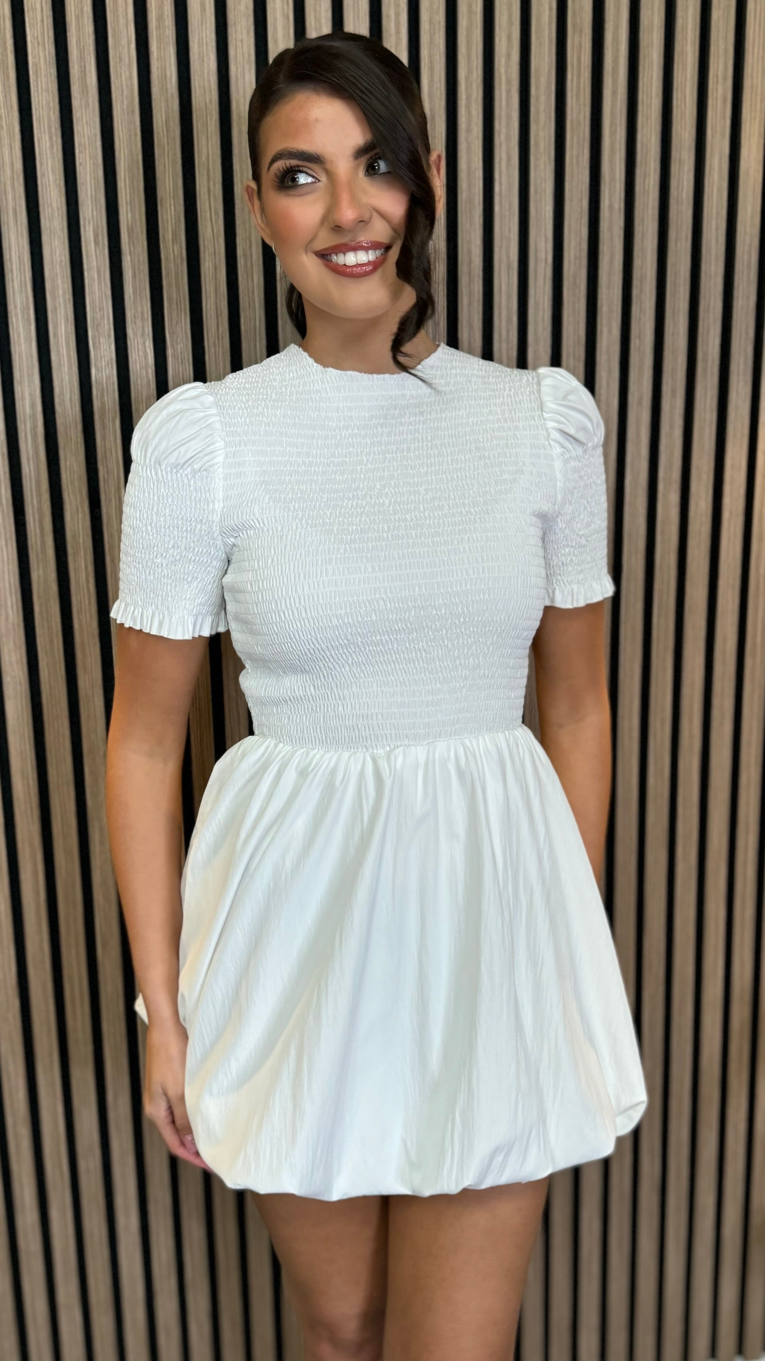 Miley White Puffball Hem Mini Dress