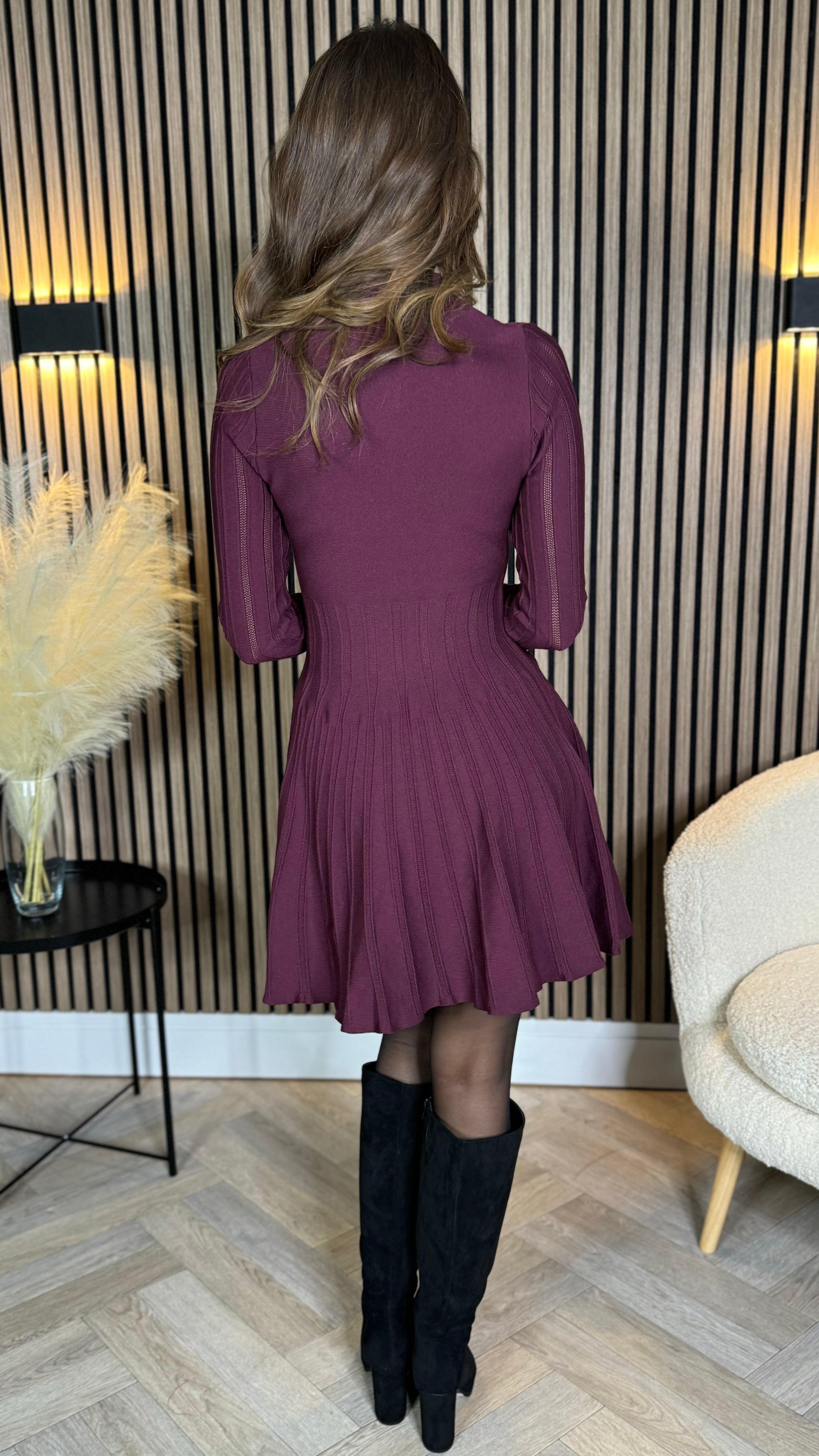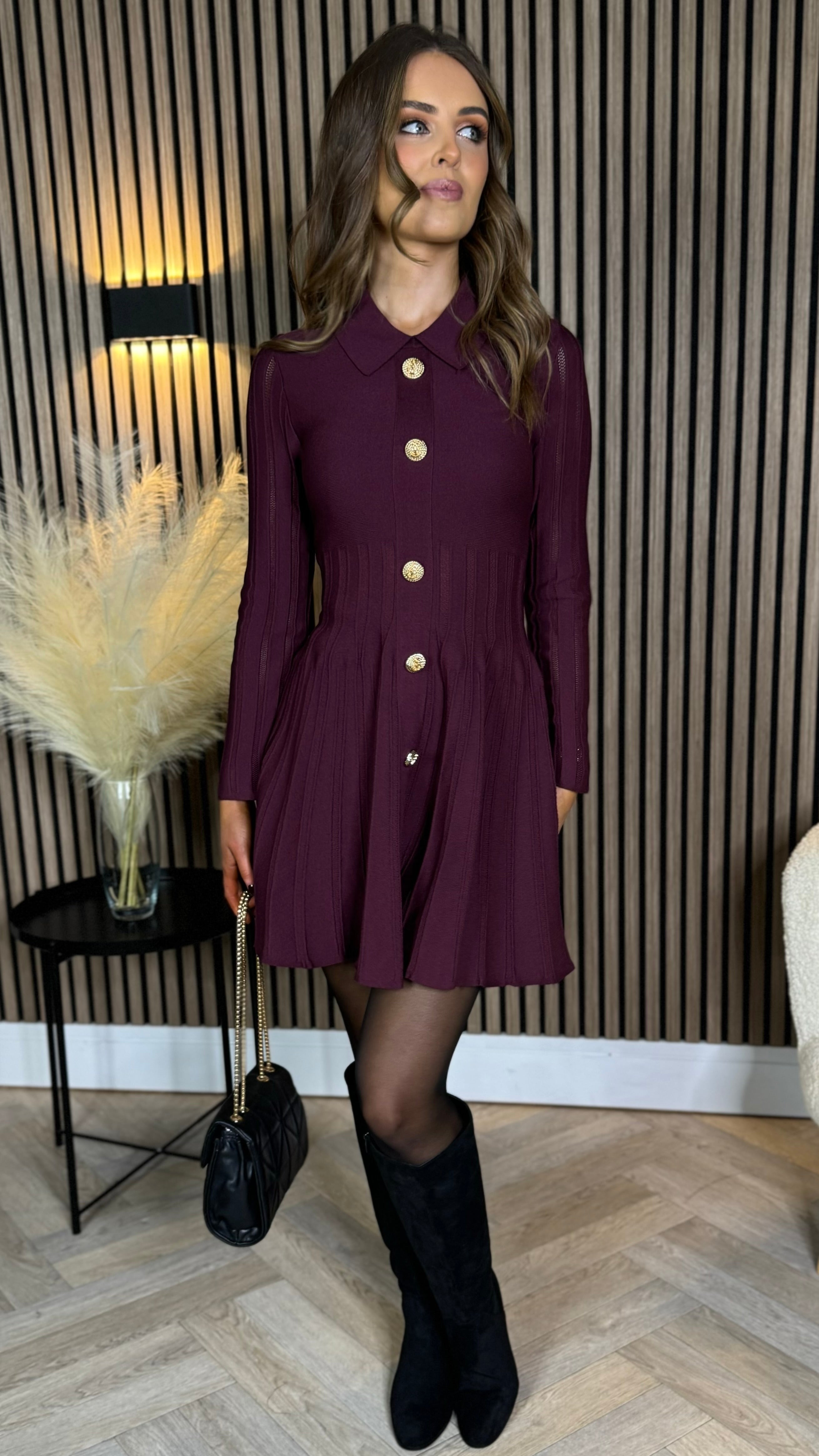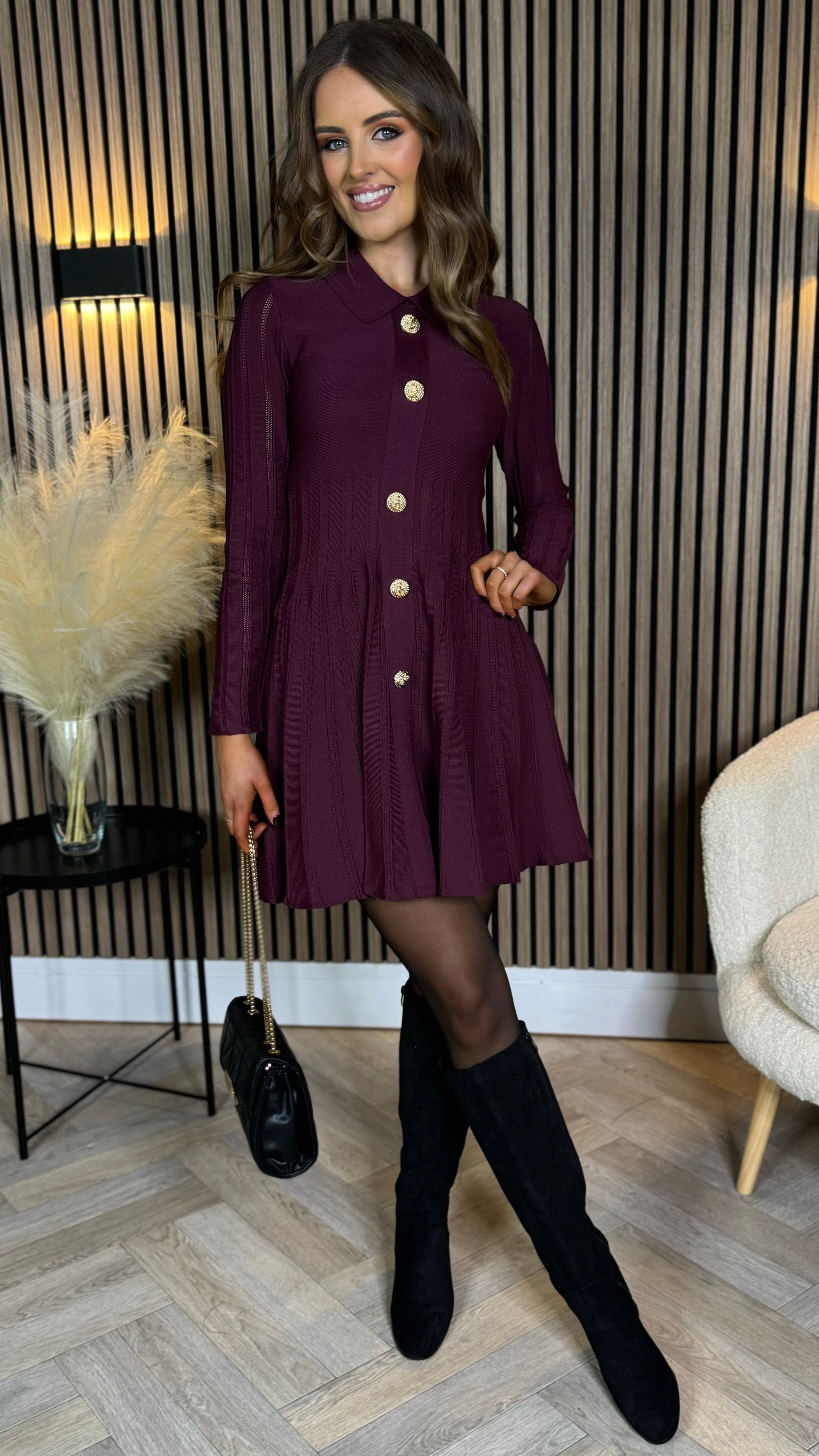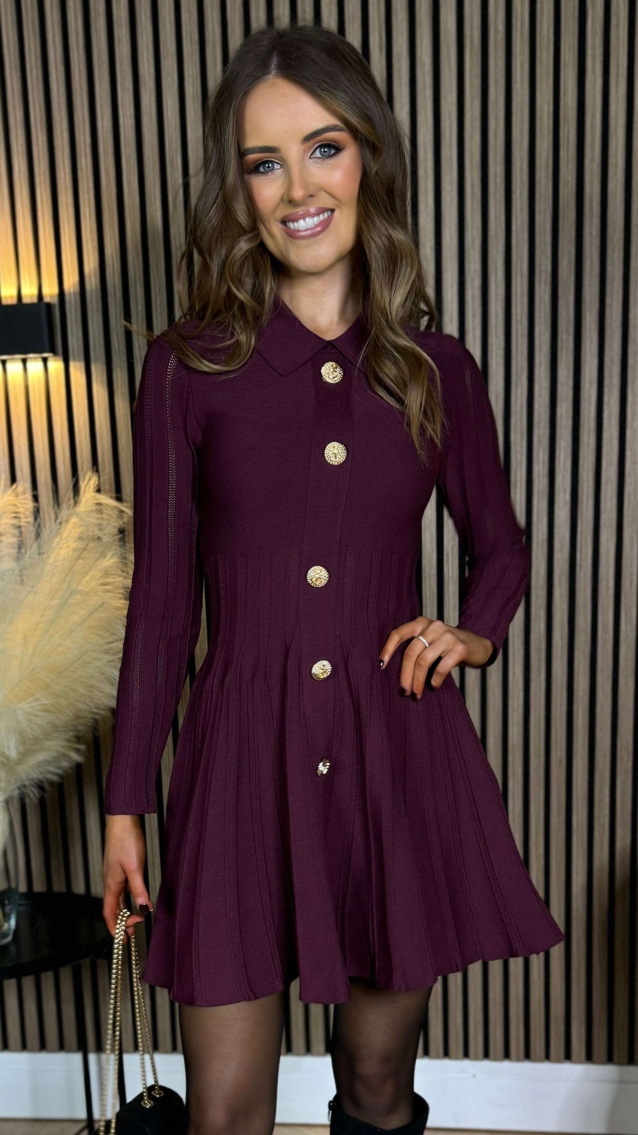 Nessa Burgundy Button Down Collared Knit Mini Dress
