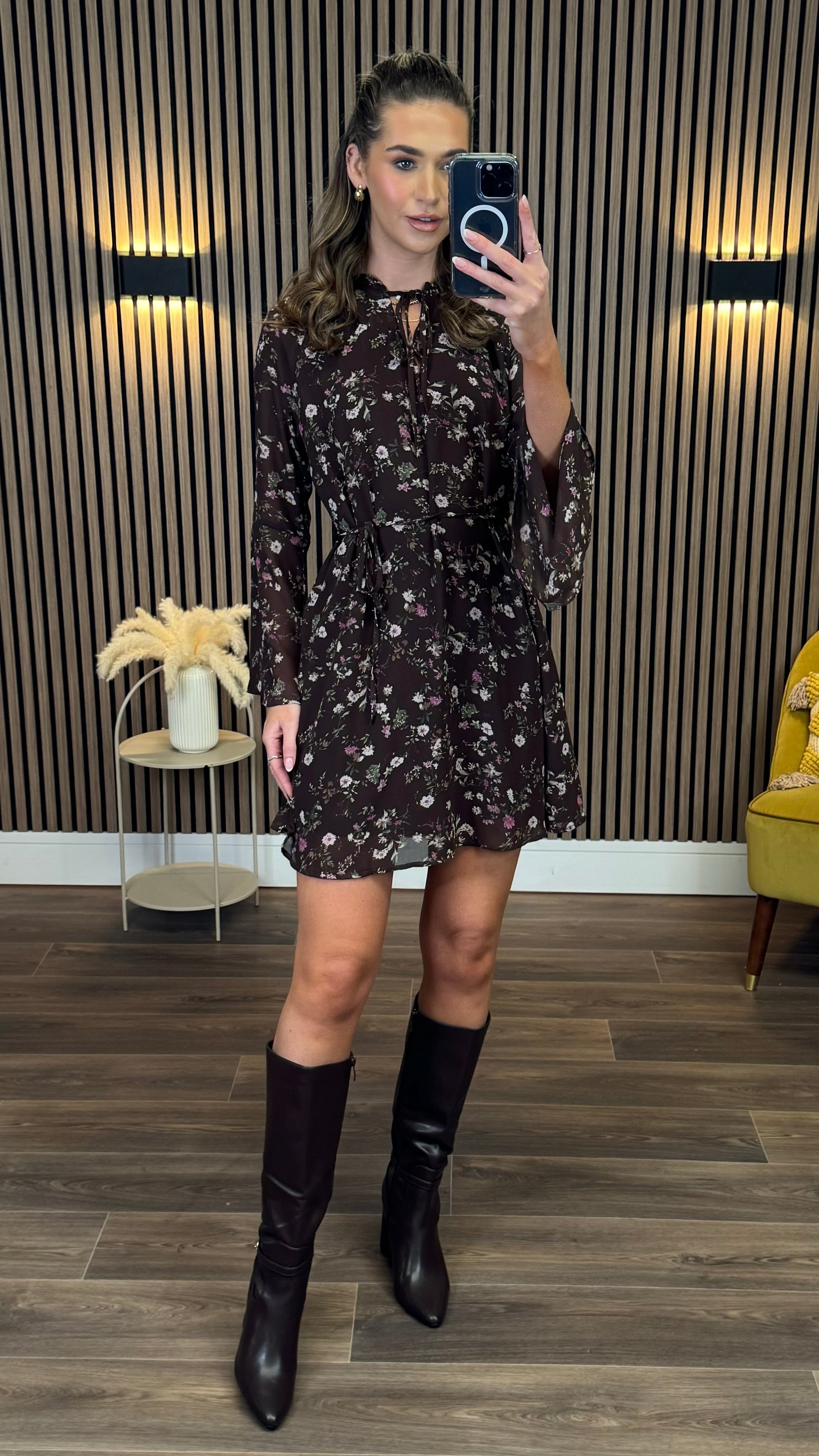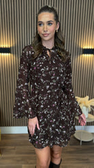 Ryder Brown Floral Tie Detail Mini Dress