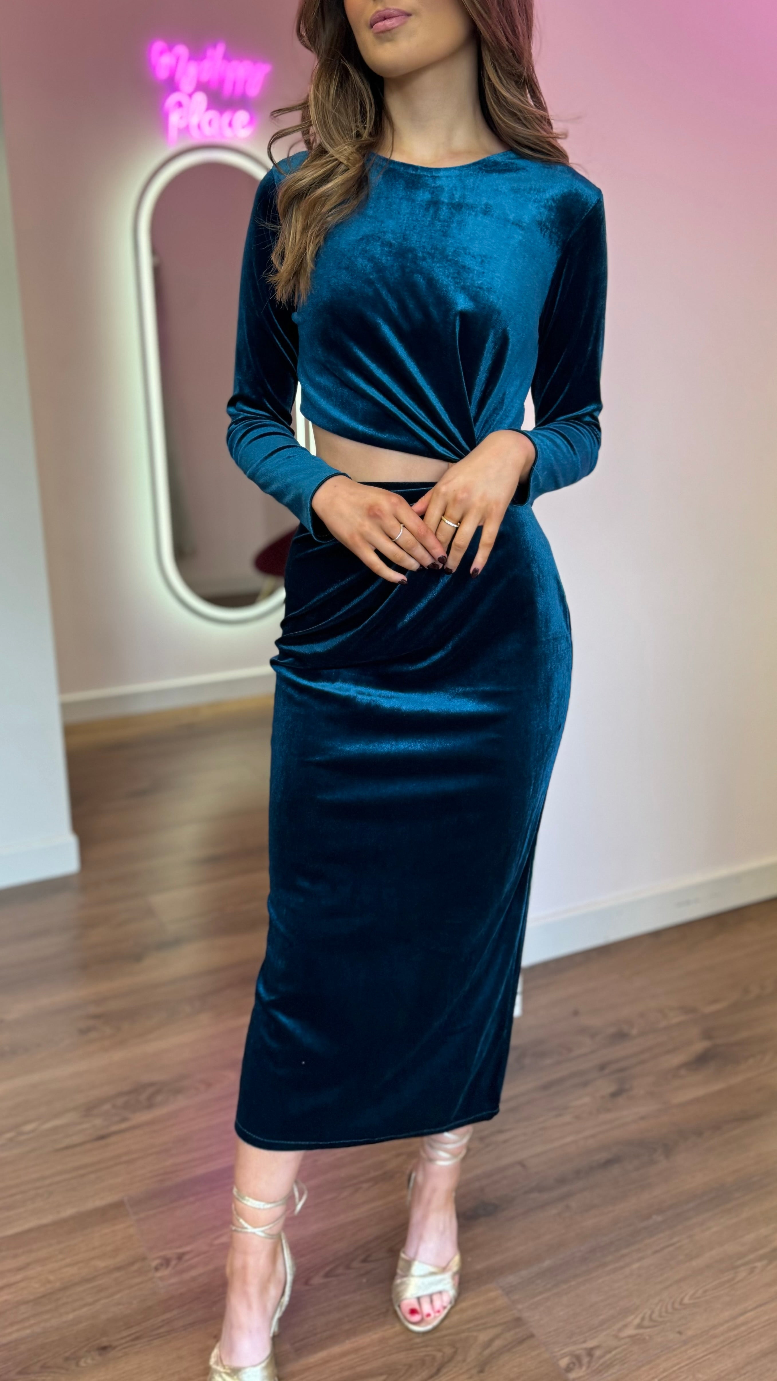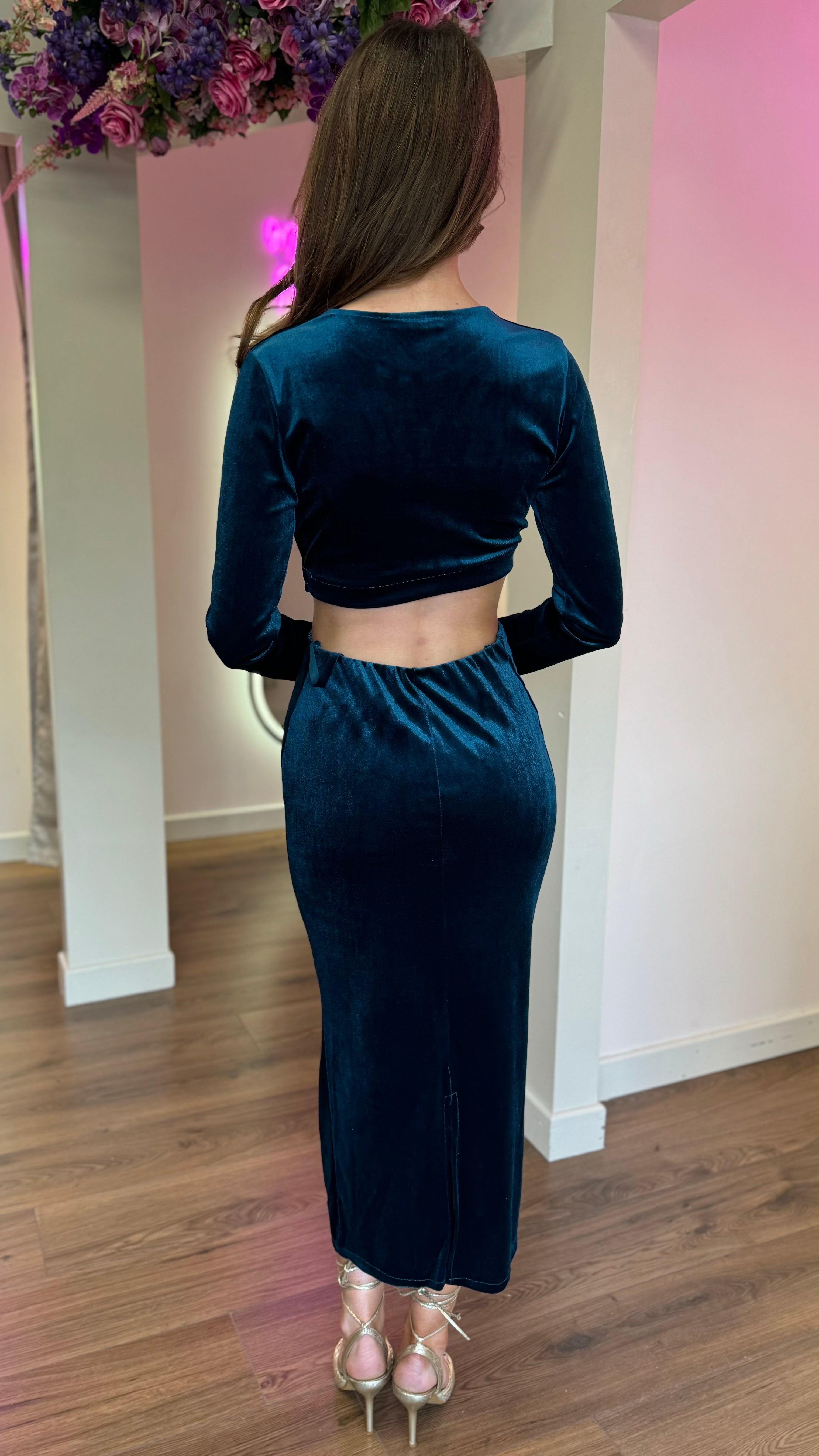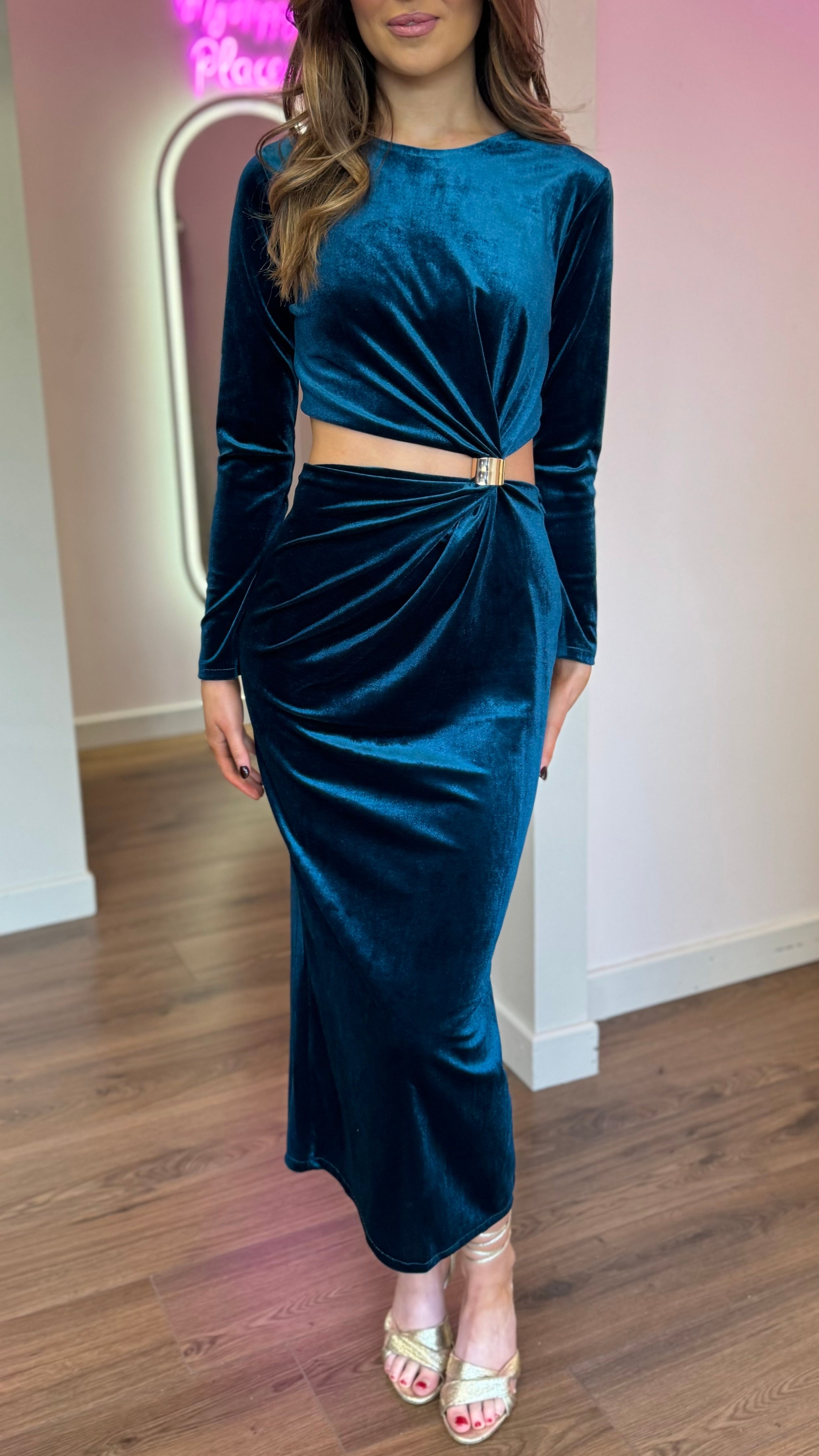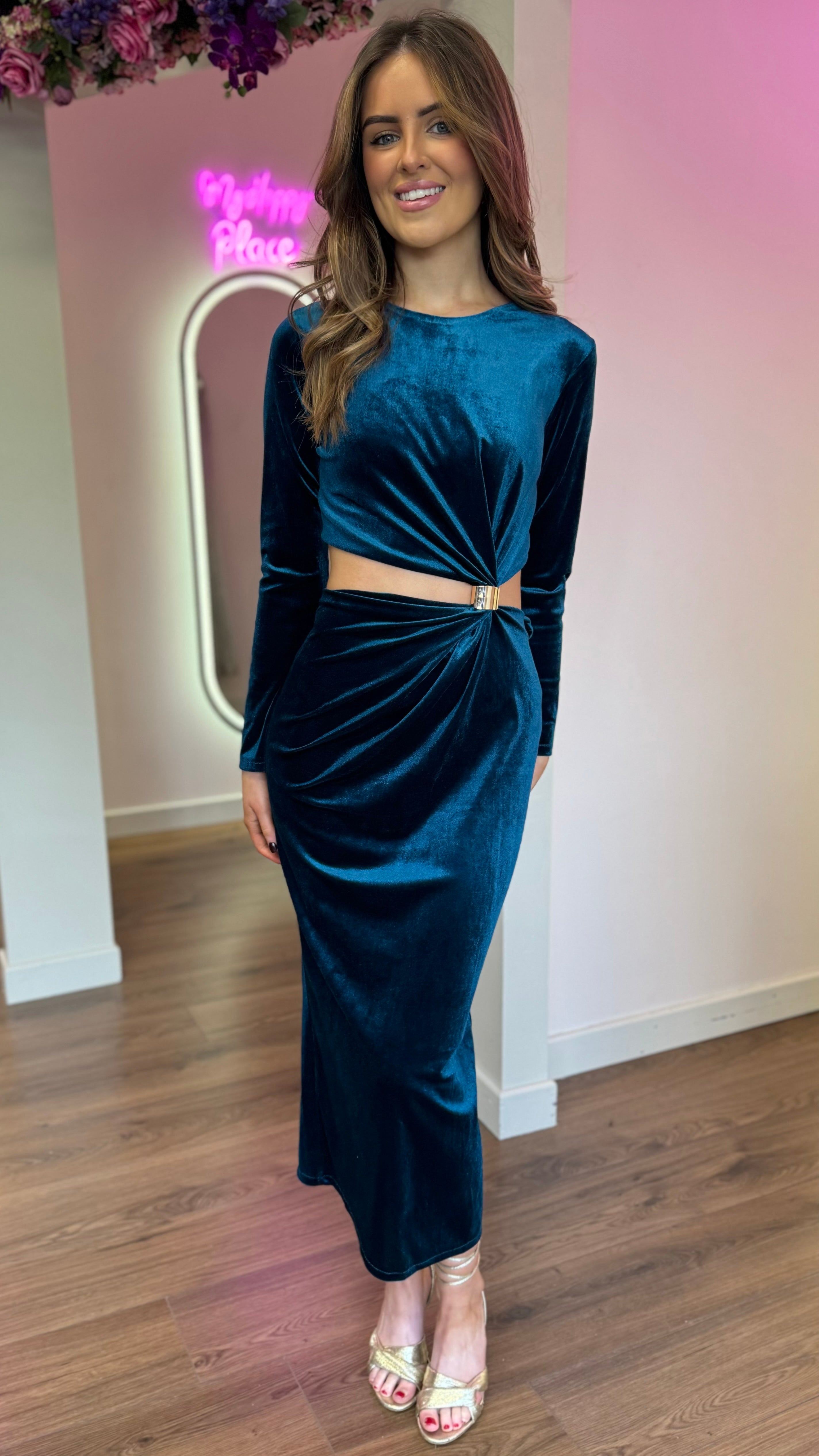 Be flirty in the Saskia Blue Cut Out Detail Midi Dress! This midi dress features ruched and cut out details for a playful touch, while the gold clasp adds a touch of glam. Perfect for date night or a girls' night out, it's a must-have for your wardrobe! 💃