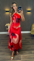The Selma Red & Purple Floral Halterneck Midi Dress combines elegant satin fabric with delicate floral accents for a refined look. Its halterneck design and midi length create a sophisticated silhouette, ideal for formal events or stylish evenings. This dress offers a graceful balance of classic charm and modern detail.