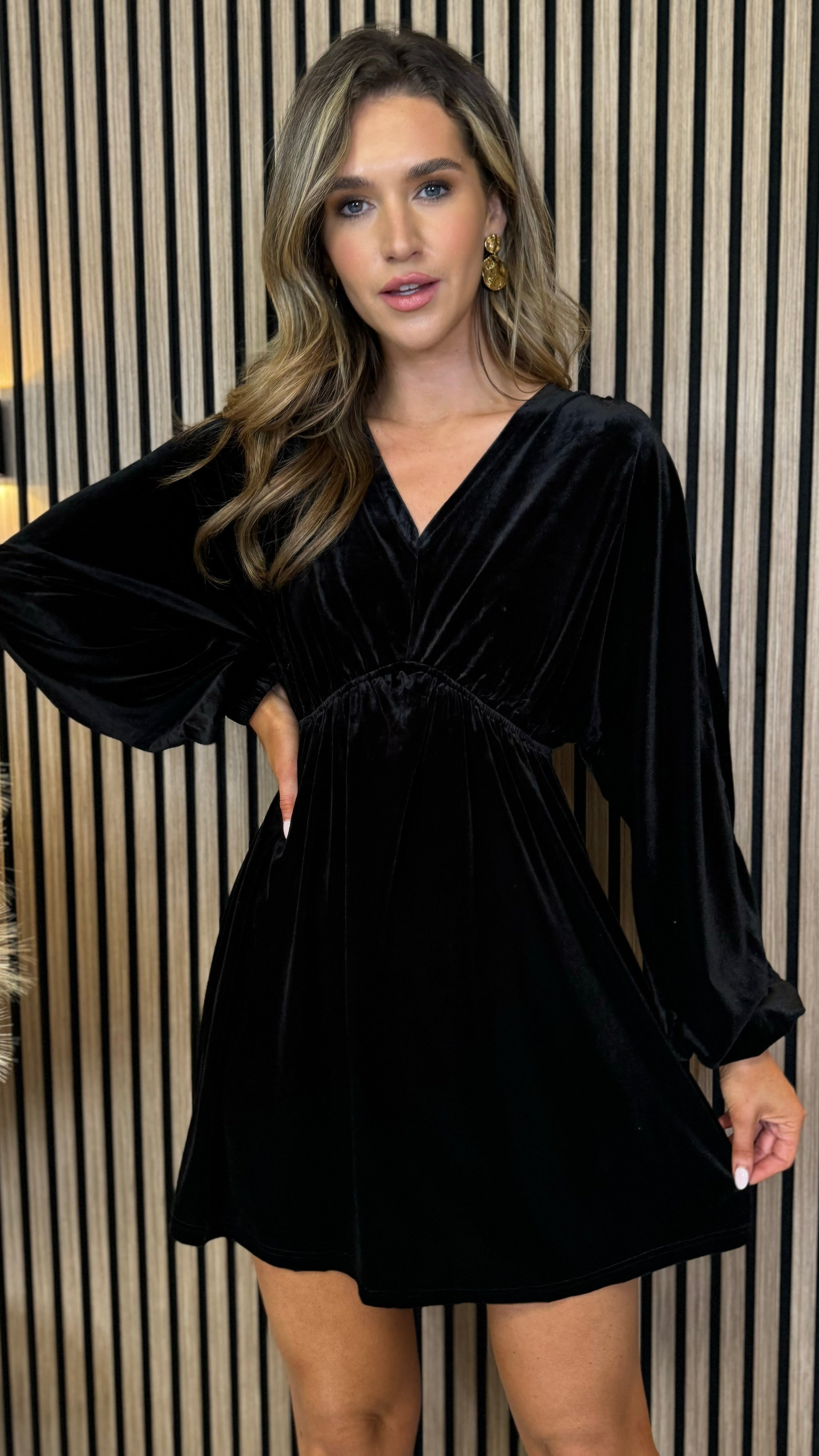 Get ready to slay in style with our Triana Black Velvet V Neckline Mini Dress! Its elasticated waist and cuffs provide a flattering fit, while the wide sleeve detail adds a touch of elegance. Perfect for any occasion, this dress will have you looking and feeling like a queen 👑💃🏻