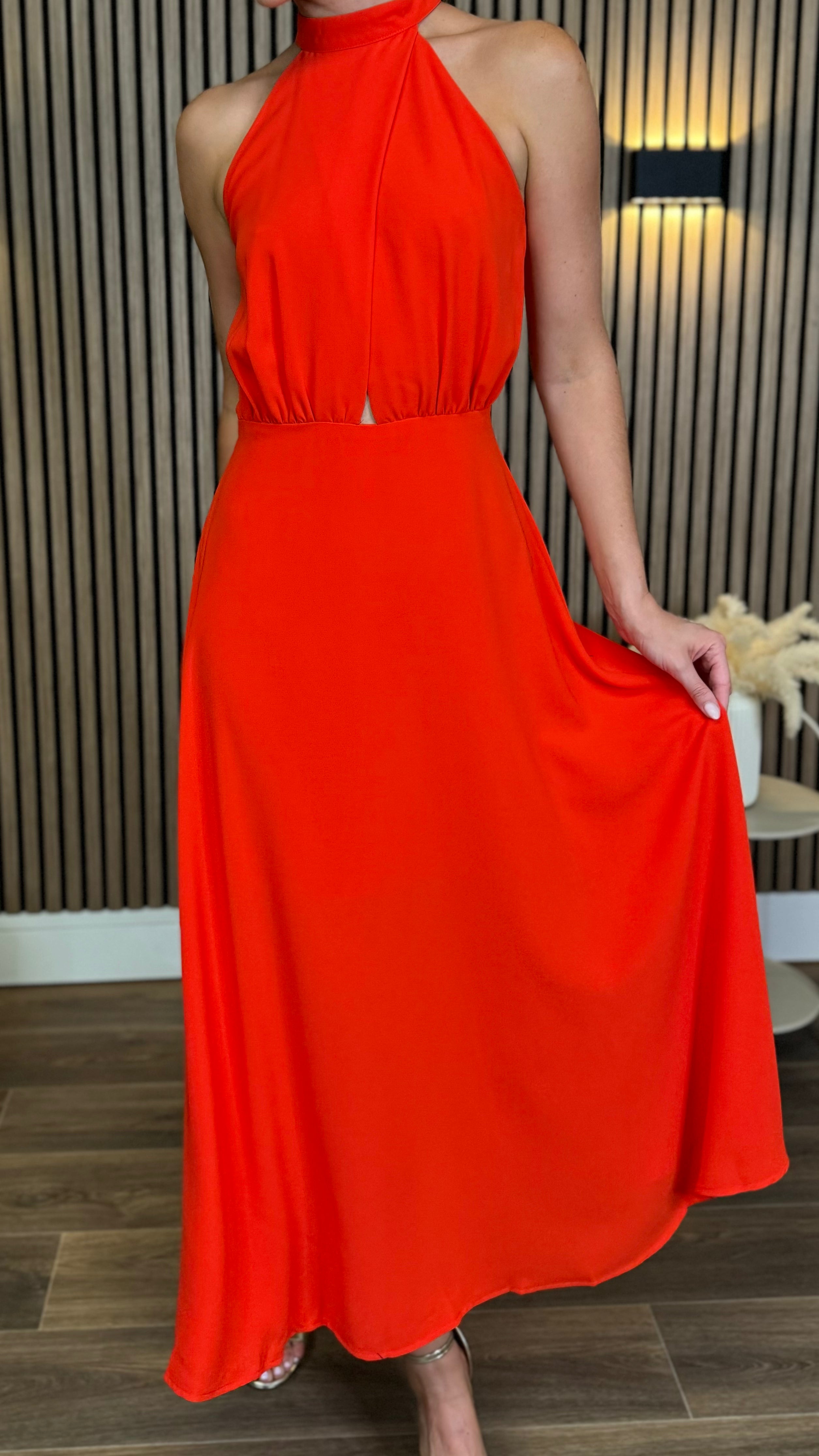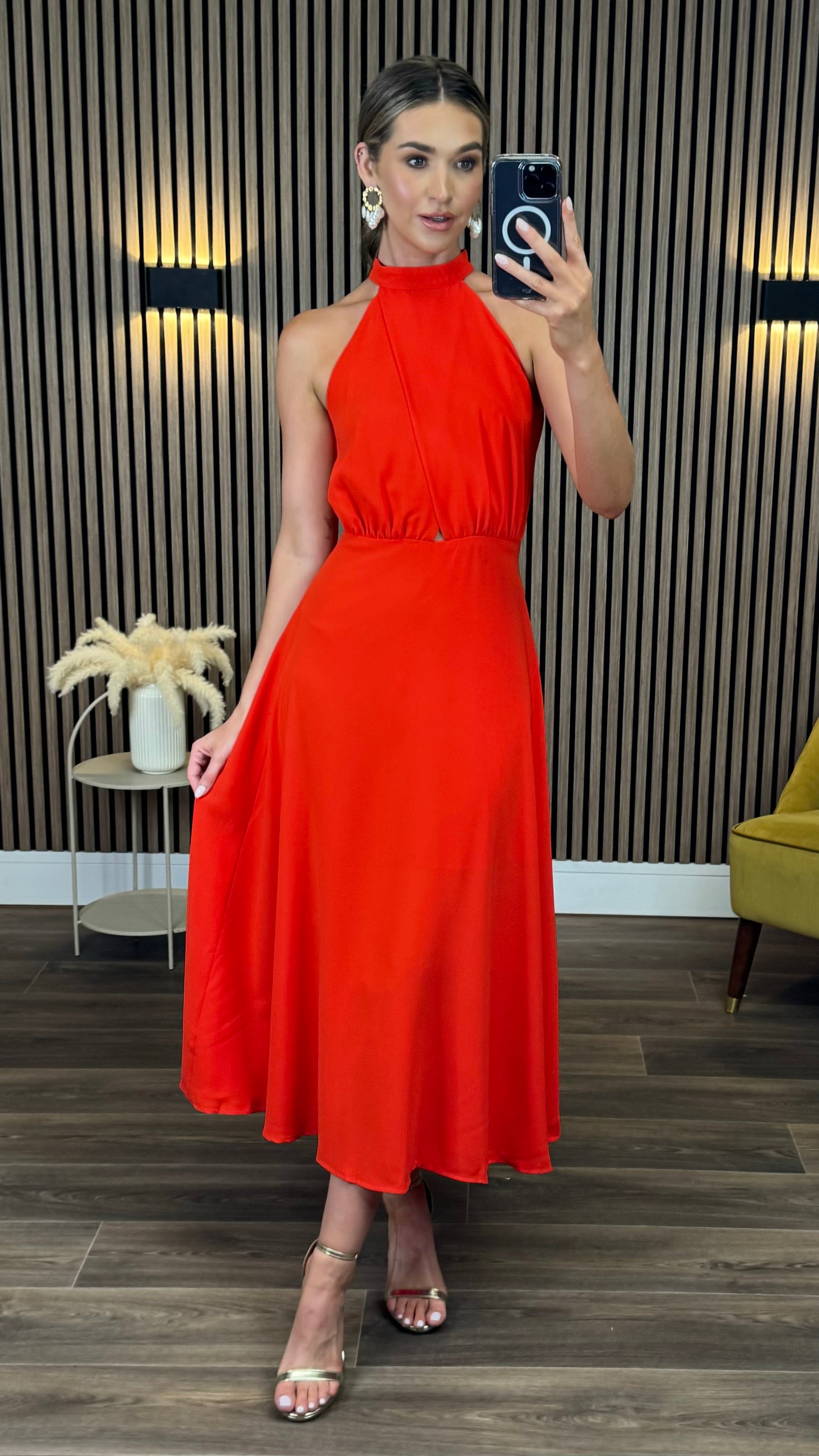 Delaney Red Halterneck Cut Out Detail Midi Dress