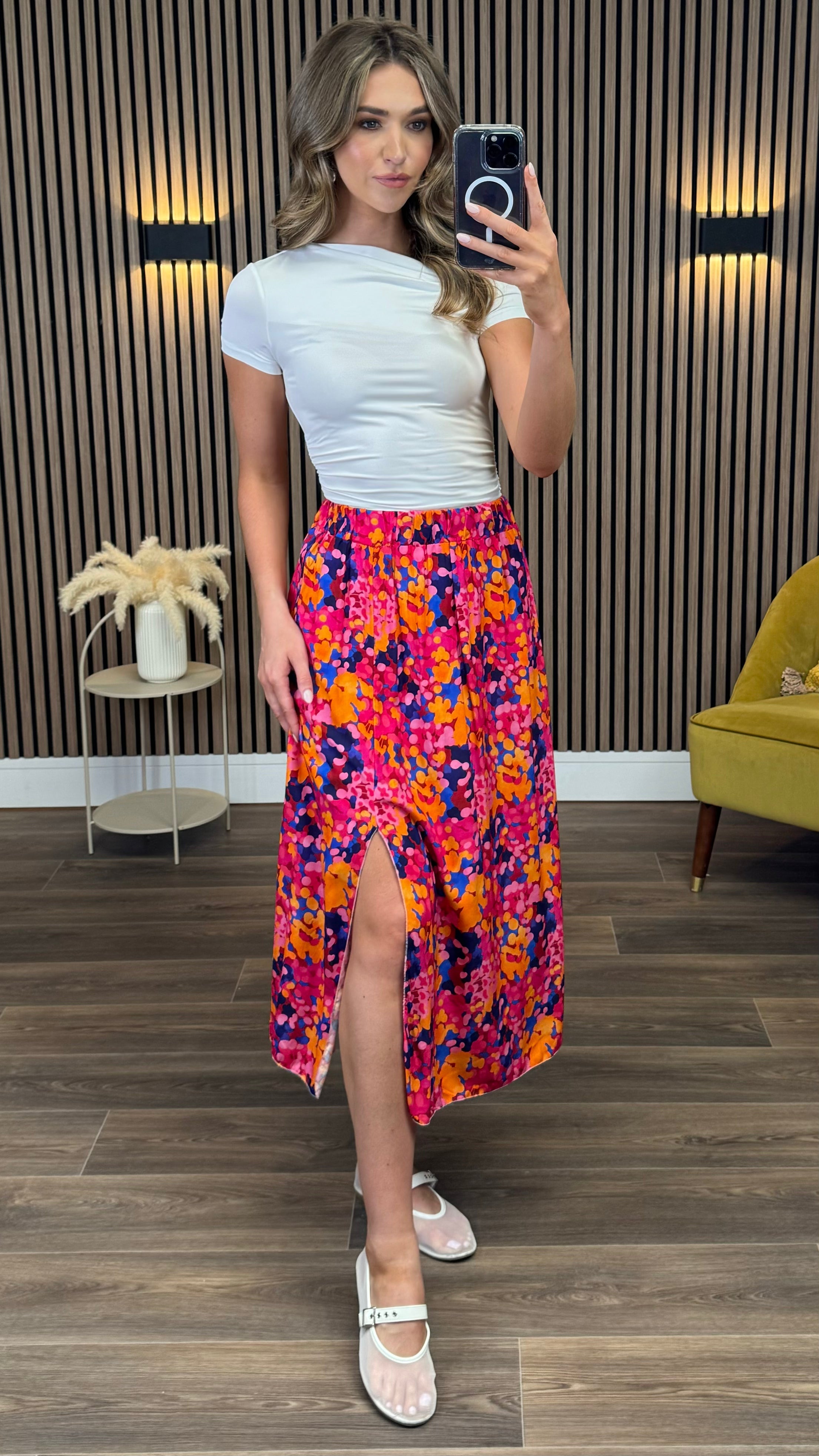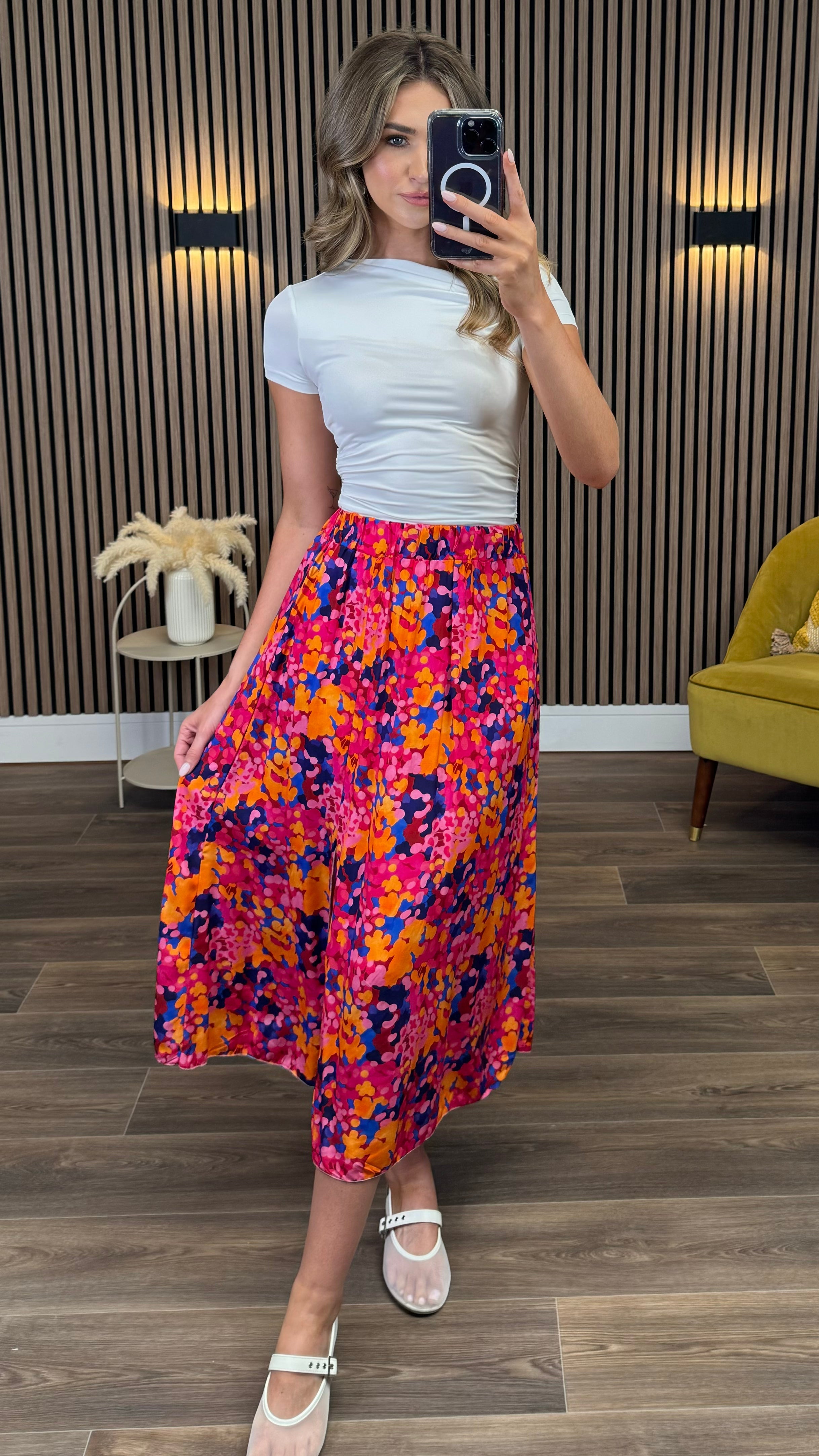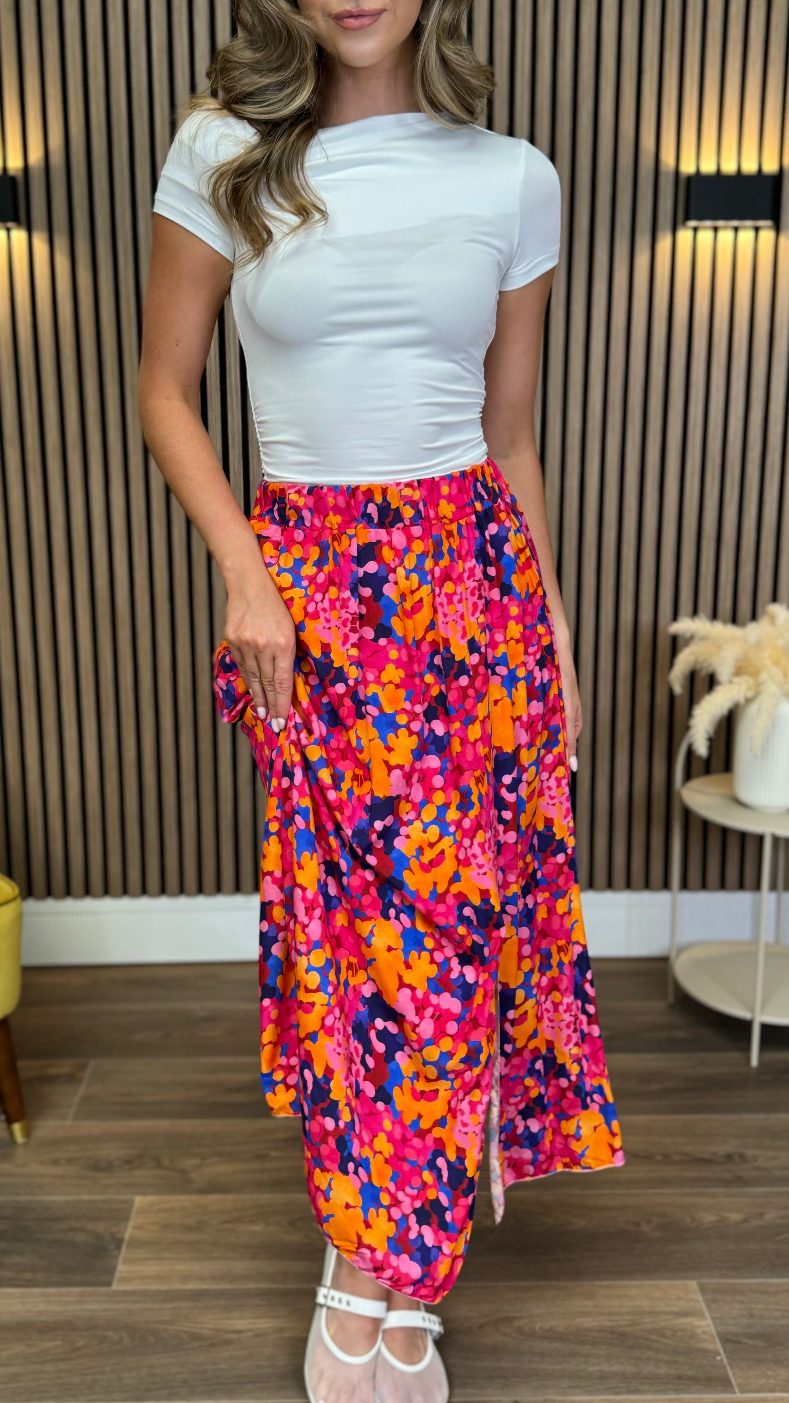 Hadlee Orange & Fuchsia Abstract Print Slit Skirt