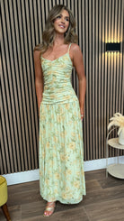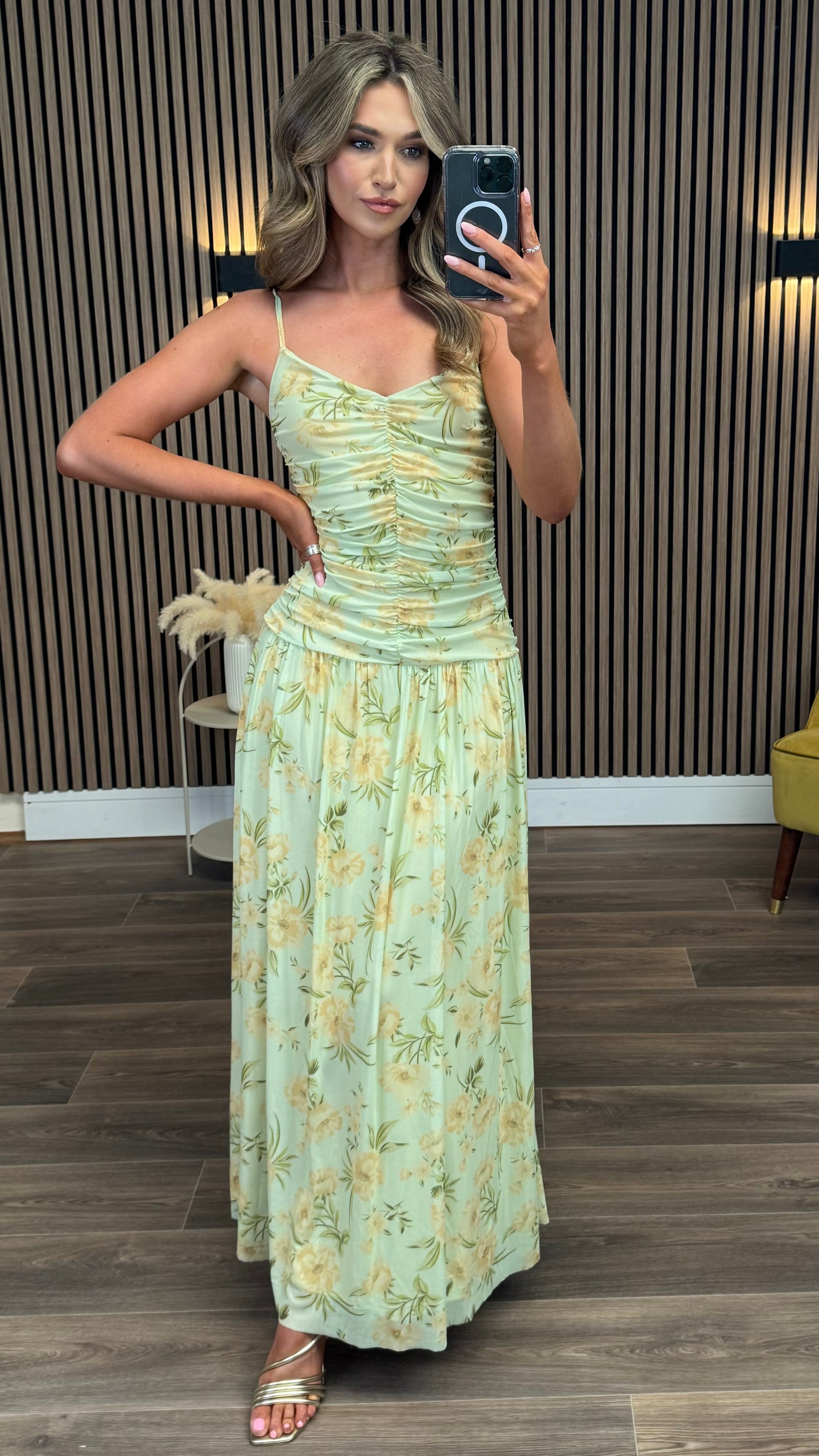 Alora Yellow Floral Mesh Strap Maxi Dress