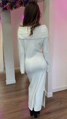 Kyomi Beige Off Shoulder Knit Midi Dress