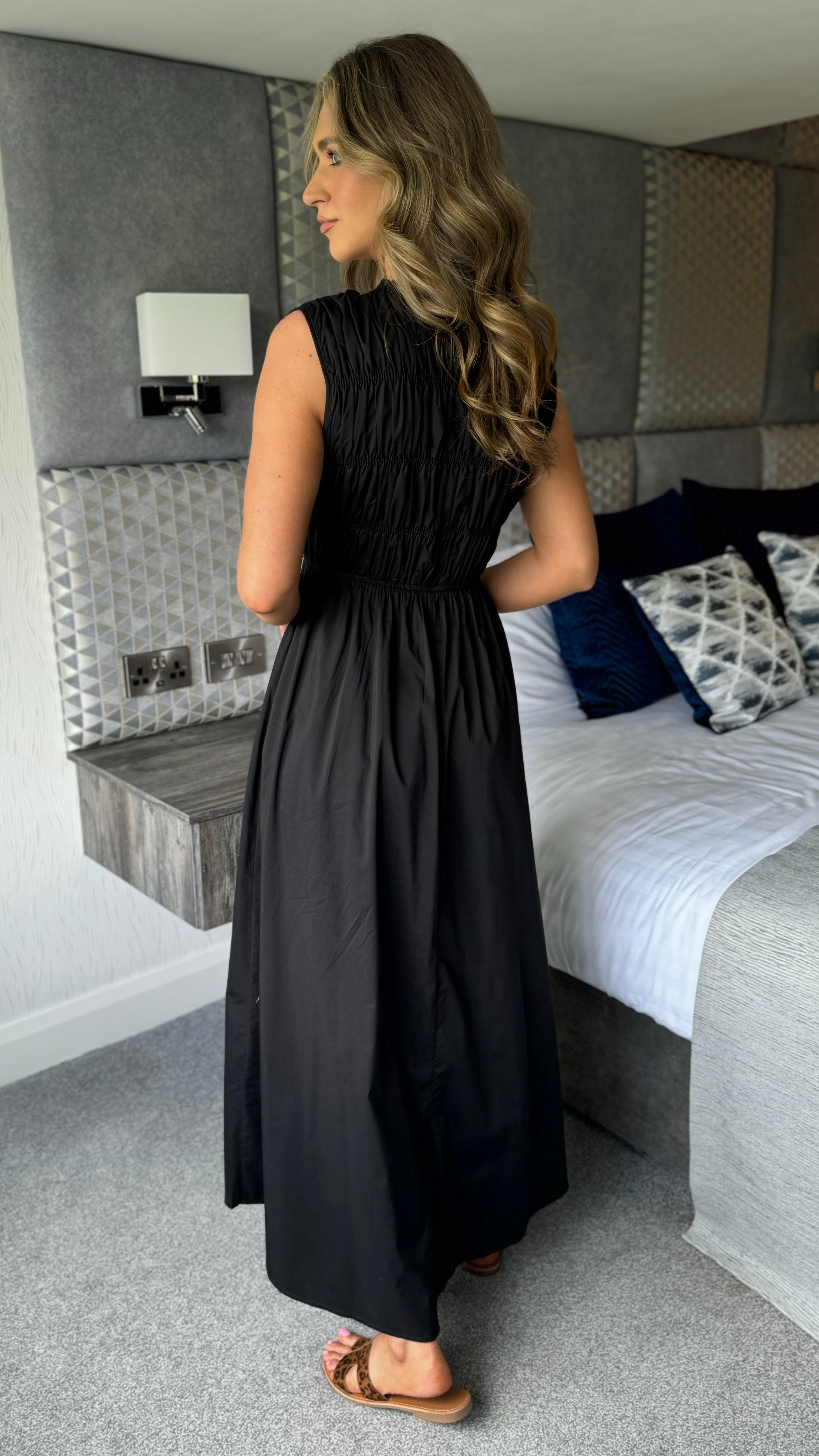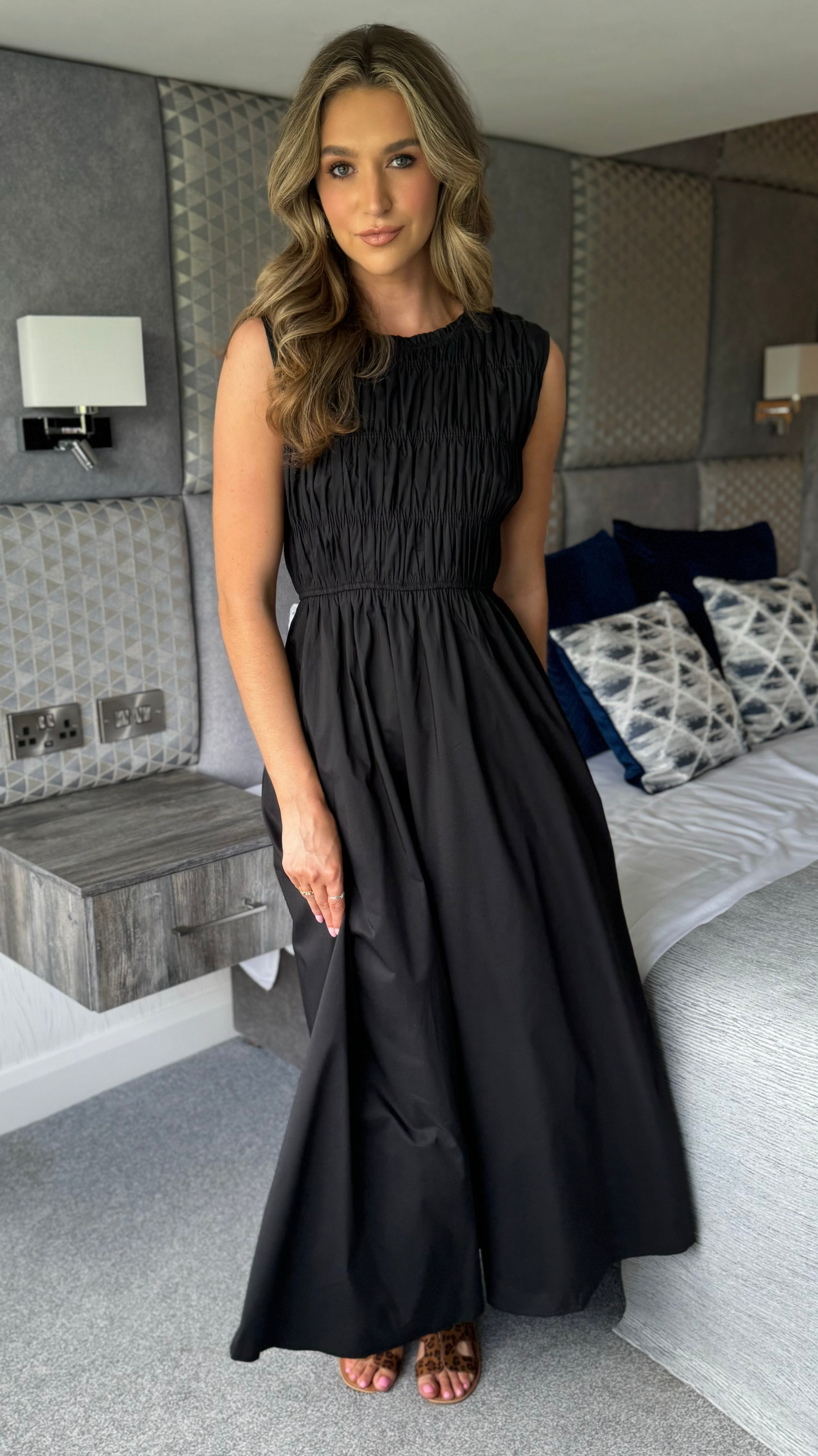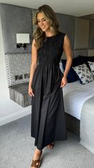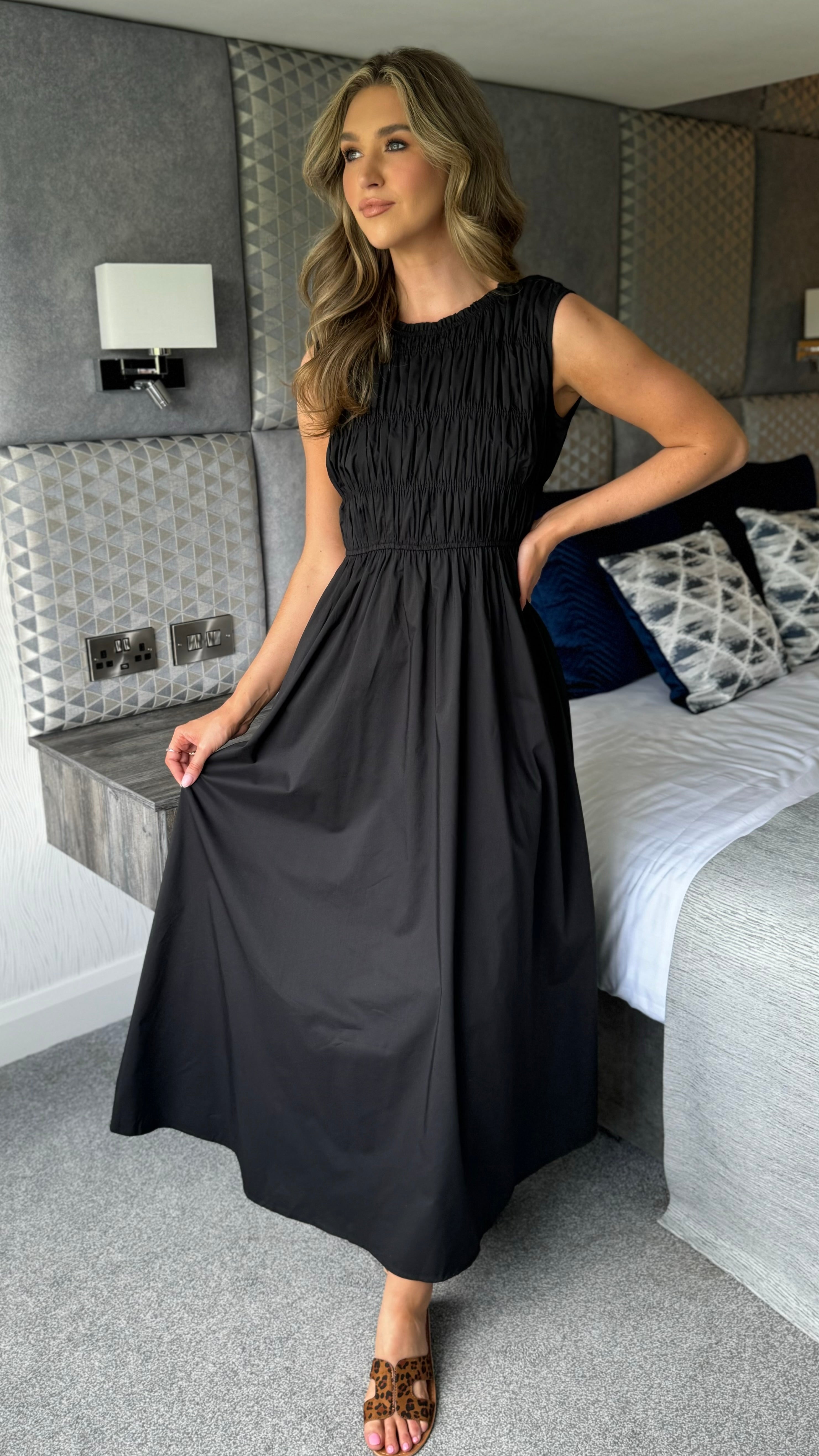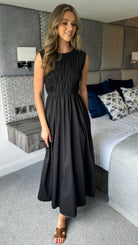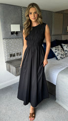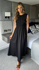 Indulge in a sense of timeless sophistication with our Lorina Black A-line Sleeveless Midi Dress. The refreshing black pattern adds a touch of vibrance to the classic A-line silhouette, while the sleeveless design allows for effortless movement. Perfect for any occasion, this dress exudes elegance and grace. 💃🏻