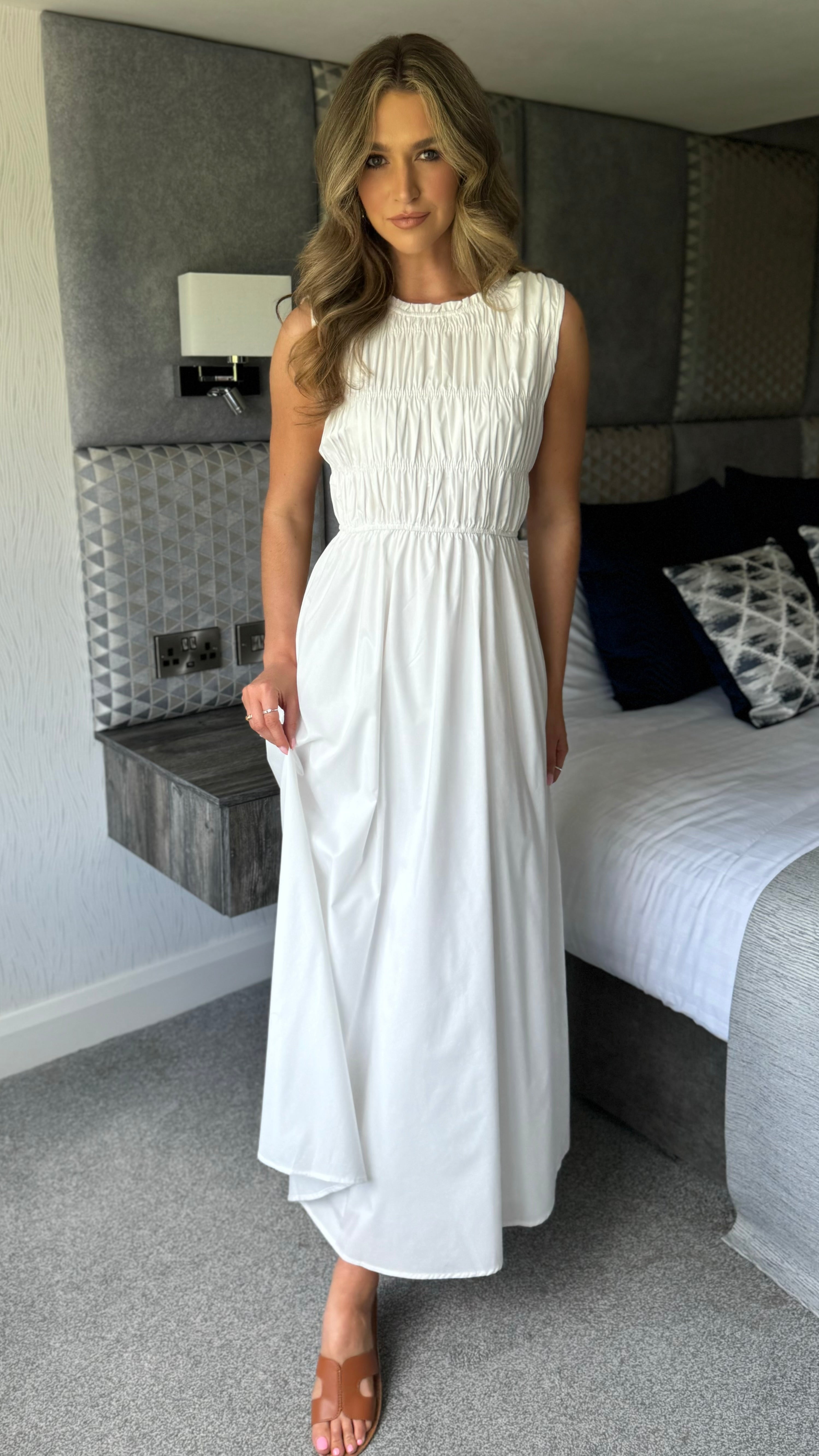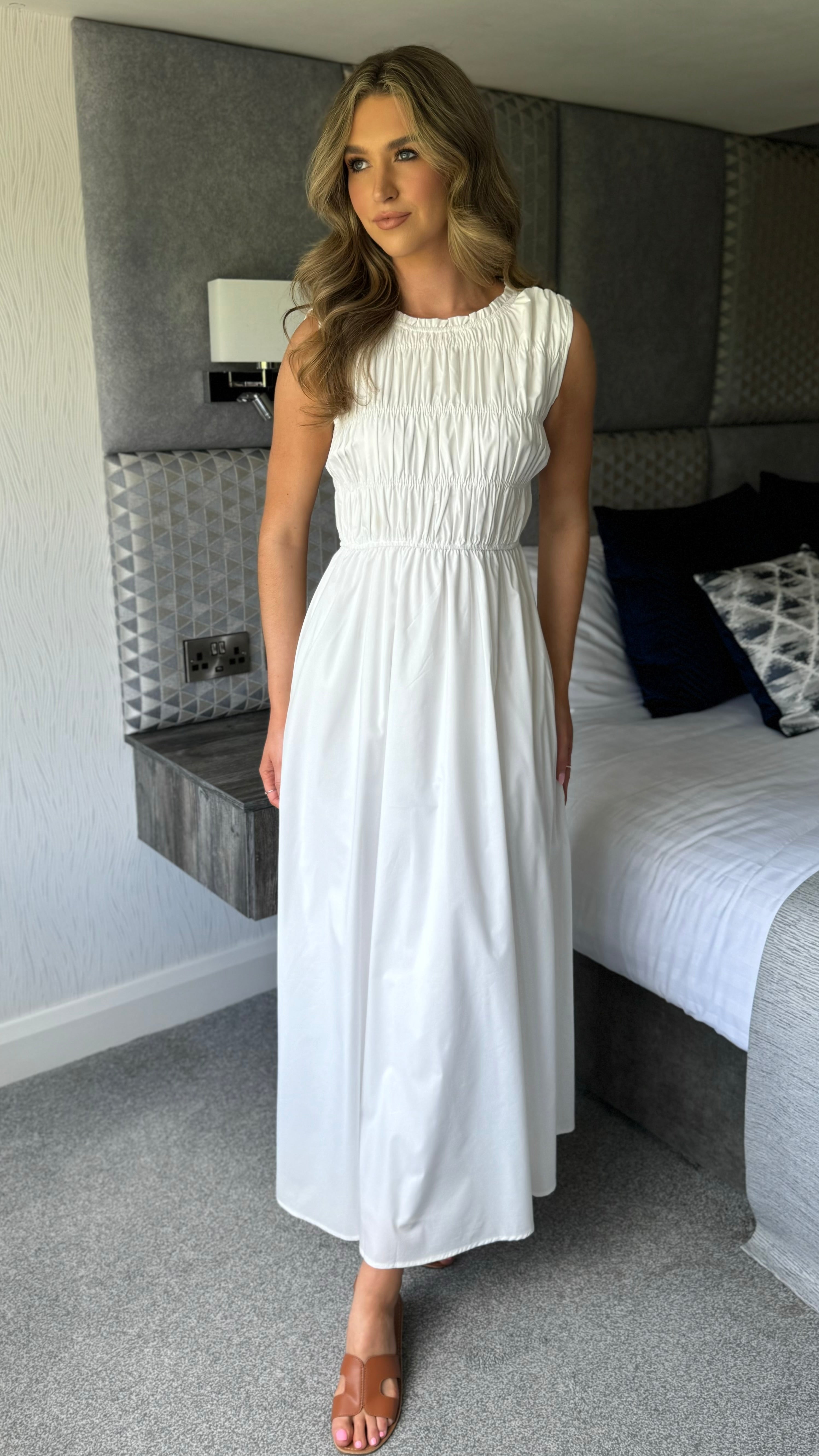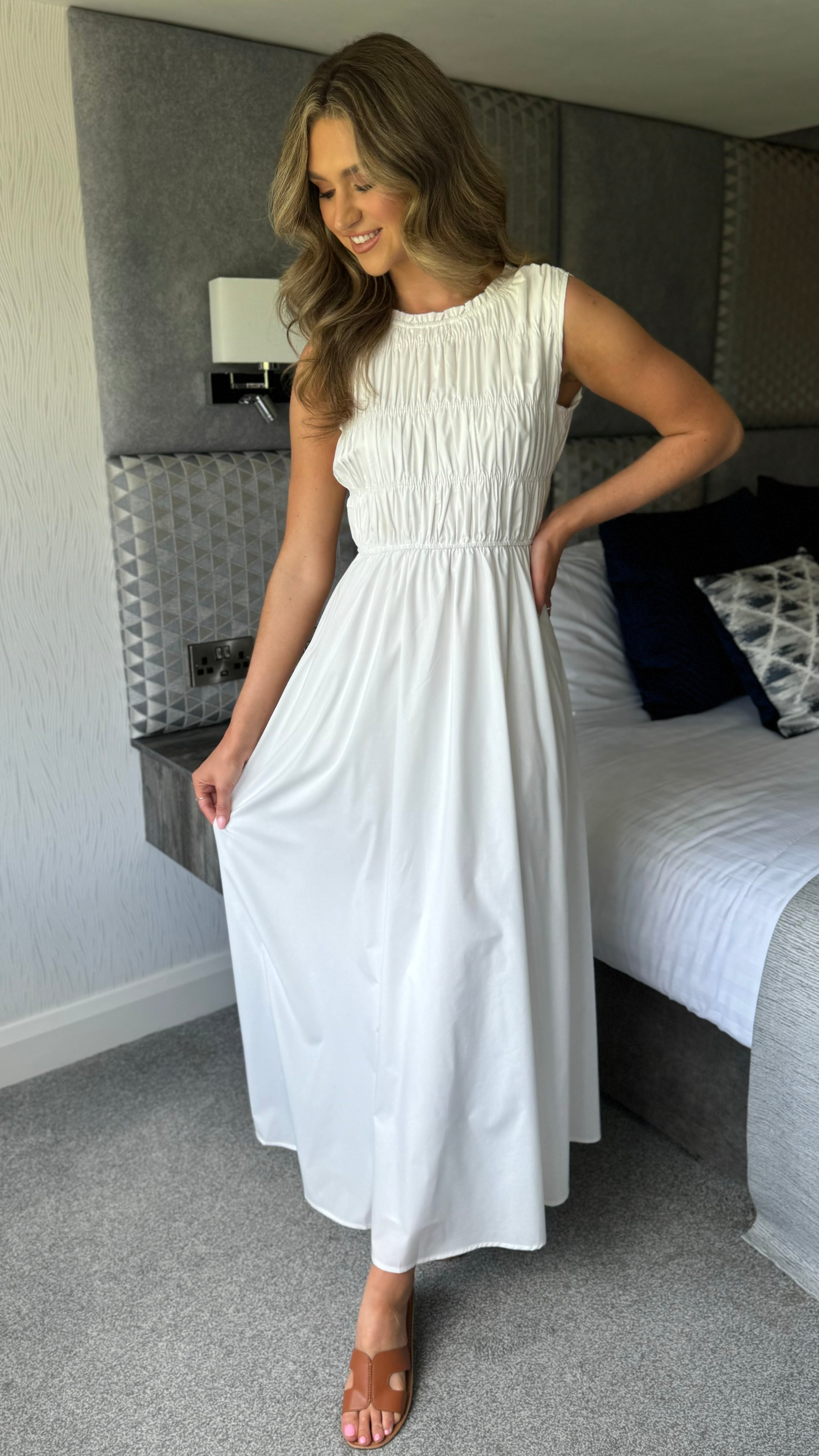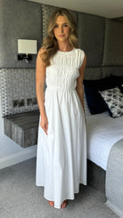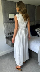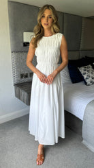 Lorina White A-line Sleeveless Midi Dress