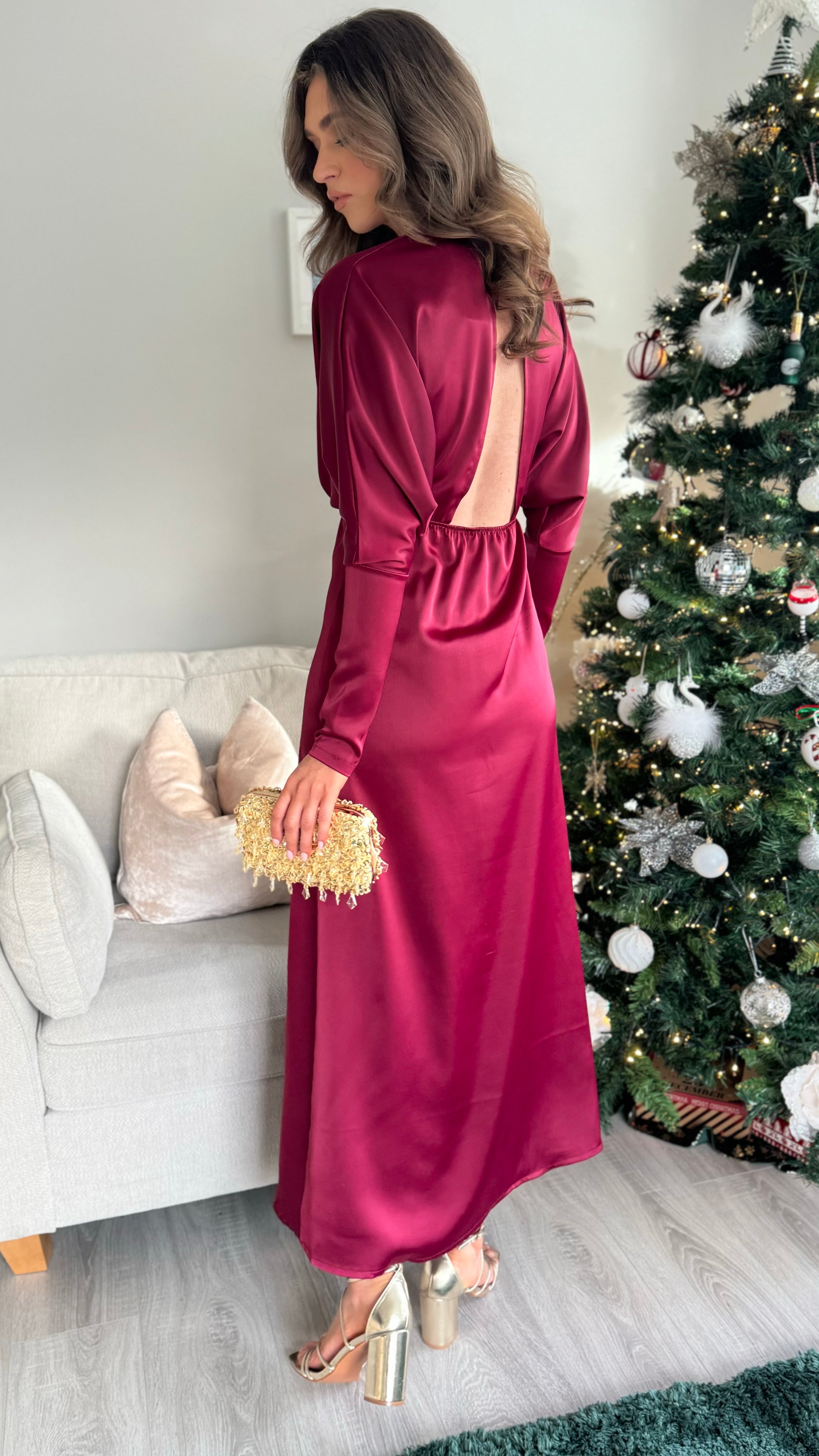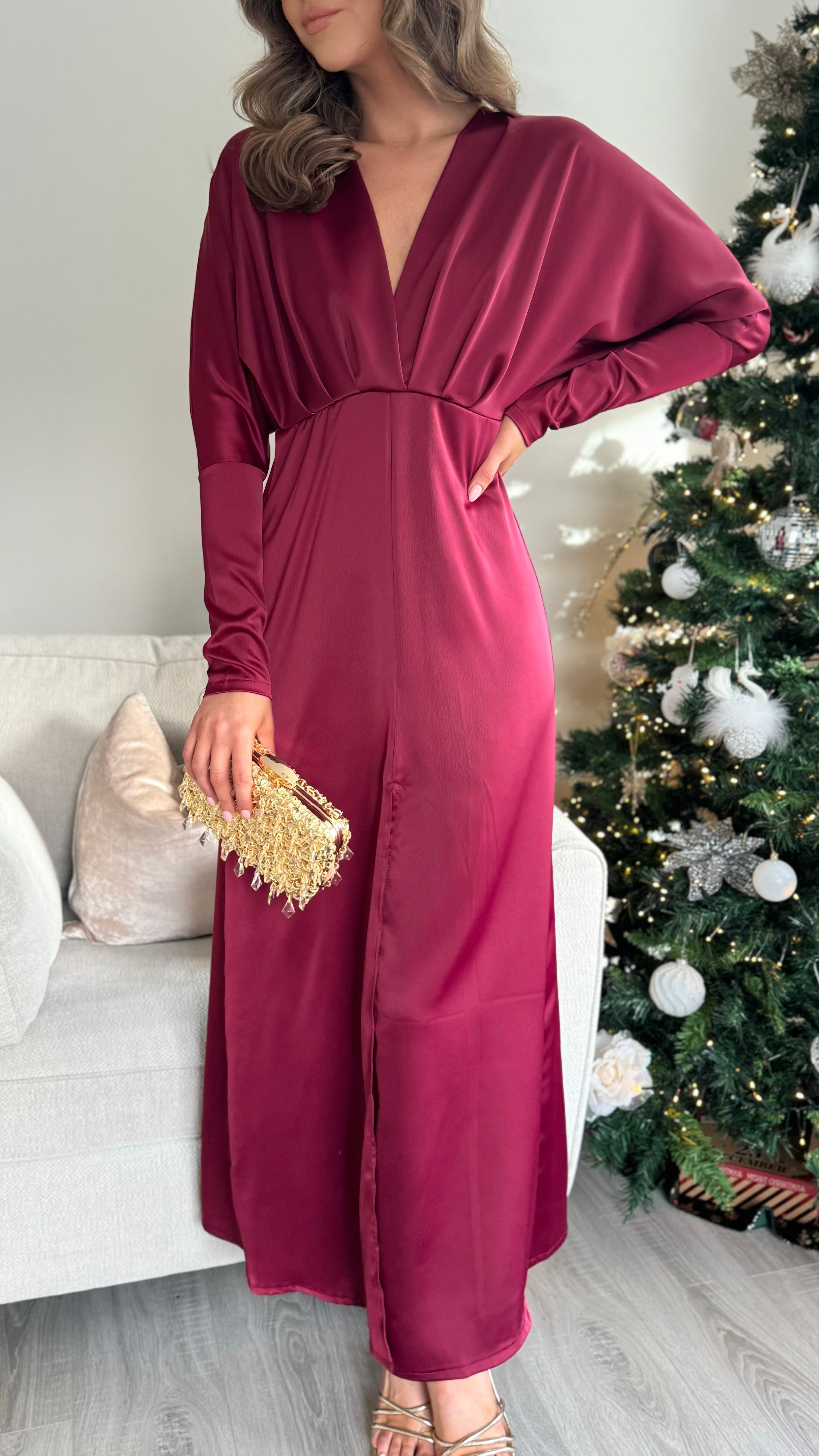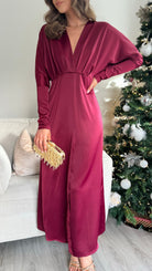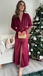 Sienna Burgundy V Neck Midi Dress