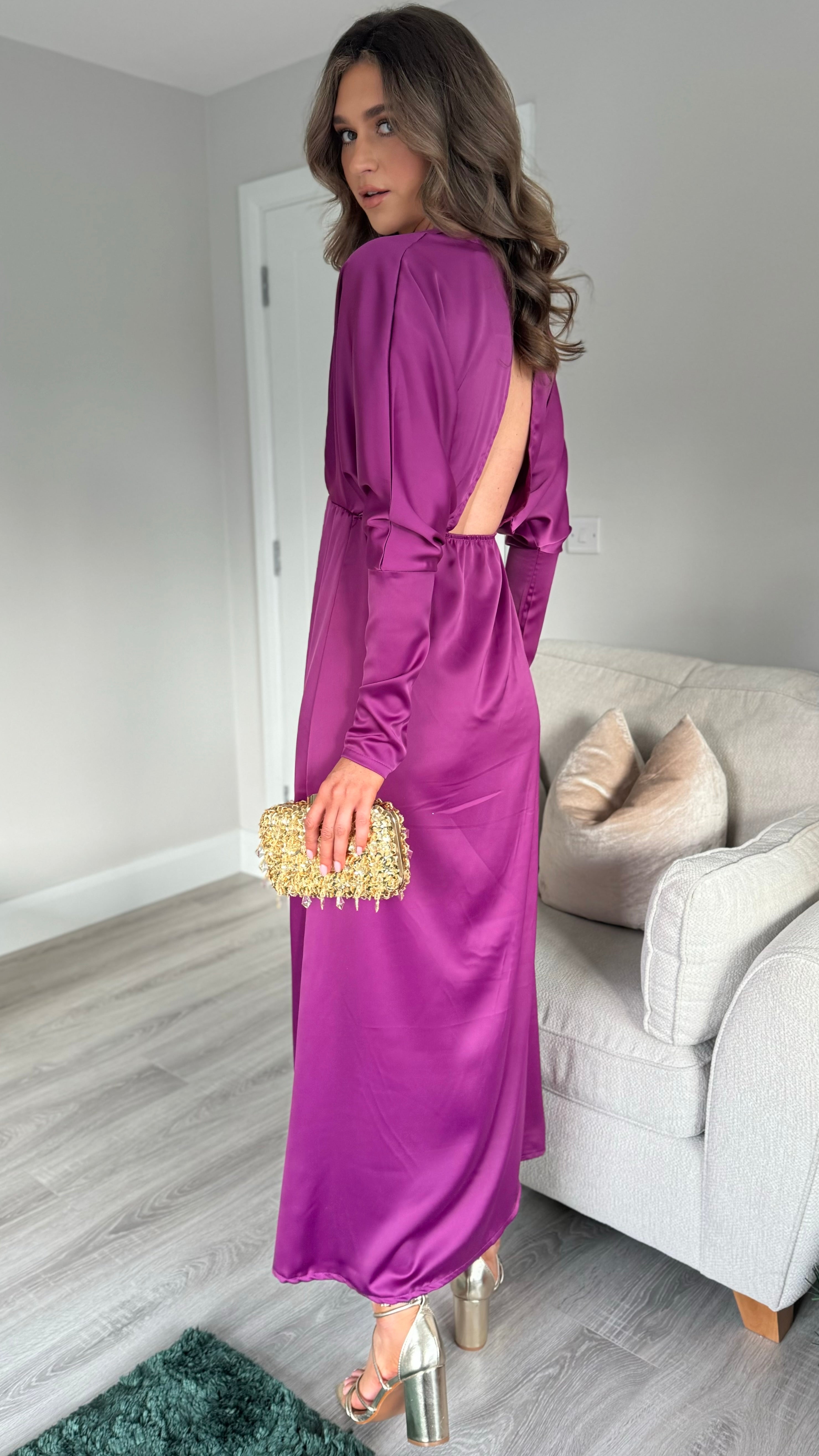 Sienna Purple V Neck Midi Dress