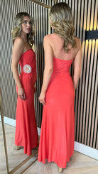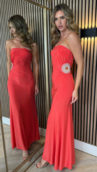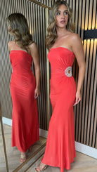 Zeyna Coral Strapless Cut-Out Detail Maxi Dress