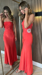 The Zeyna Coral Maxi Dress is an elegant choice for any special occasion. The strapless design and figure-hugging silhouette are both flattering and comfortable. The added embellishments and cut-out detail give this dress a unique touch of glamour. You'll feel confident and stylish all night long in this full length dress.
