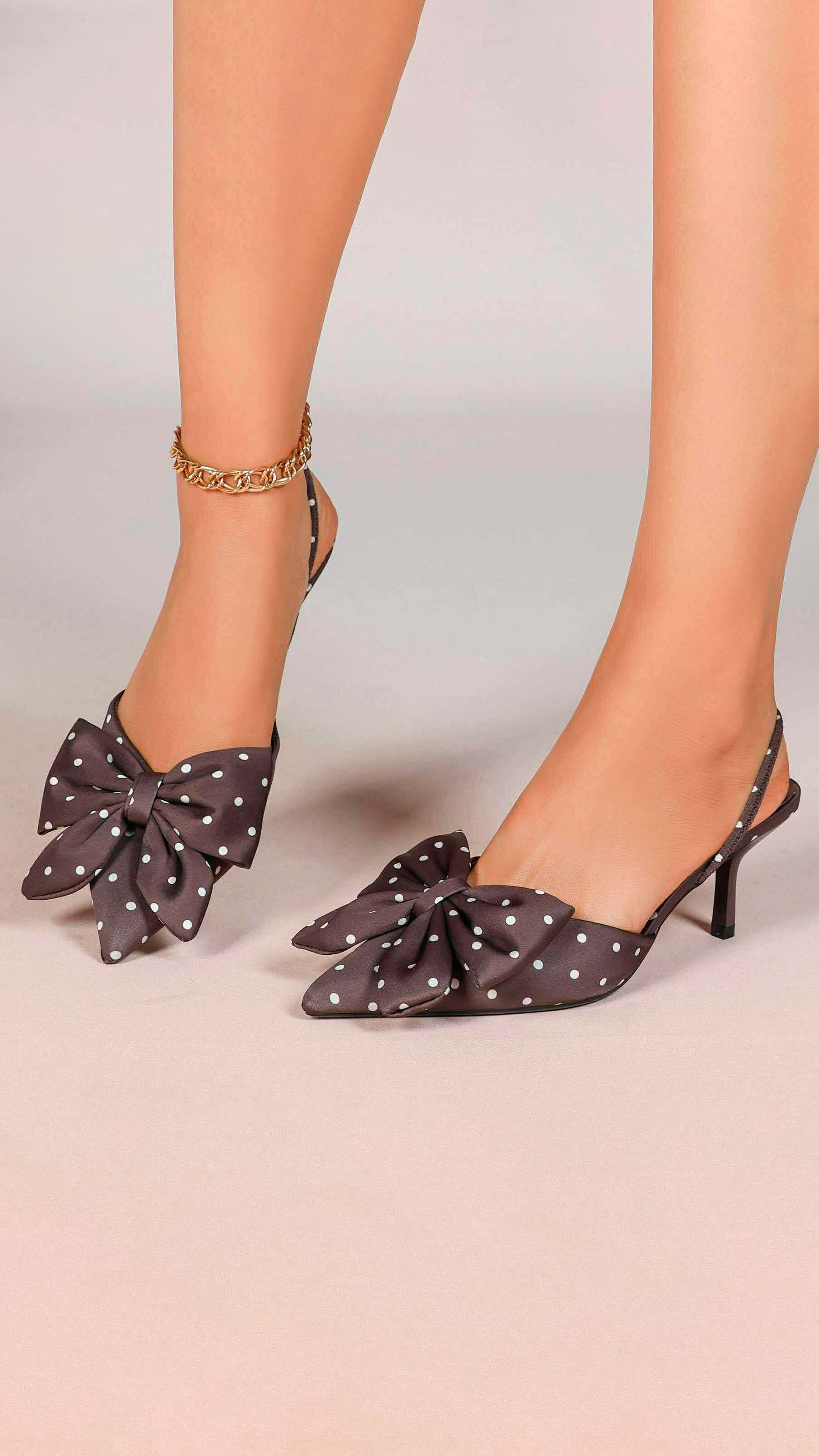 Step into effortless charm with these Augusta Brown Polka Dot Bow Heels. Featuring a chic slingback design that keeps your foot secure, these beauties showcase a delightful polka dot pattern in rich brown tones. The signature bow detail adds a flirty finishing touch that's perfect for elevating any outfit—from casual brunches to evening adventures. Comfortable, stylish, and undeniably fun, these heels are your new go-to for making a playful statement.