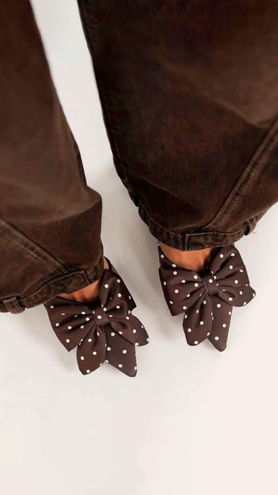 Augusta Brown Polka Dot Bow Heels