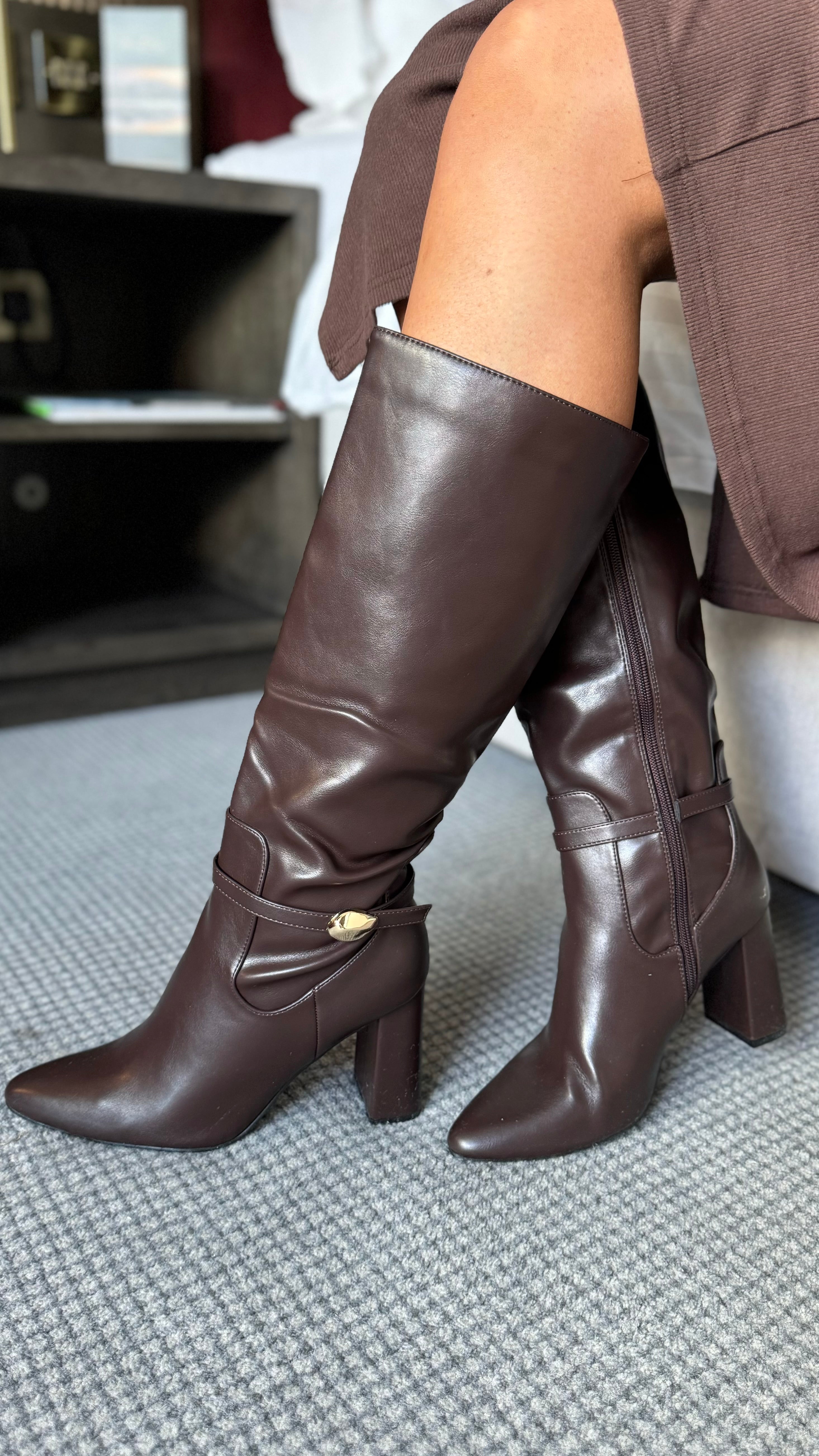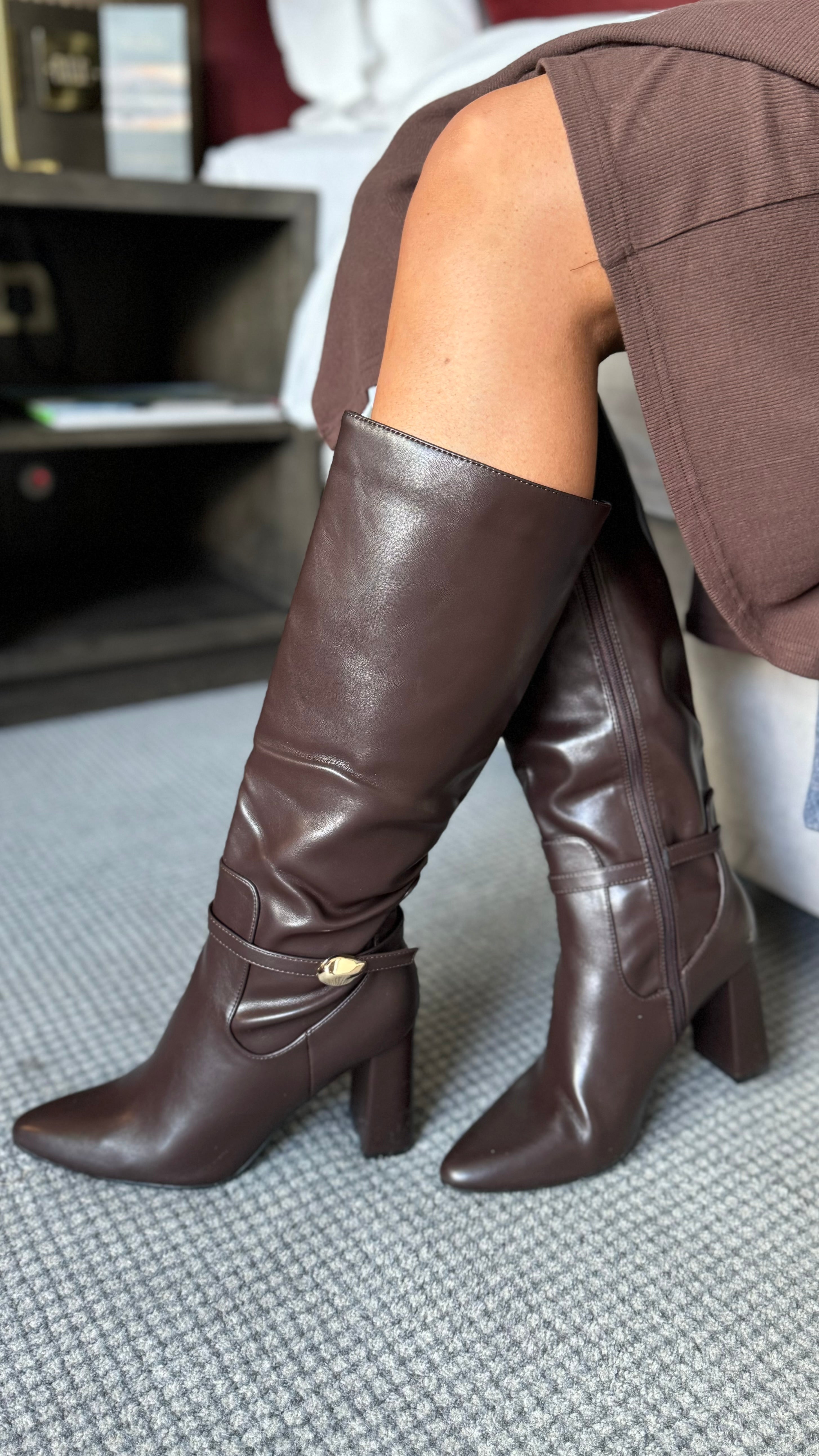 Katarina Chocolate Brown Faux Leather Knee High Boots