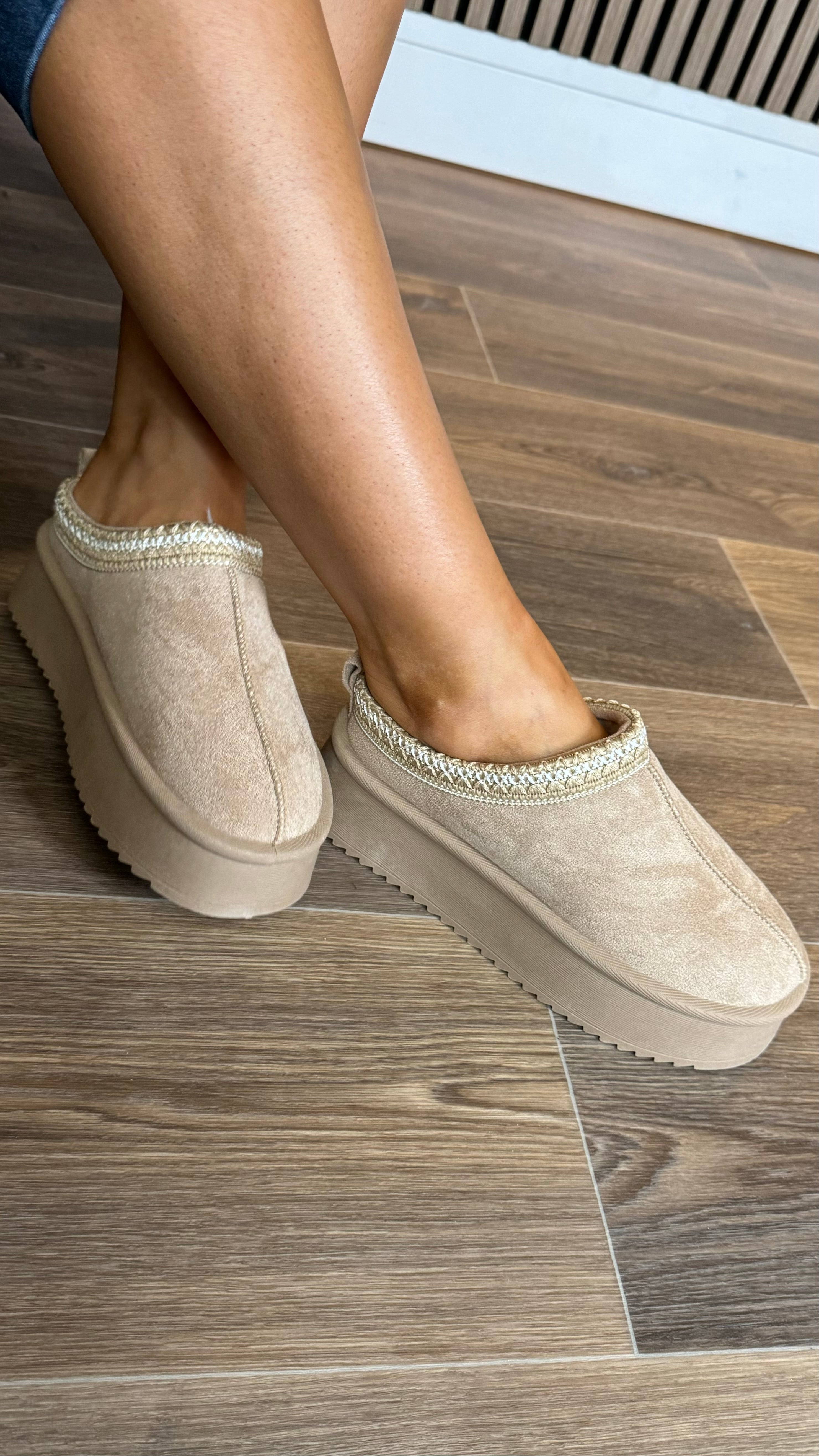 Step into comfort with the Nellie Beige Platform Slip Ons—your new go-to for effortless style. These cozy slip-ons feature a plush faux fur lining that keeps your feet snug and warm, while the chunky platform sole adds a fun lift to any outfit.