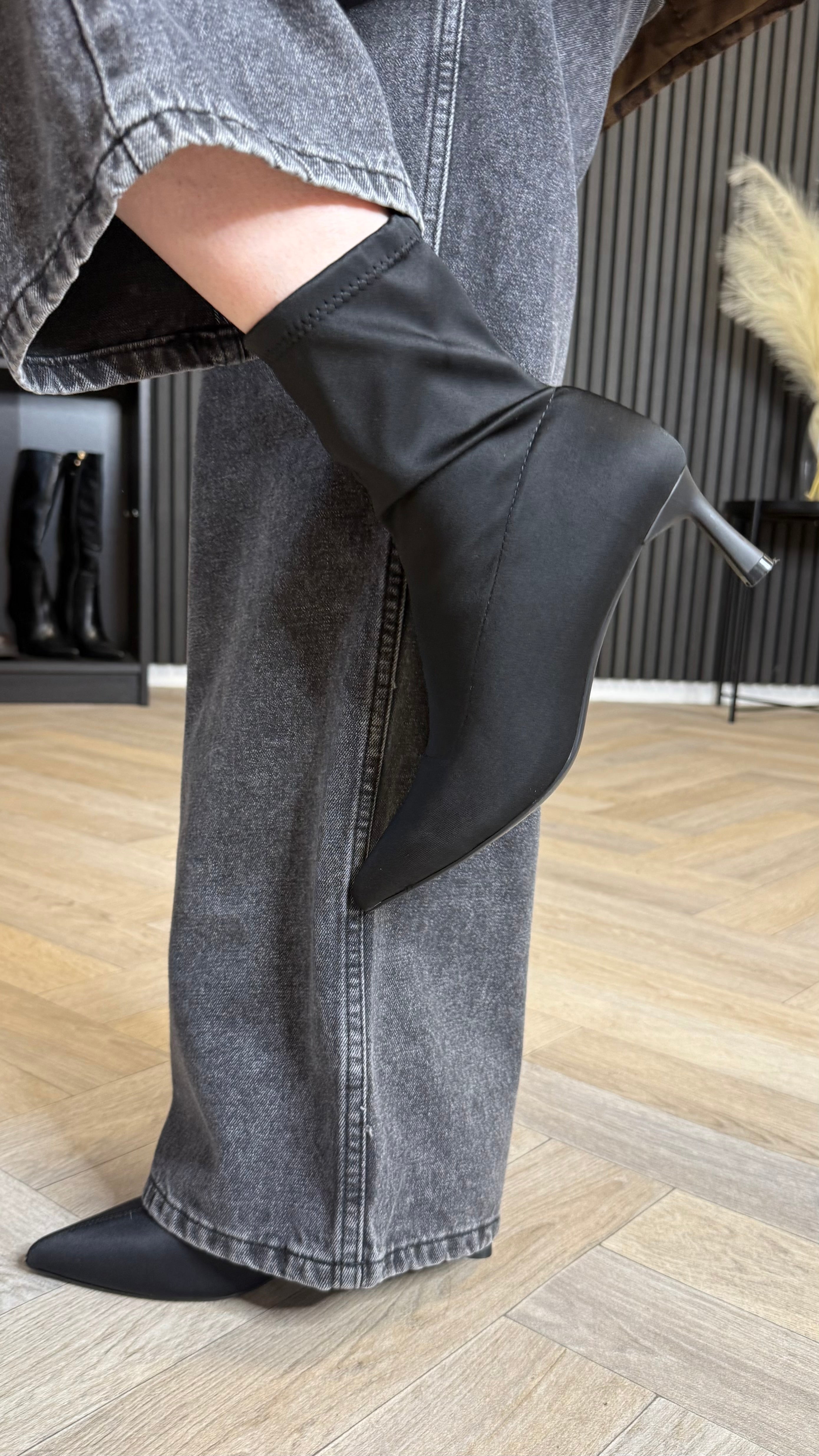 Safiyah Black Kitten Heel Pointy Toe Boots