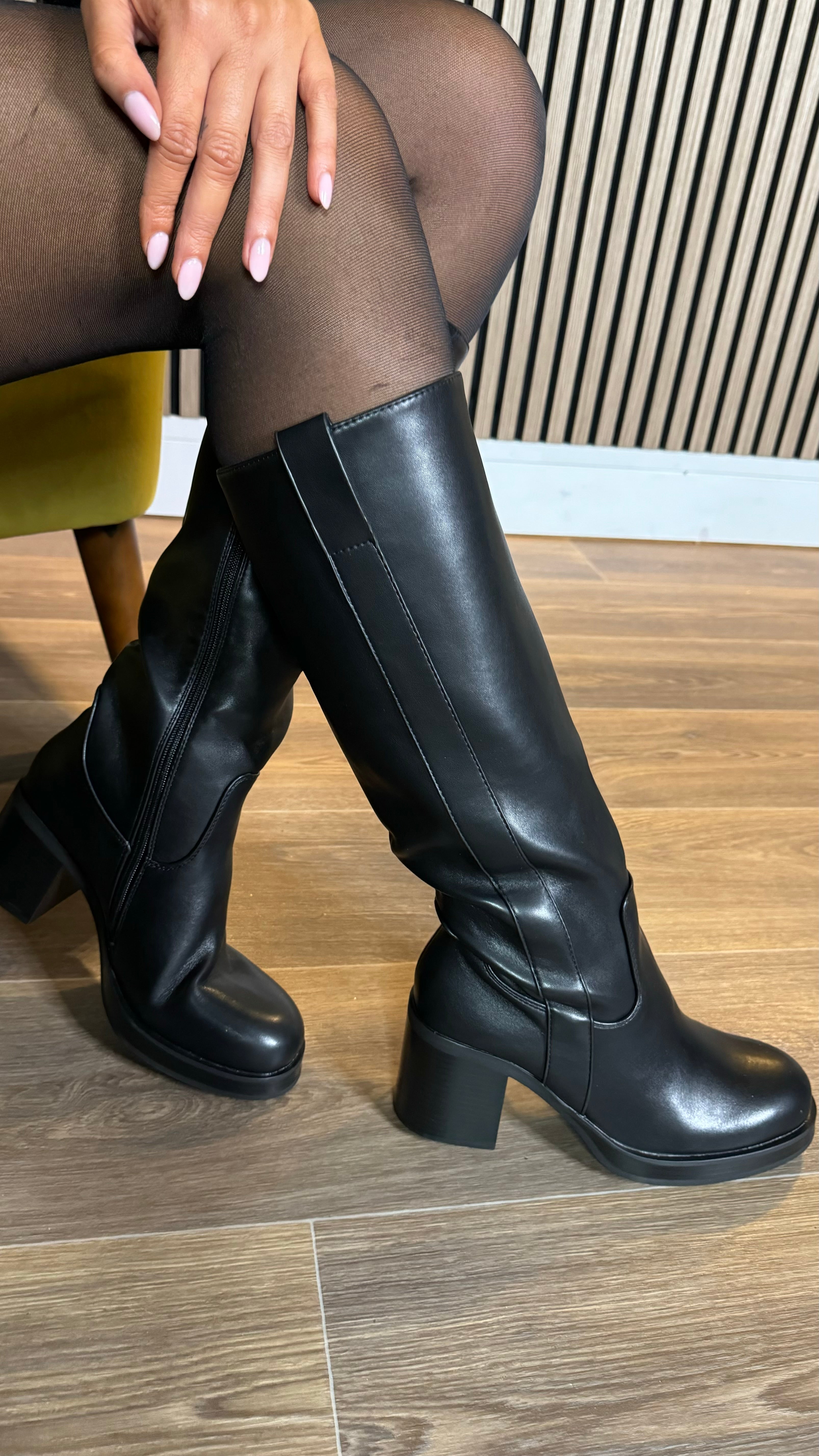 Step out in style with the Celestia Black Knee High Boots! Featuring a sleek concealed side zip for easy wear and a sturdy block heel for all-day comfort, these boots are ready to add a confident edge to any outfit. Perfect for strutting through autumn streets or dancing the night away, they bring both flair and function to your wardrobe.
