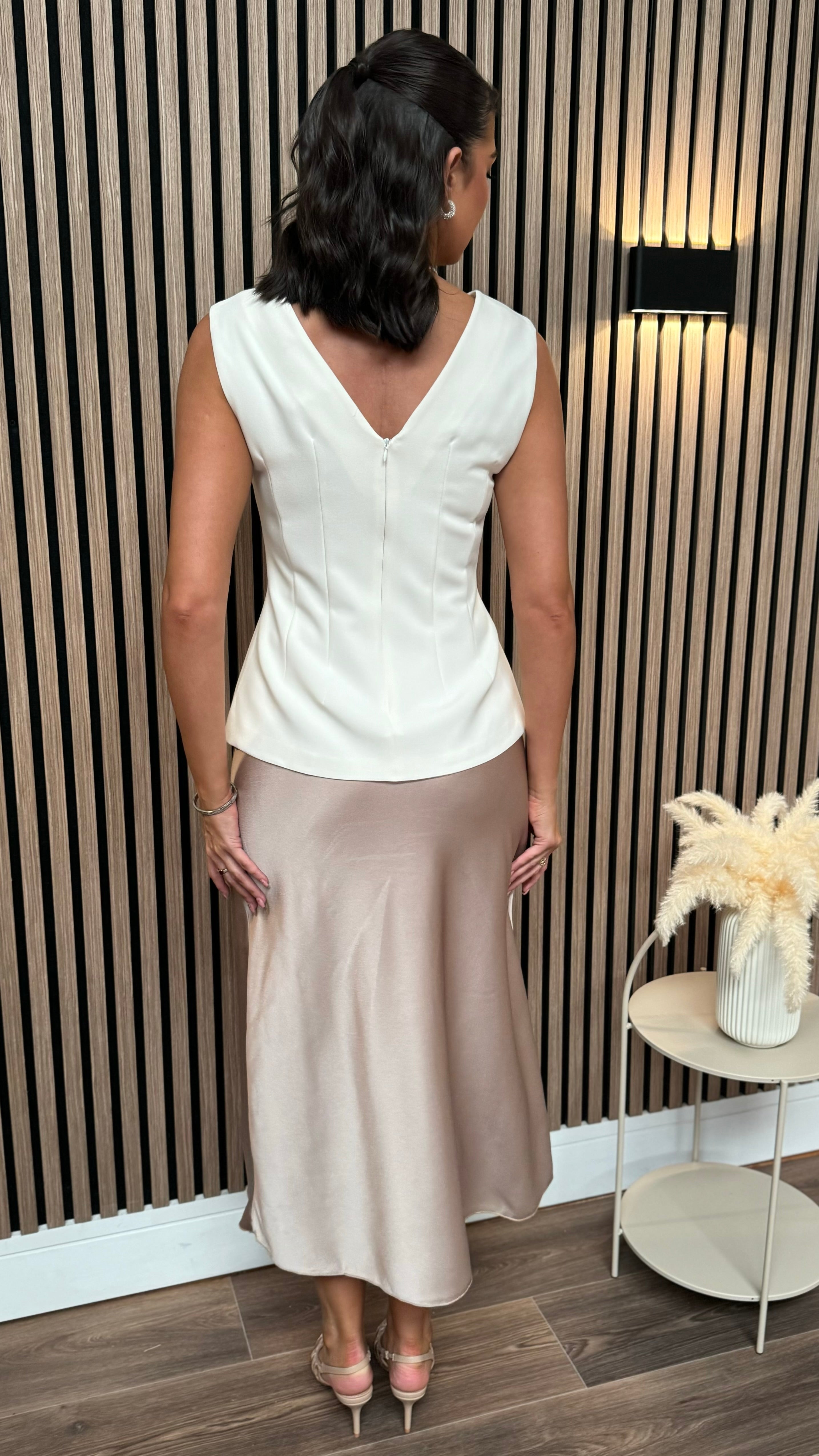 Bradley Ivory Tailored V Neckline Sleeveless Top