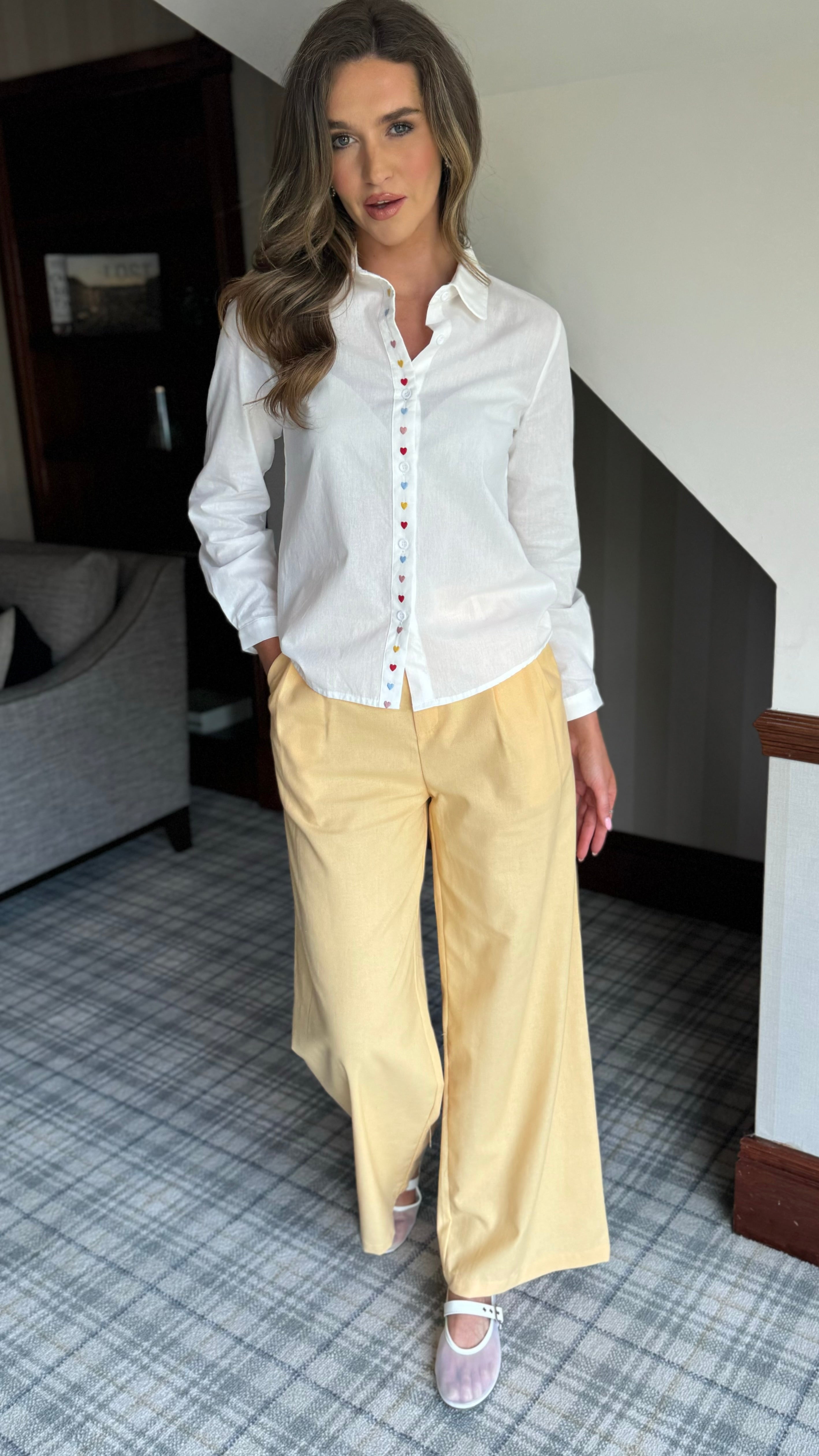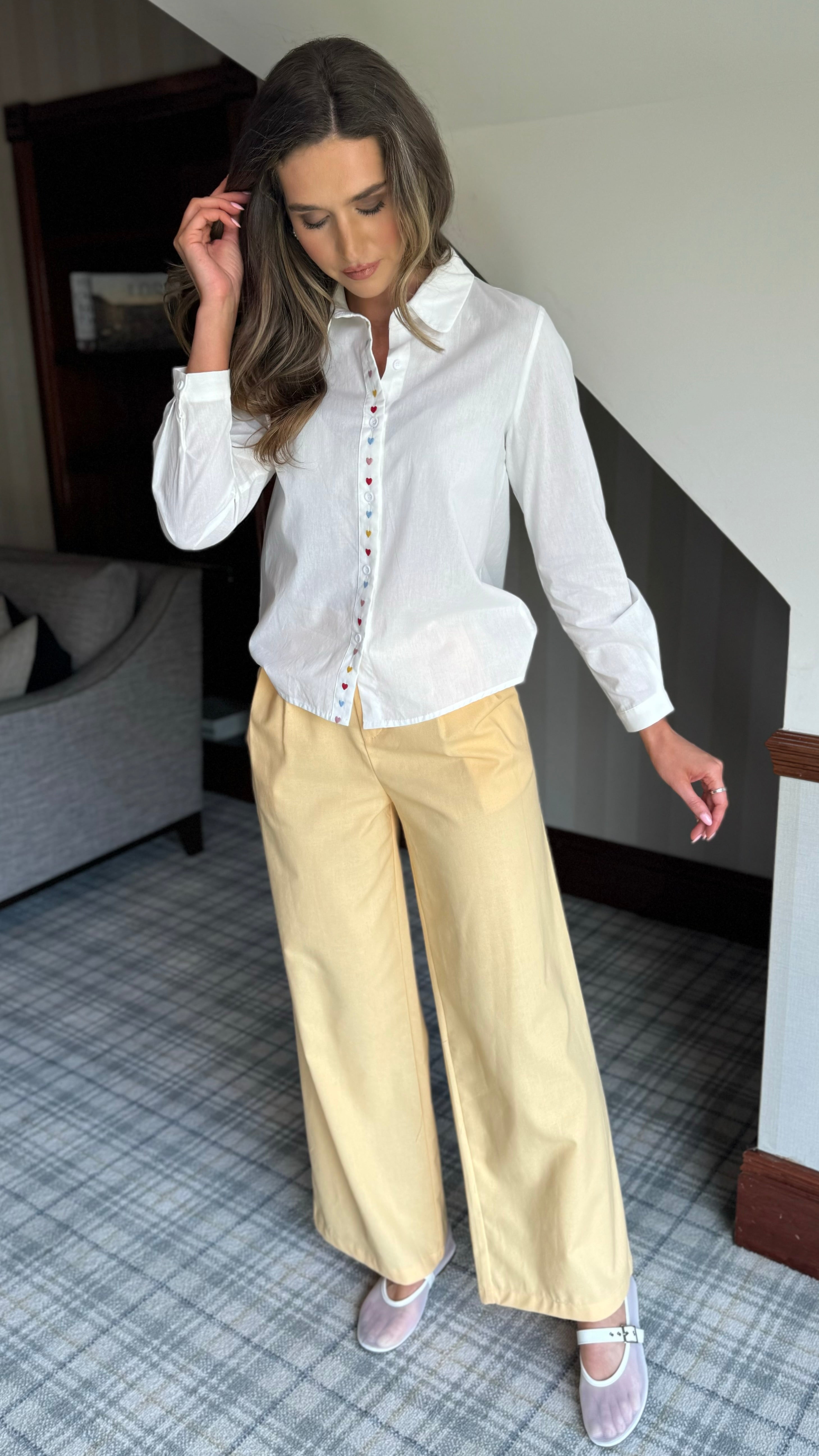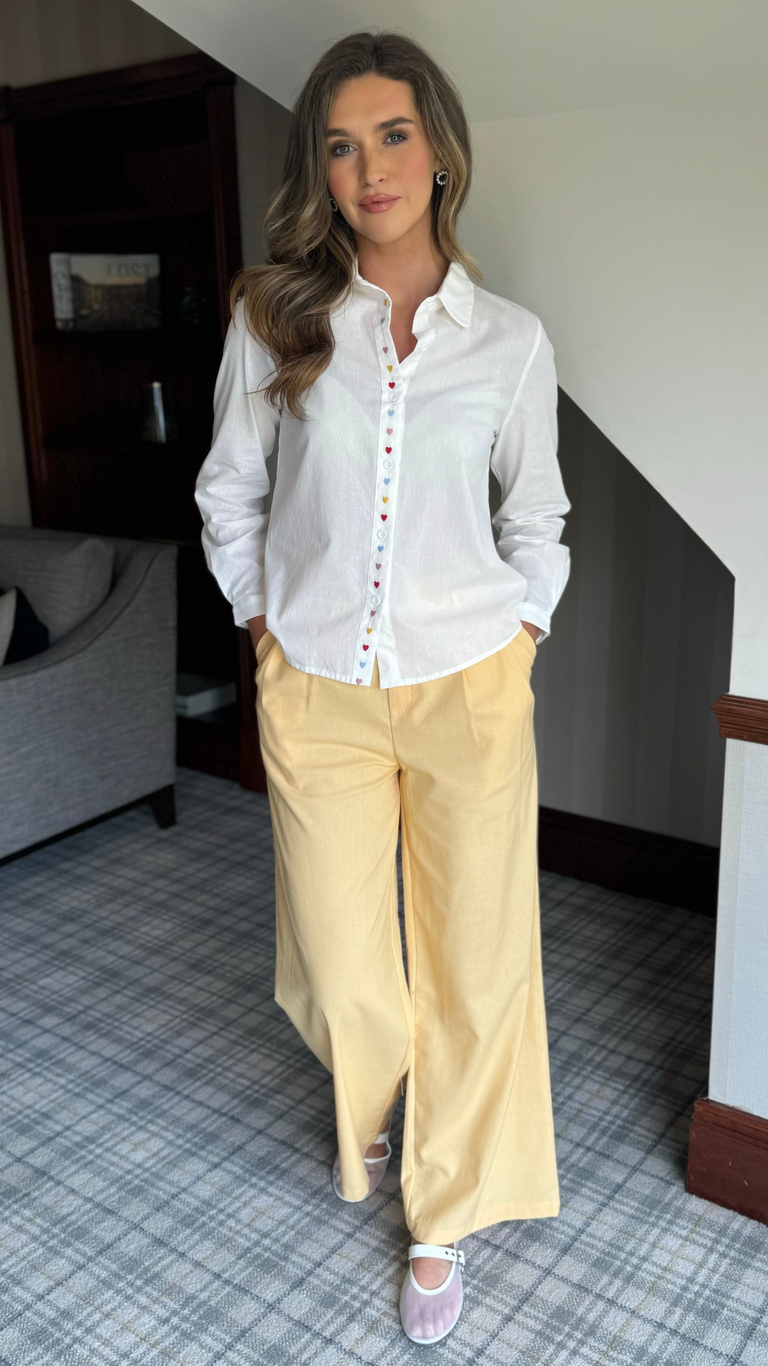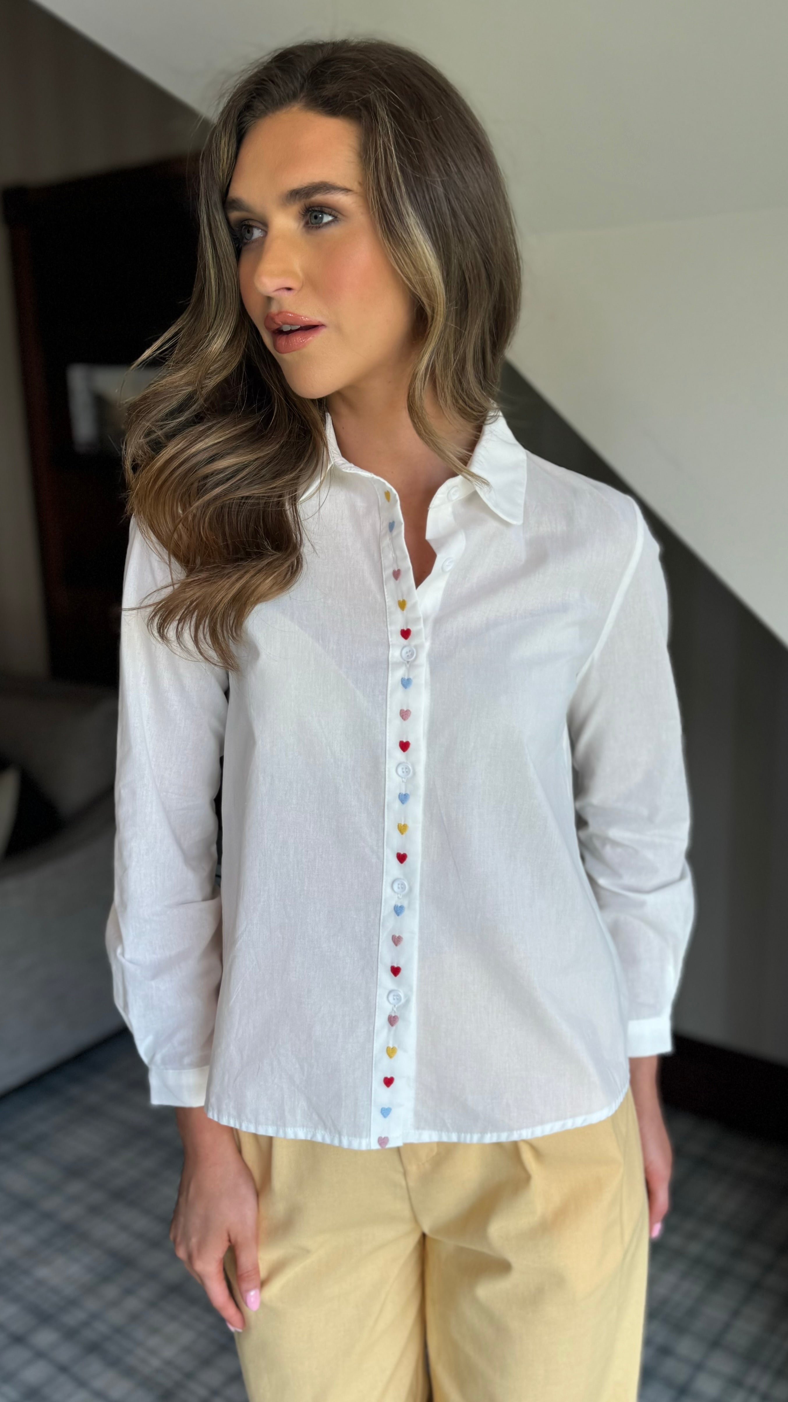 Got some ❤️ to flaunt? Don this Pamela White with heart button-down shirt and let your quirky style shine. It's bound to turn heads whether you're out on a date or just hanging with friends.