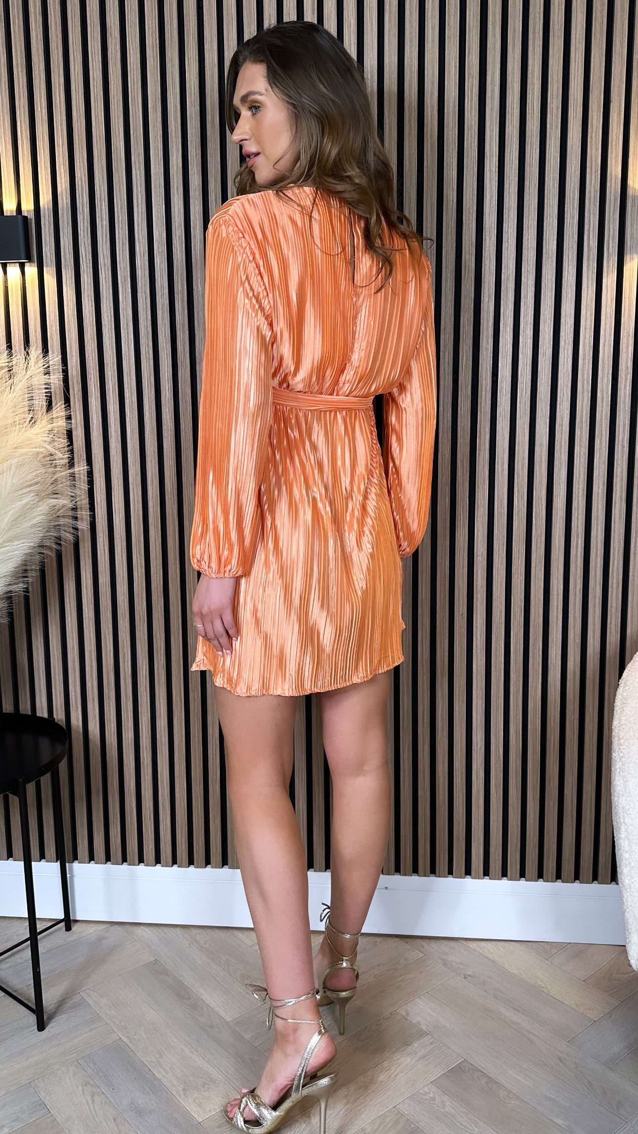 Summer Orange Plisse Belted Mini Dress