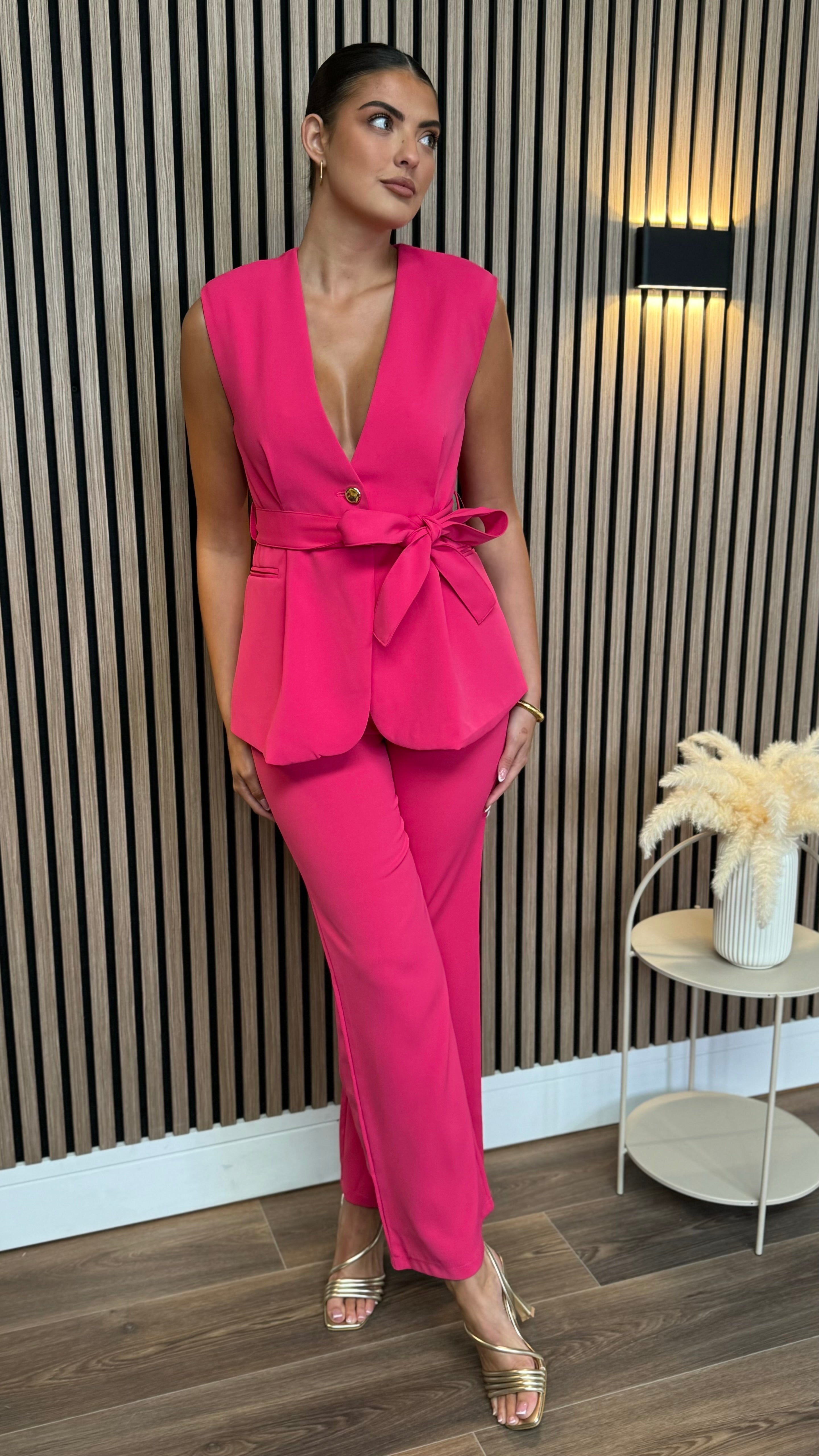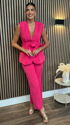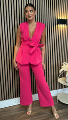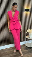 Yasmin Pink Fuchsia Wide Leg Trouser & Waistcoat Co-Ord