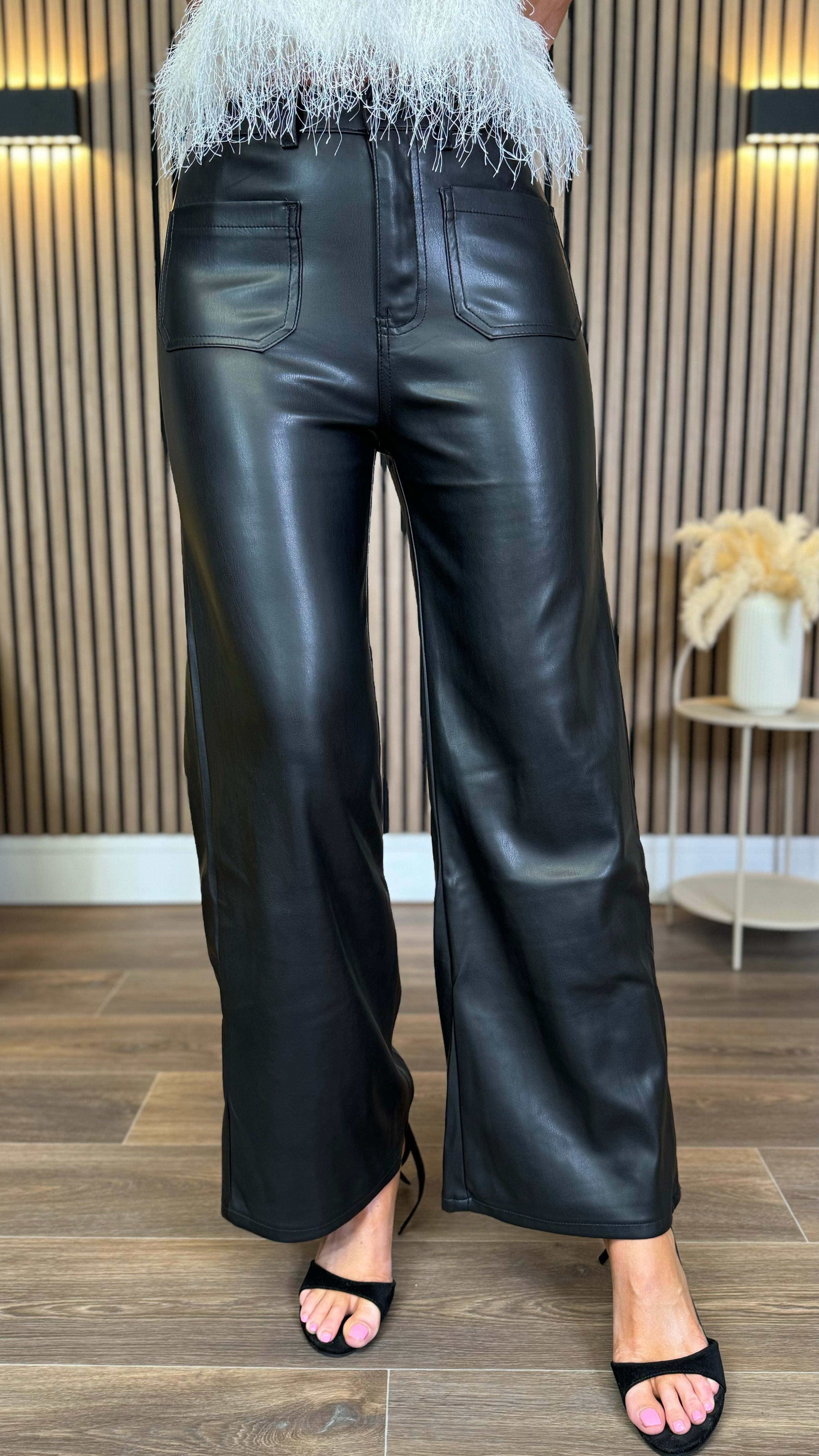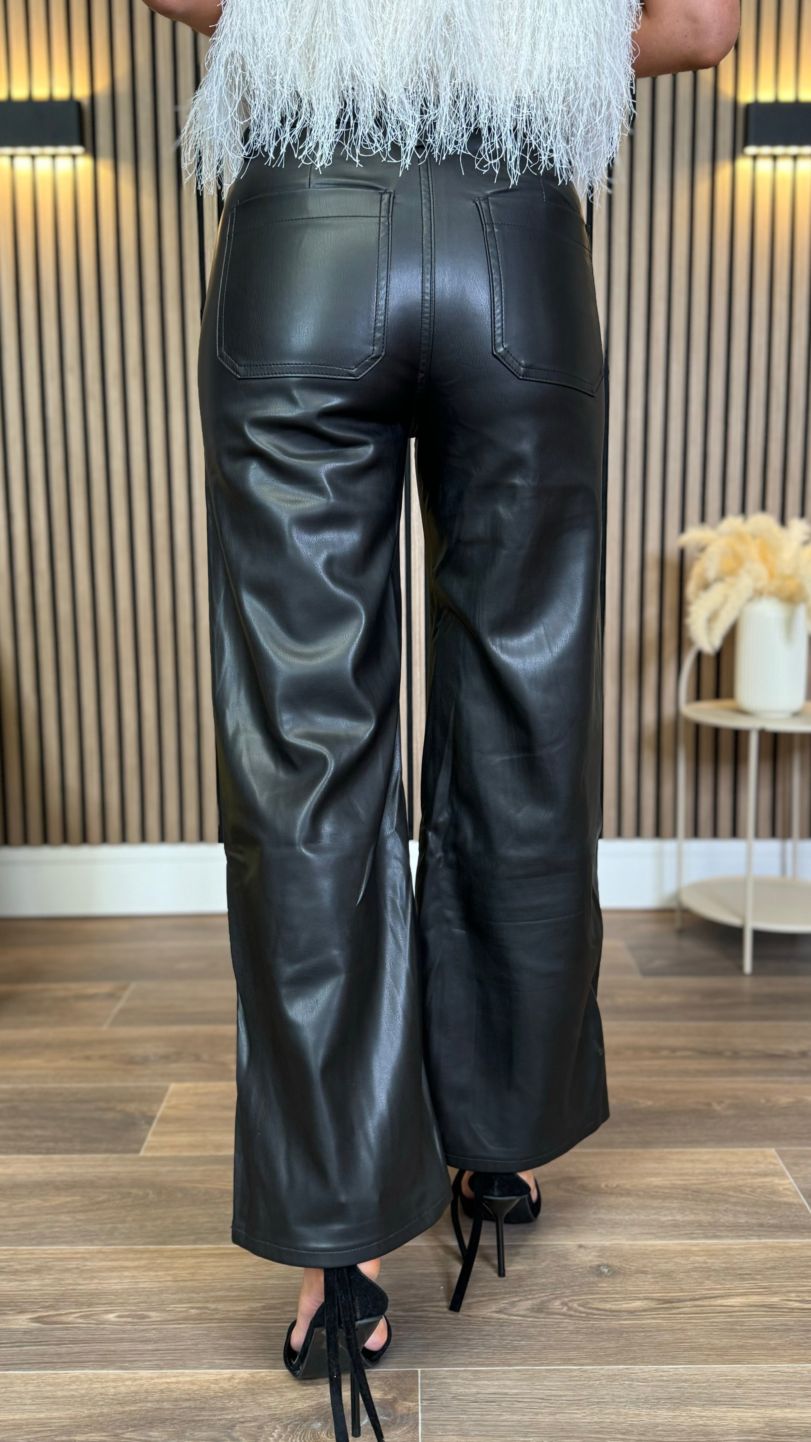Mia Faux Leather High Waisted Wide Leg Trousers