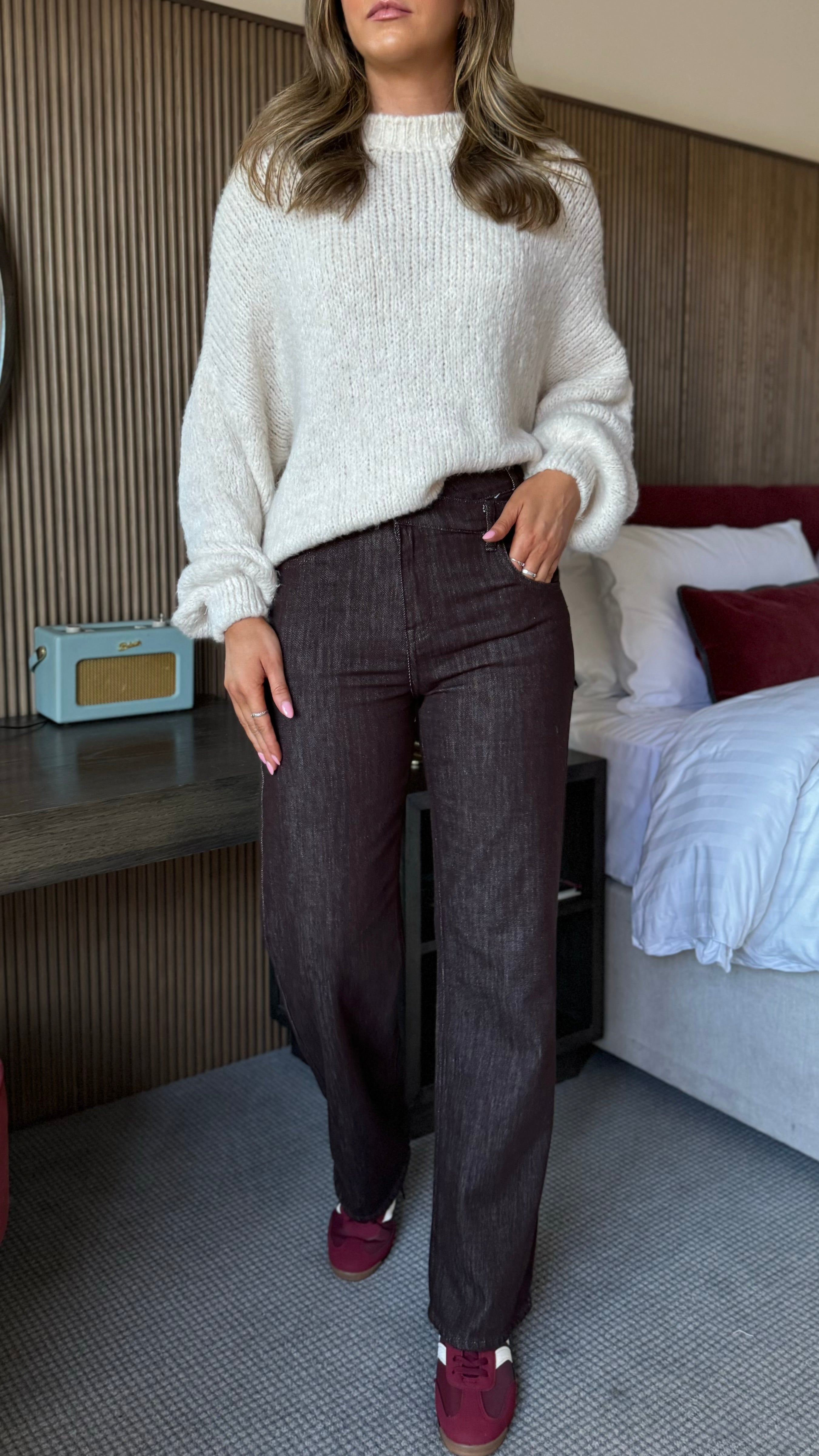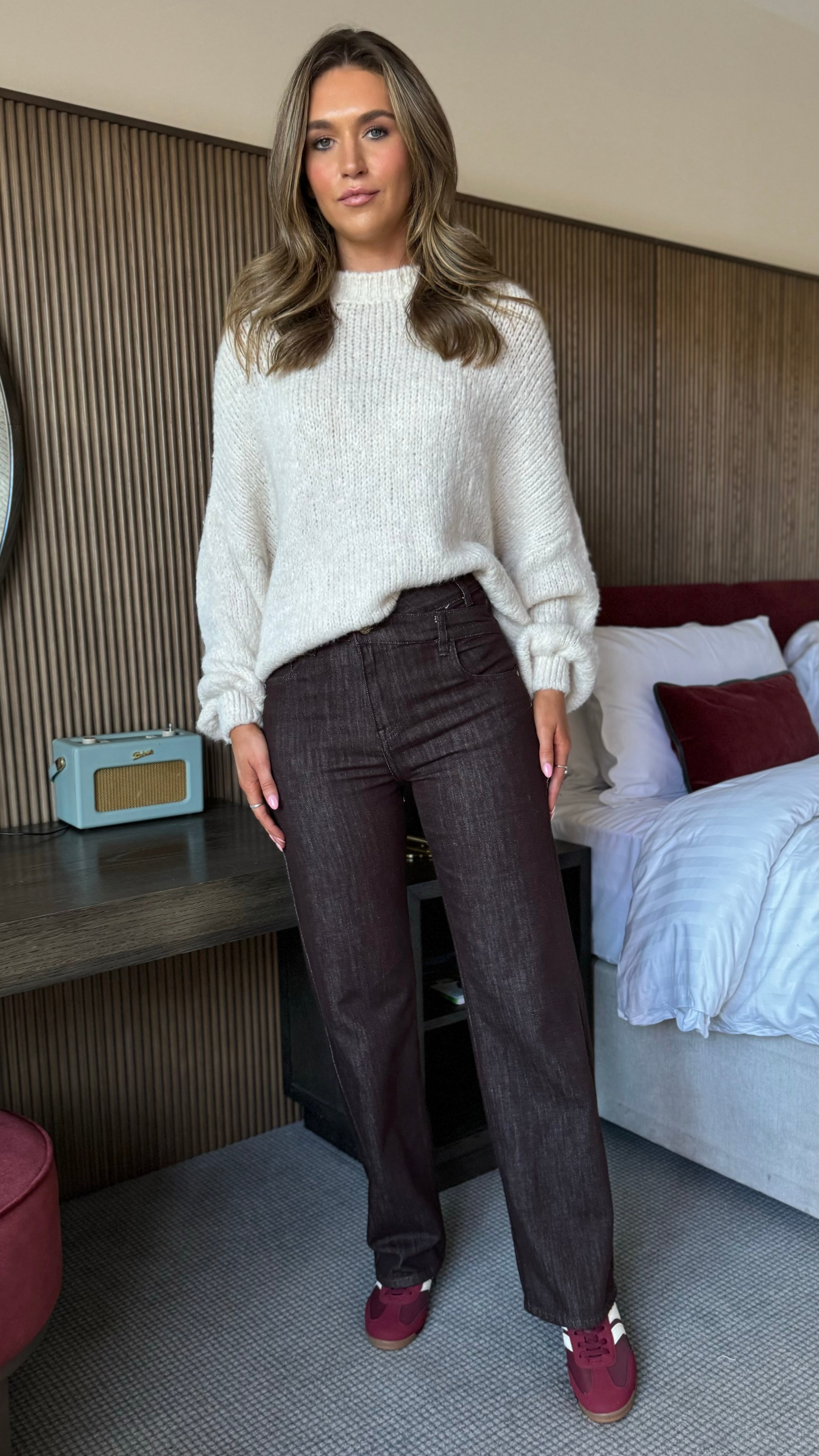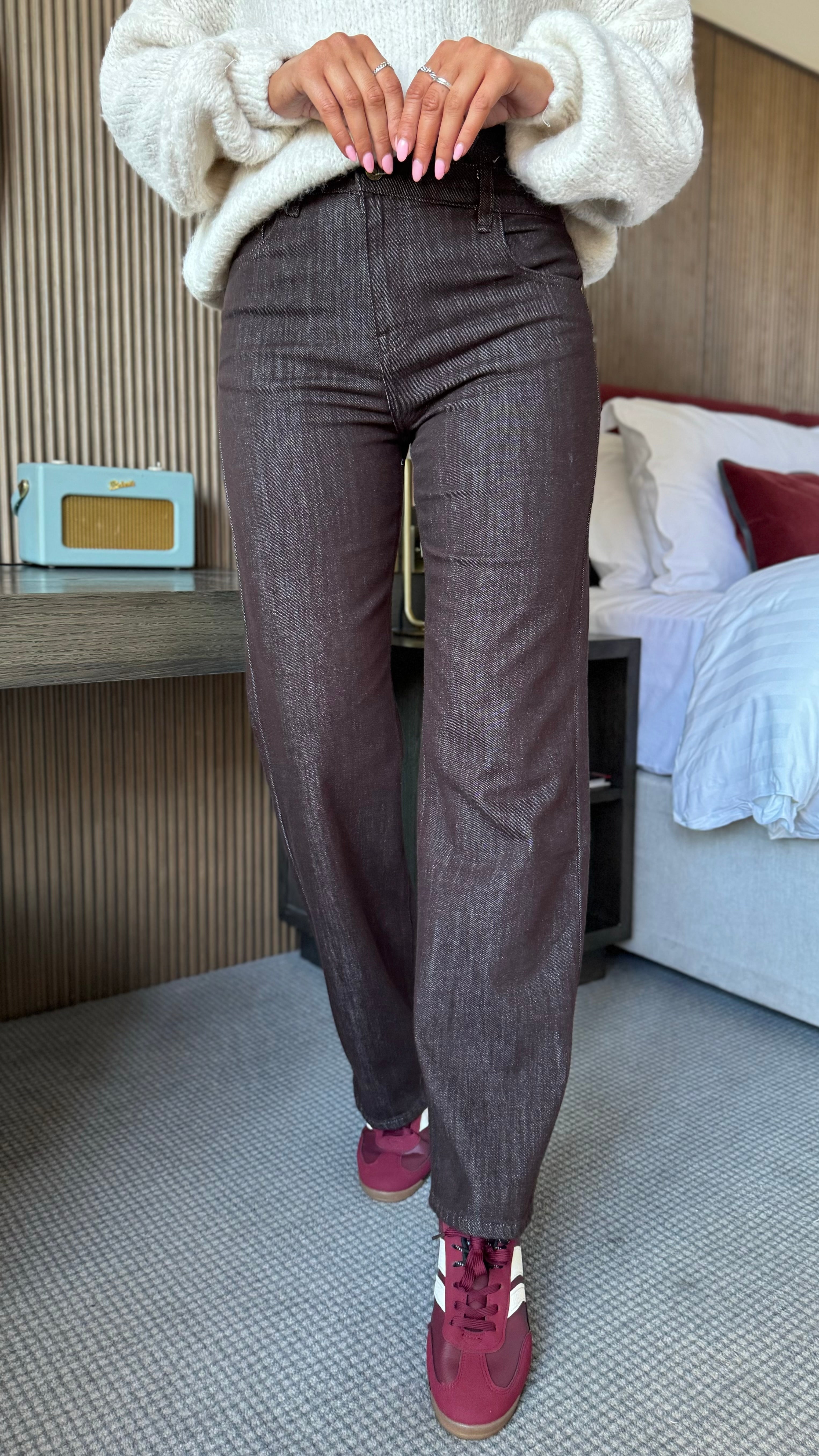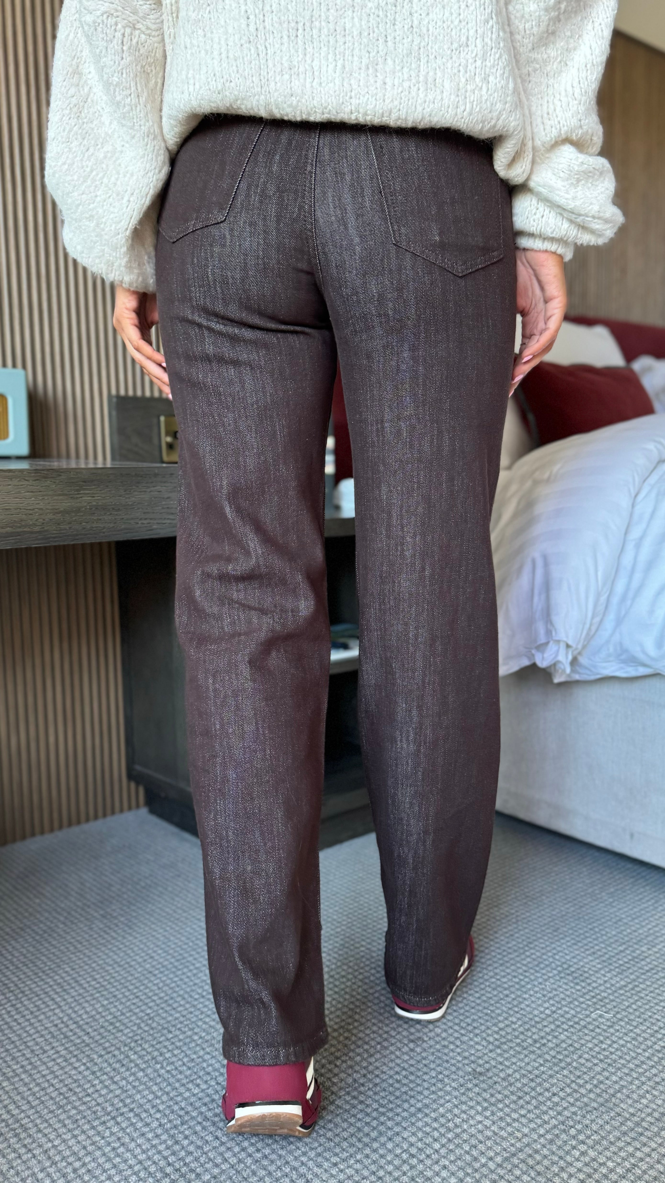 Bring a fun twist to your denim collection with these Winnie Chocolate Brown Distressed Design Jeans. Featuring a playful asymmetric waistline and shiny gold hardware details, they catch the eye in all the right ways. Practical front and back pockets plus belt loops keep things functional, while the straight leg and stretchy fabric promise a comfortable fit that moves with you all day long.