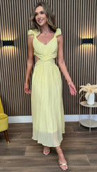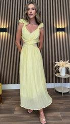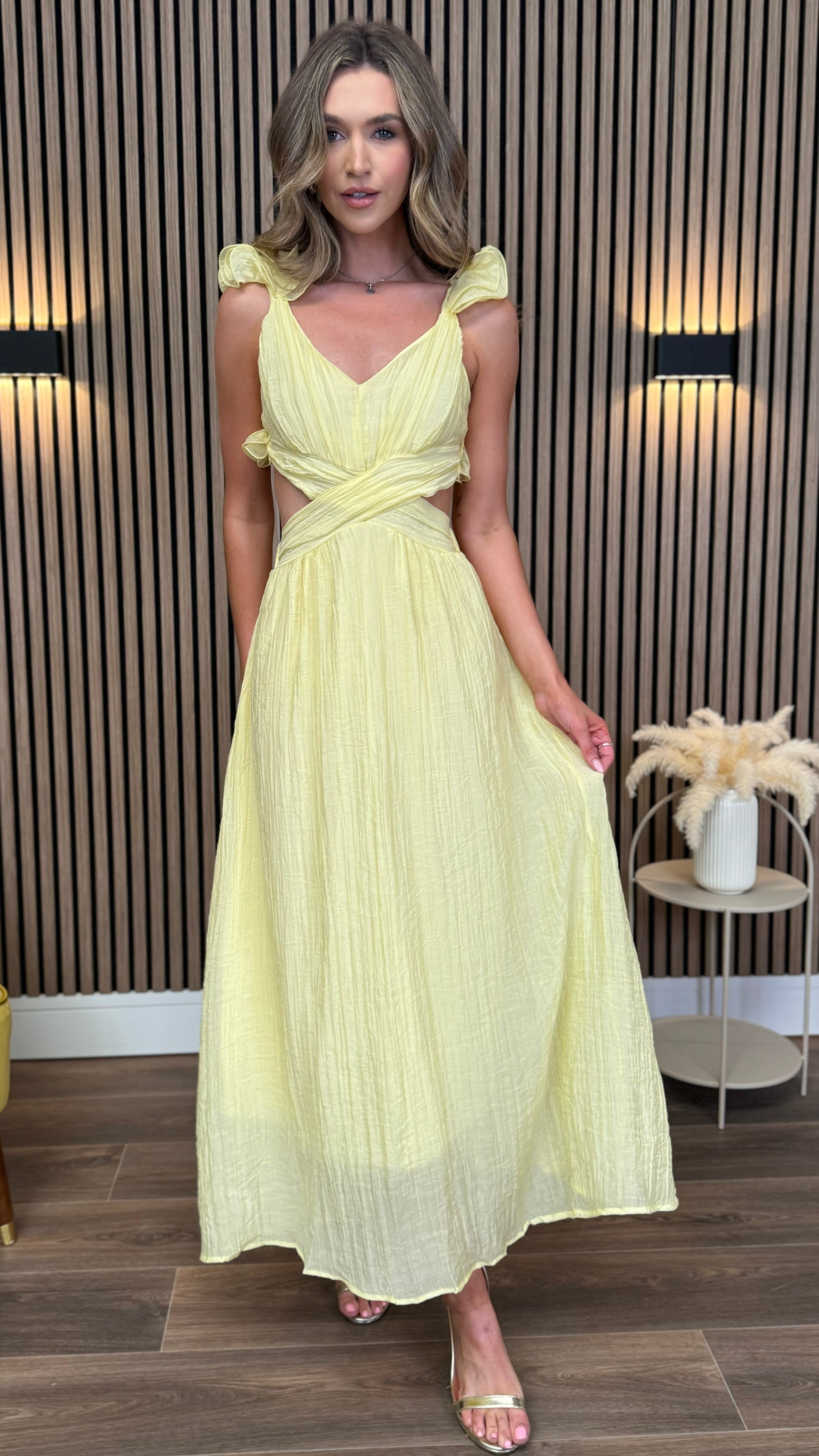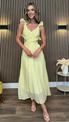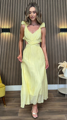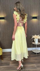 Elsa Yellow Ruffle Details Backless Midi Dress
