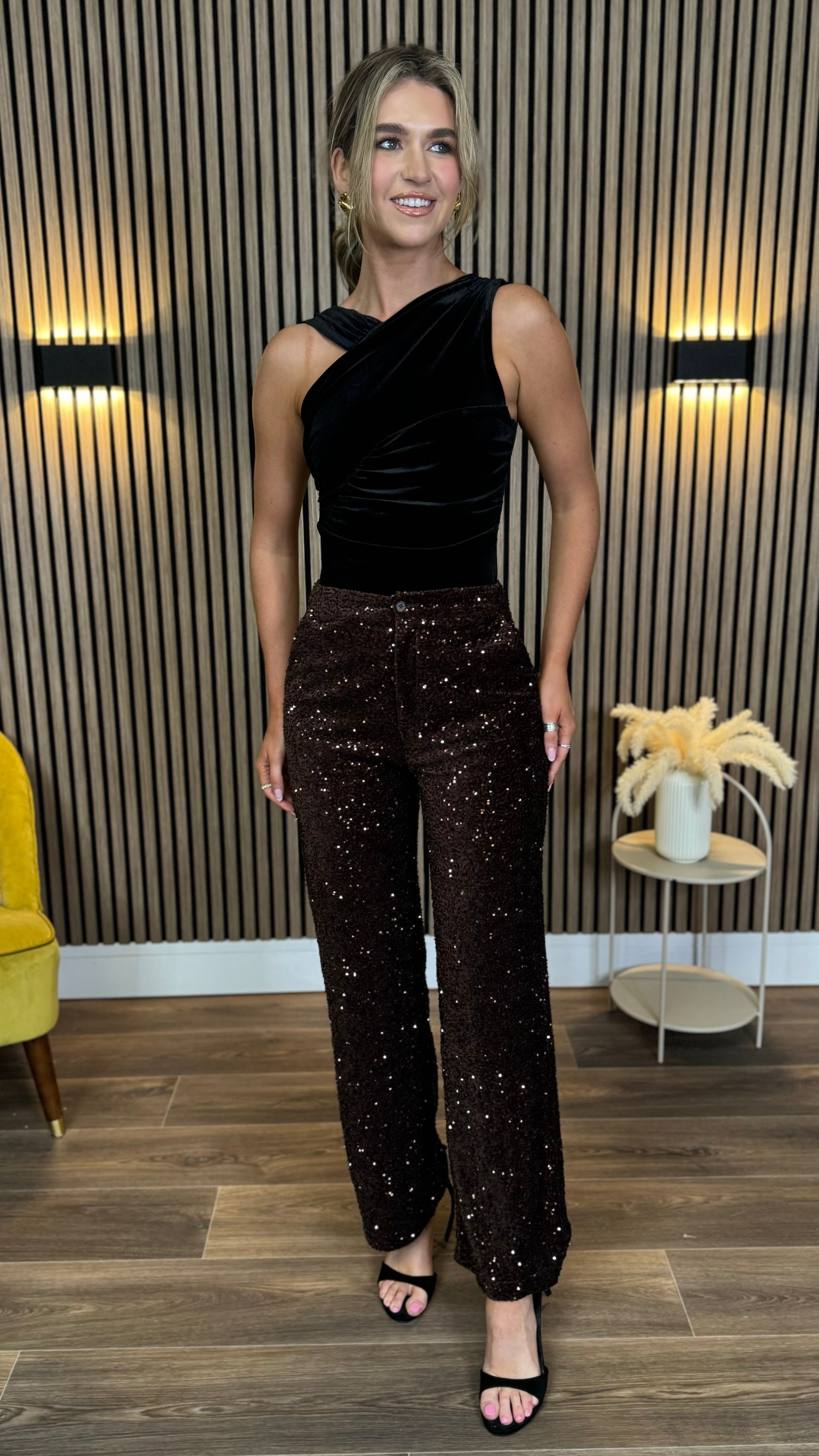 Elevate your look with the Wanda Black Velvet Bodysuit, featuring a playful asymmetrical strap and flirty ruched detailing. The sumptuous velvet fabric adds luxe texture, while the secure clasp fastening ensures a perfect fit for all-day confidence. Look effortlessly chic and ready to turn heads wherever you go!