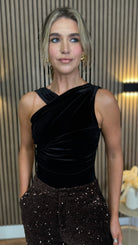 Wanda Black Velvet Asymmetric Detail Bodysuit