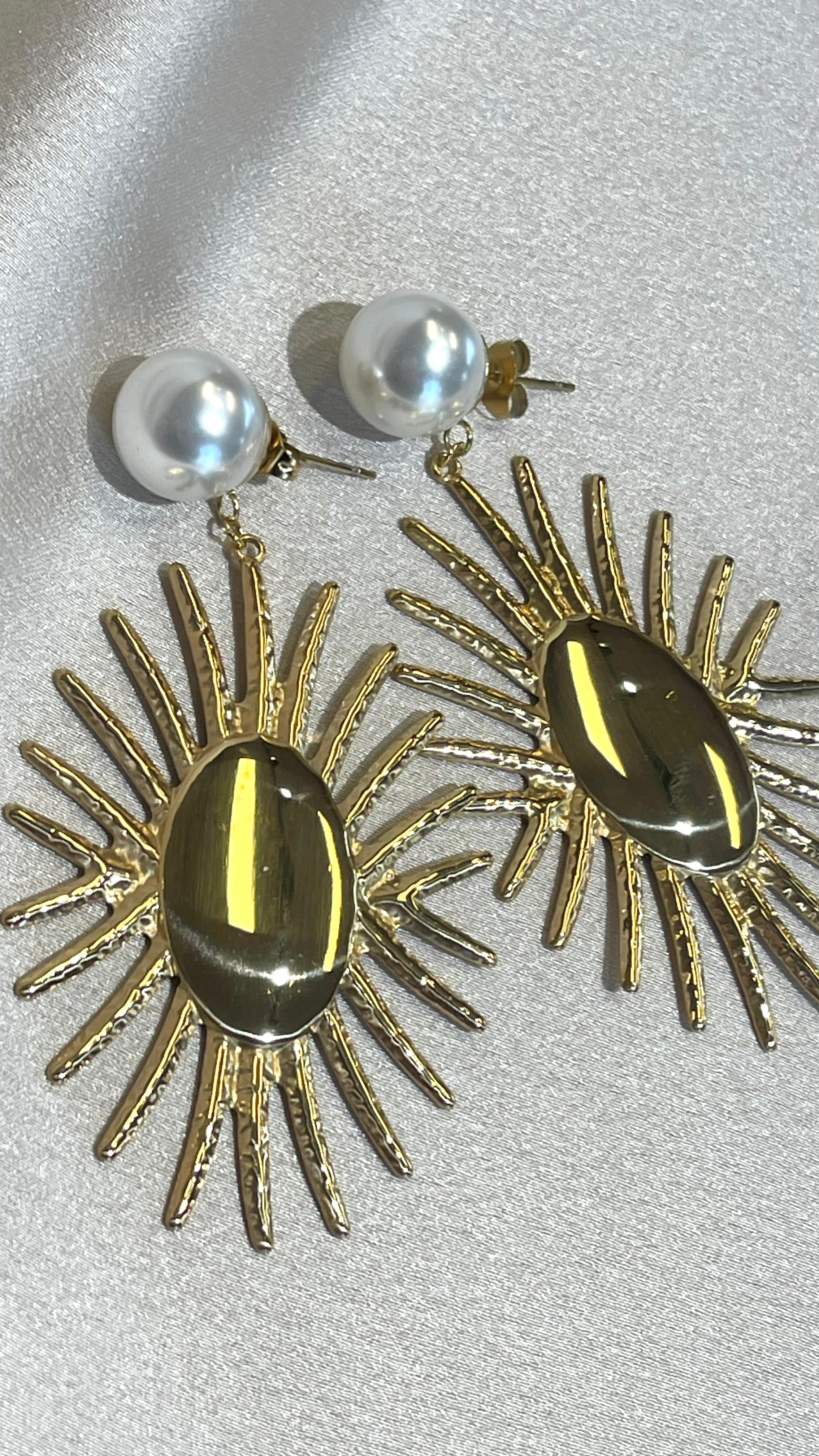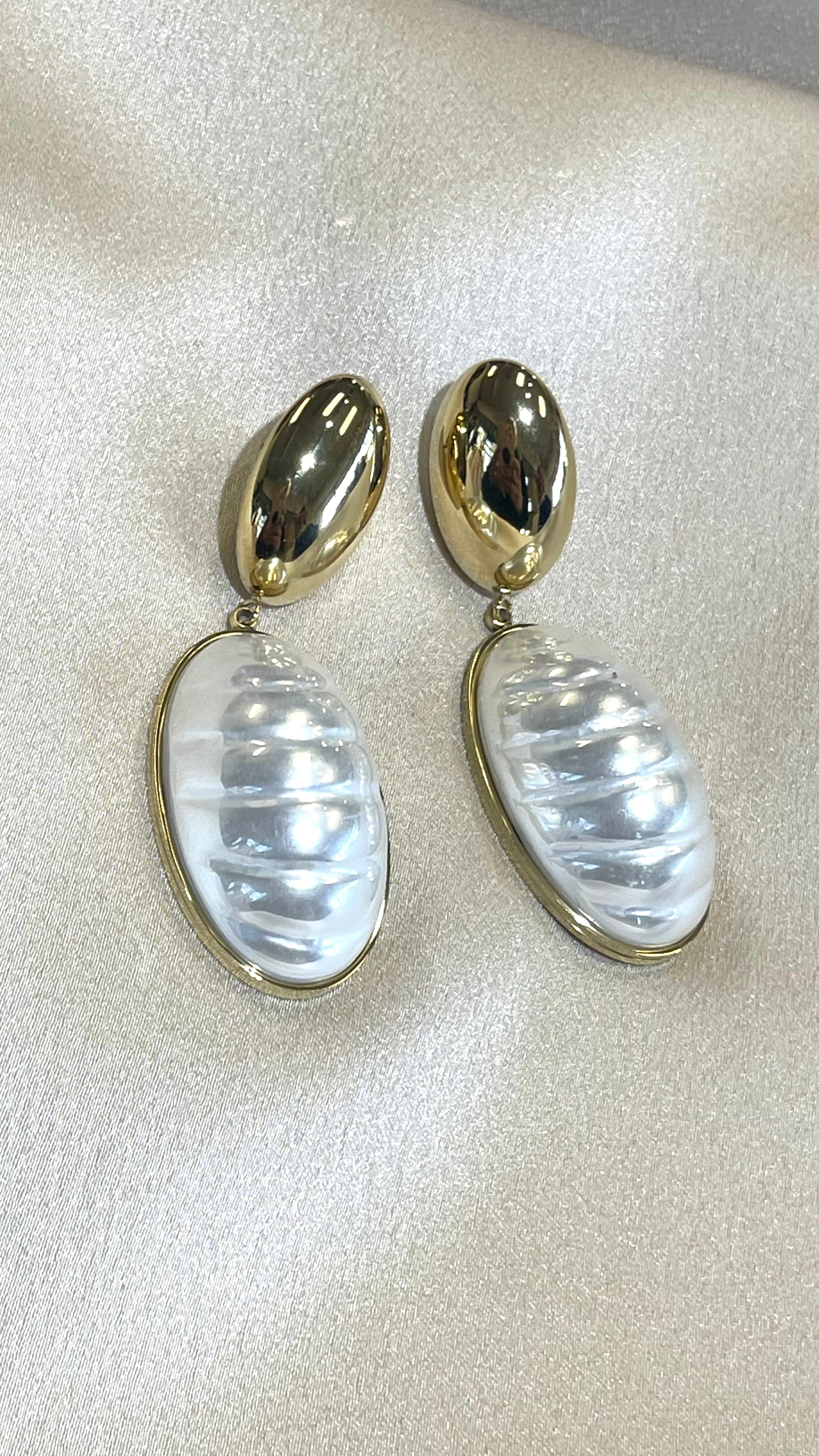 Helene Gold & Pearl Detail Wavy Design Earrings