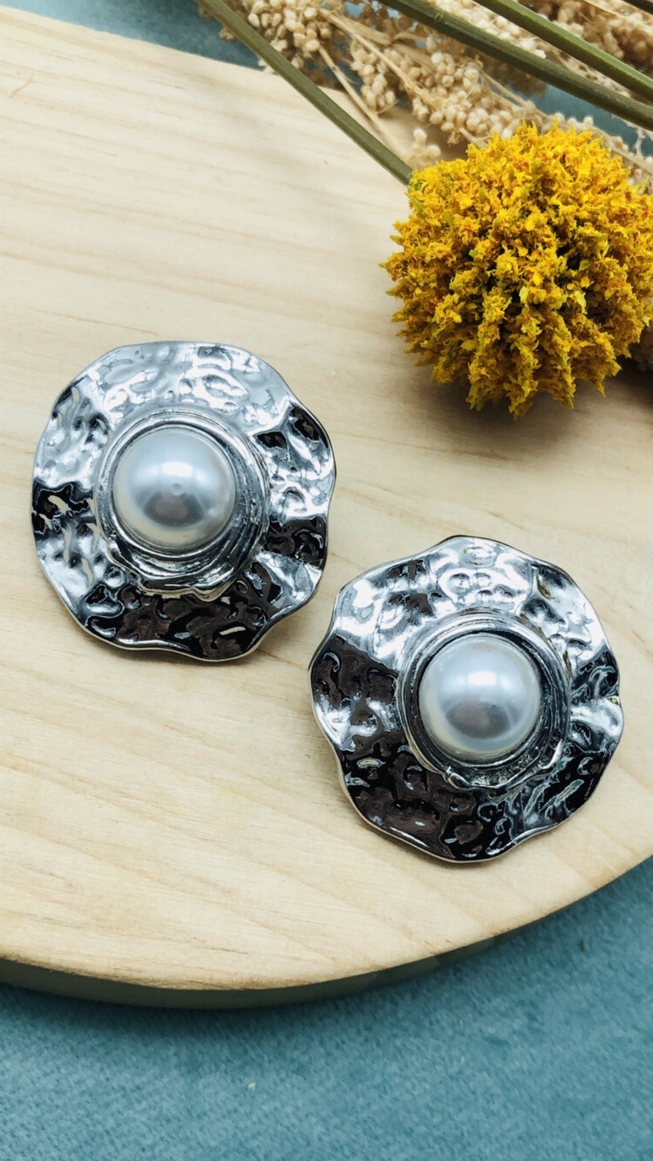 Helene Silver & Pearl Detail Wavy Design Earrings