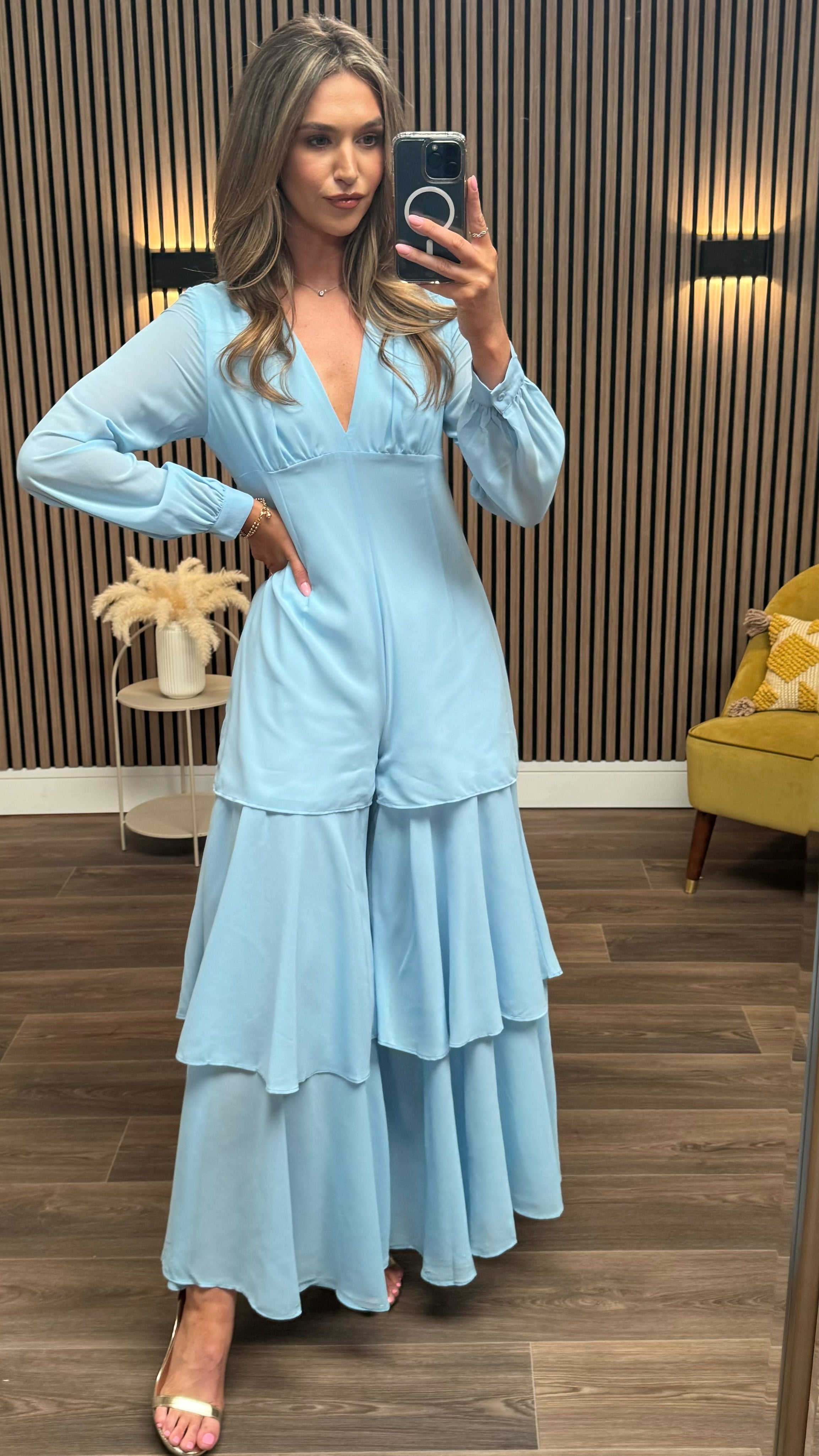 Lizzie Blue V Neckline Long Sleeve Maxi Jumpsuit