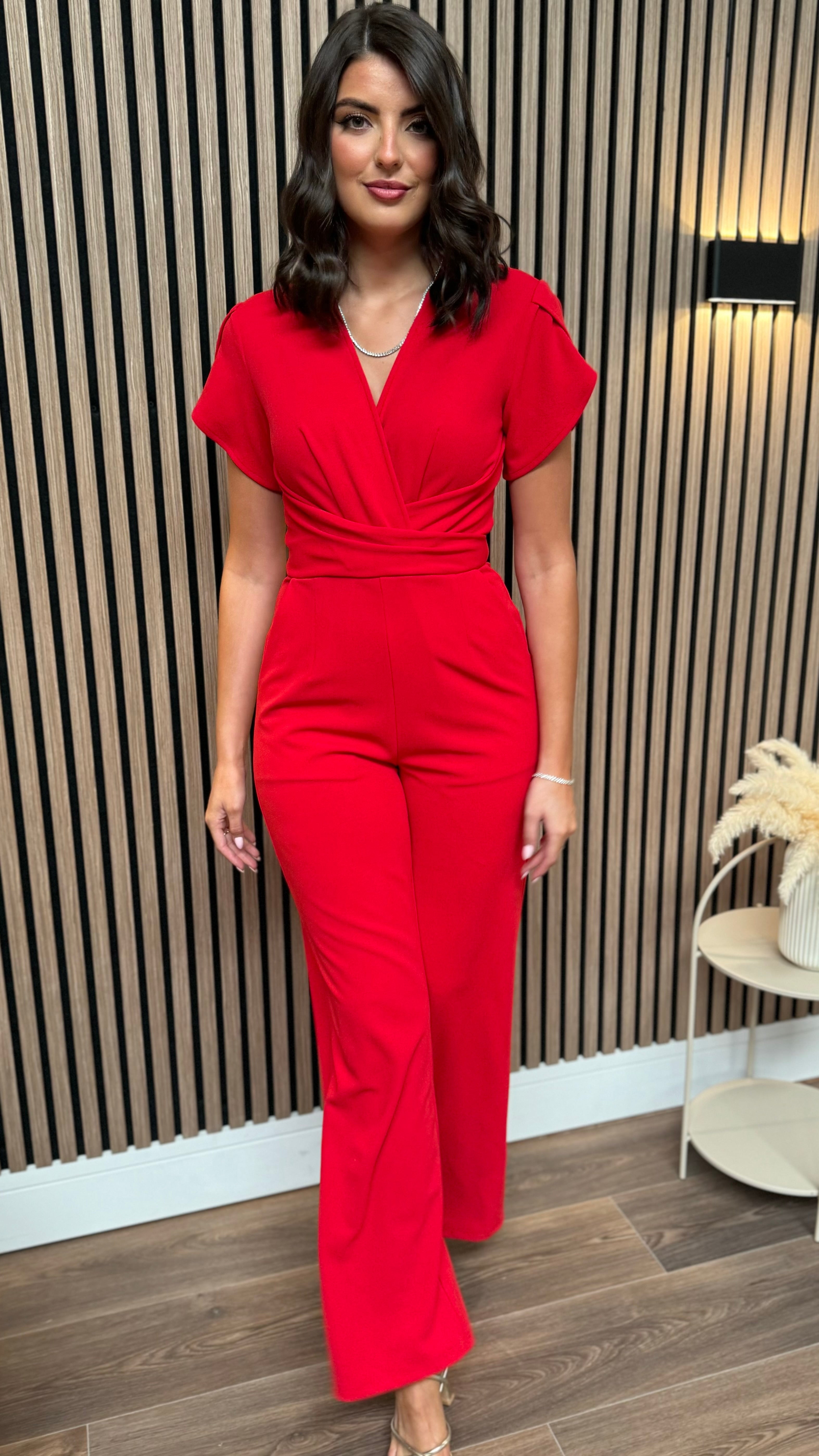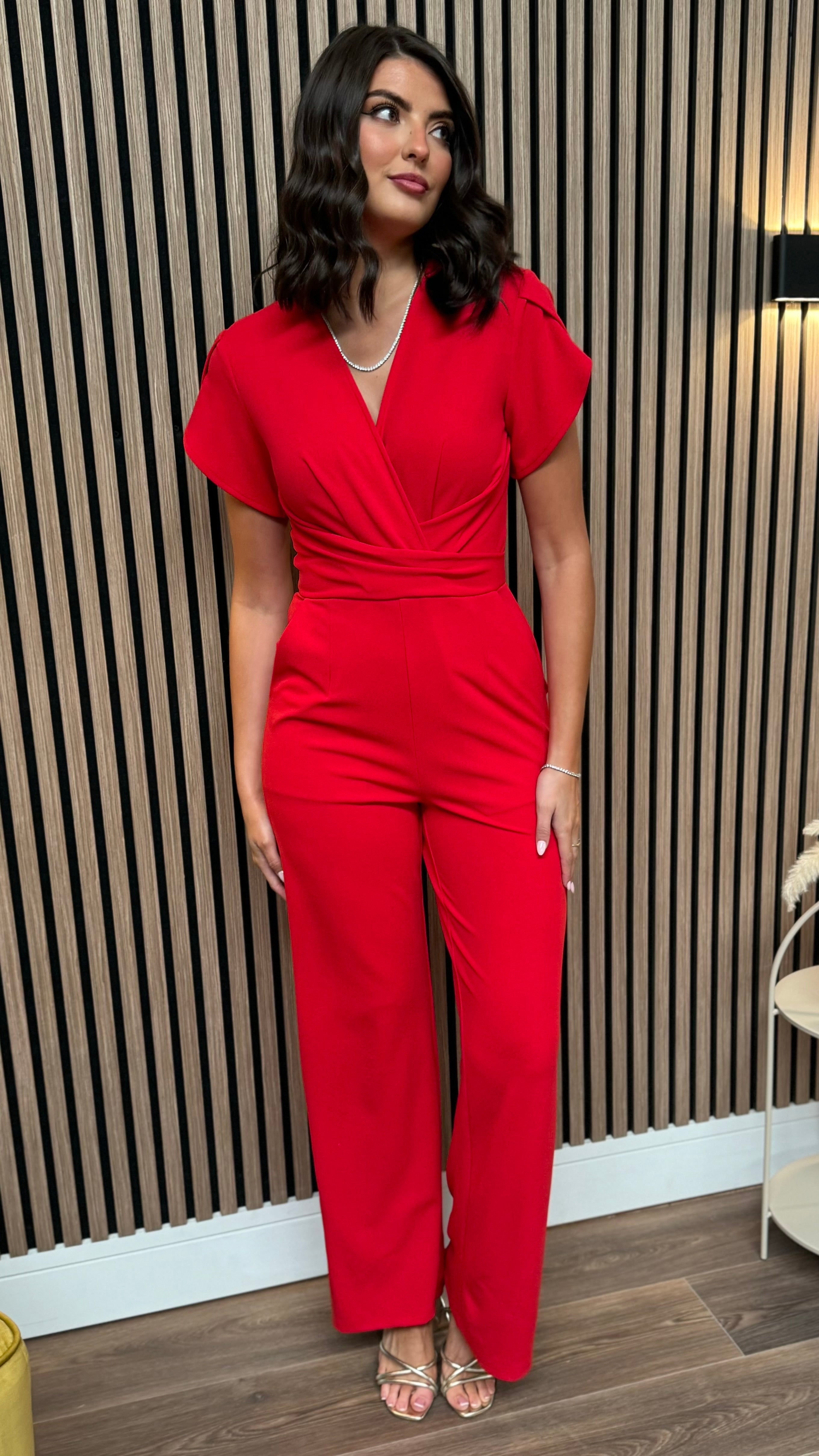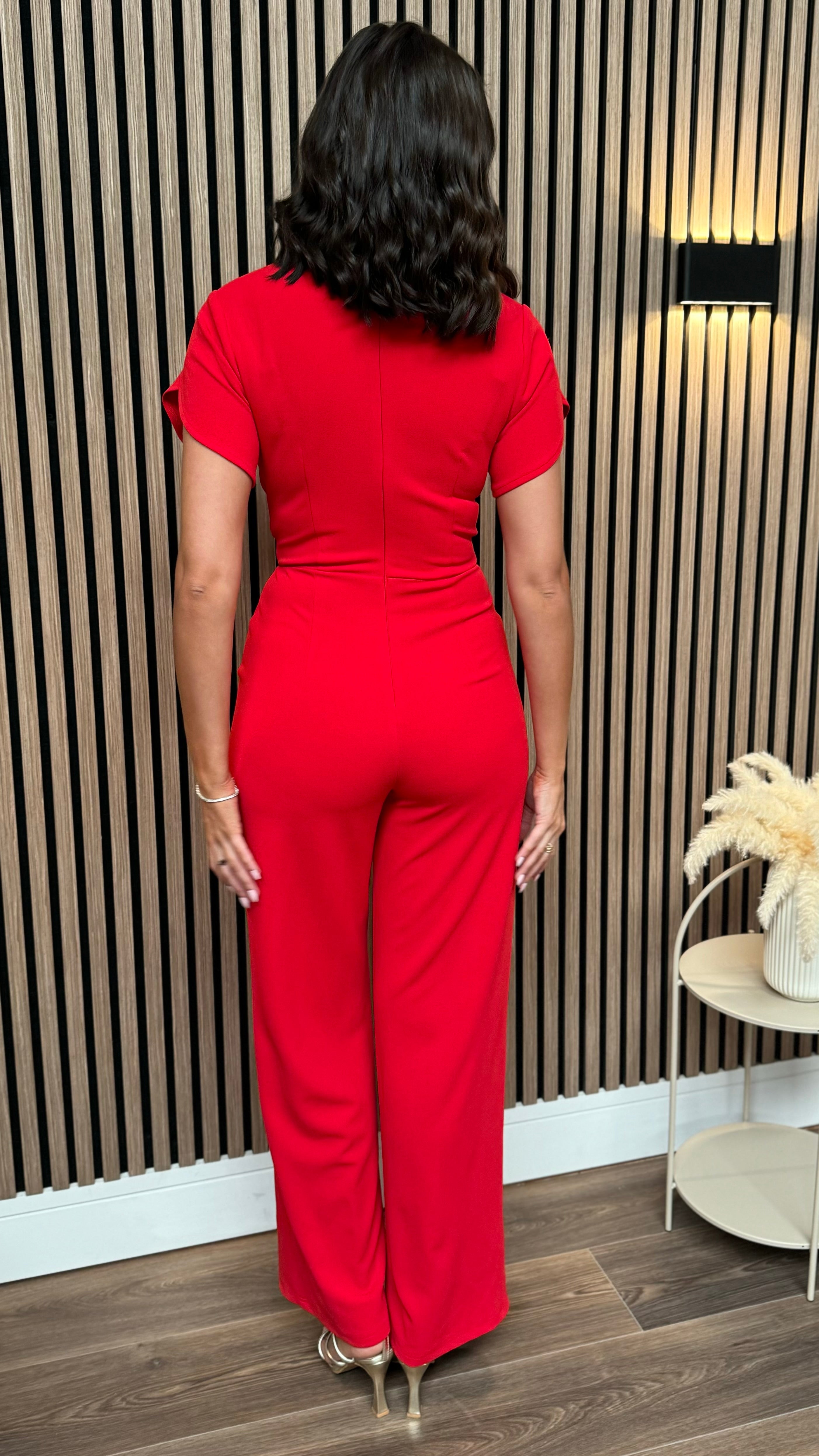 Paloma Red Twist Font Split Sleeve Jumpsuit