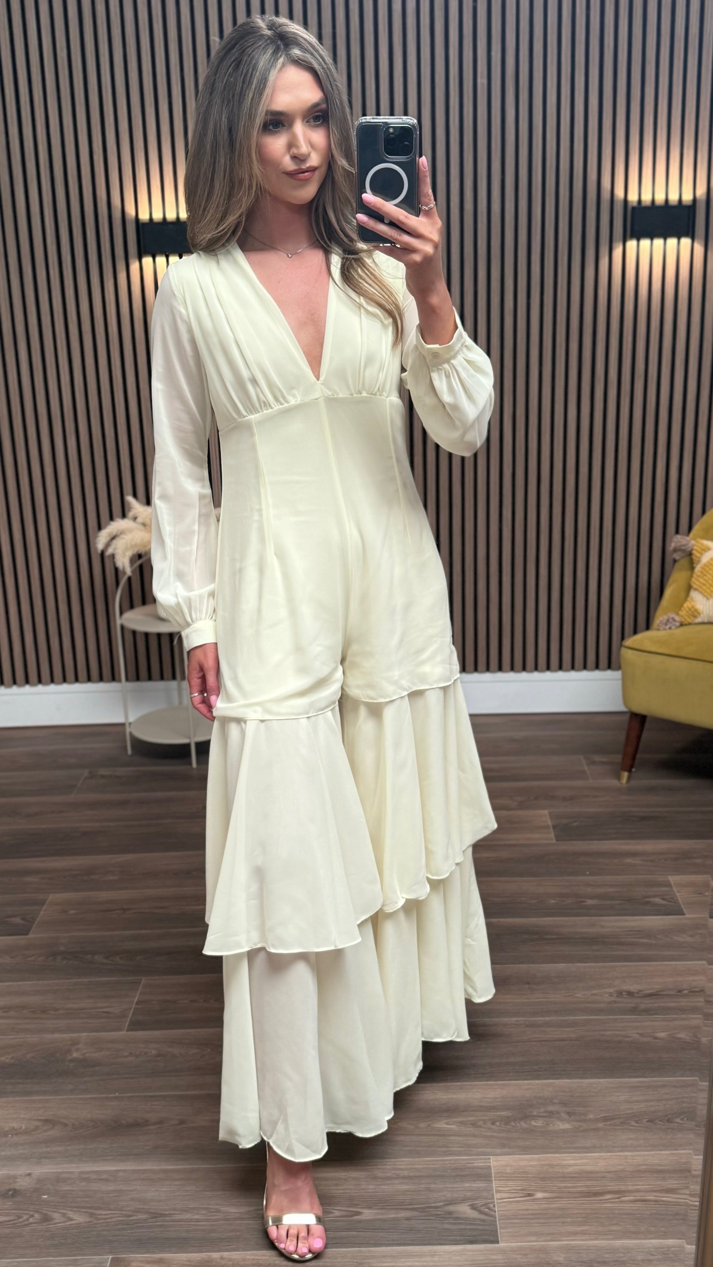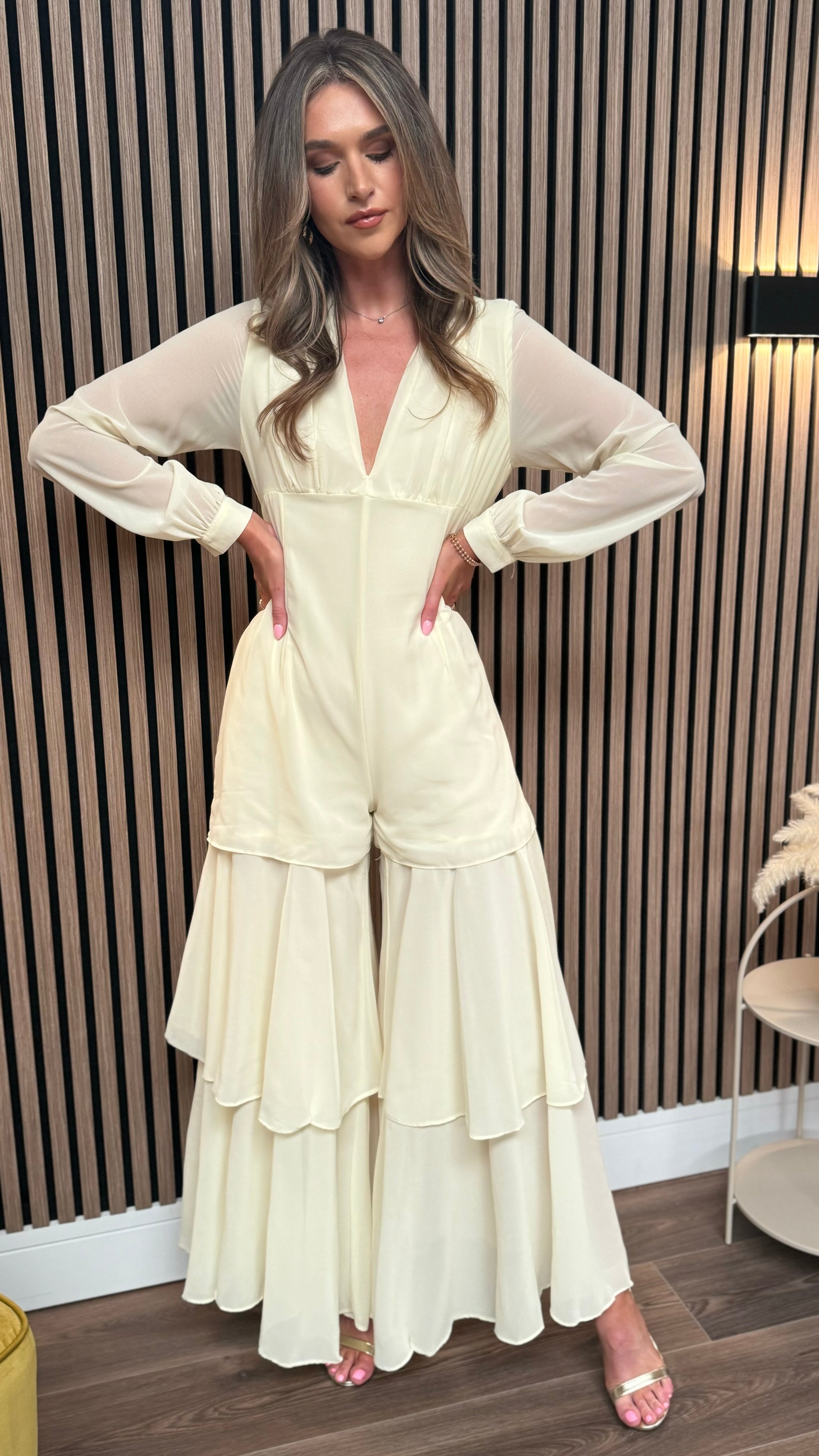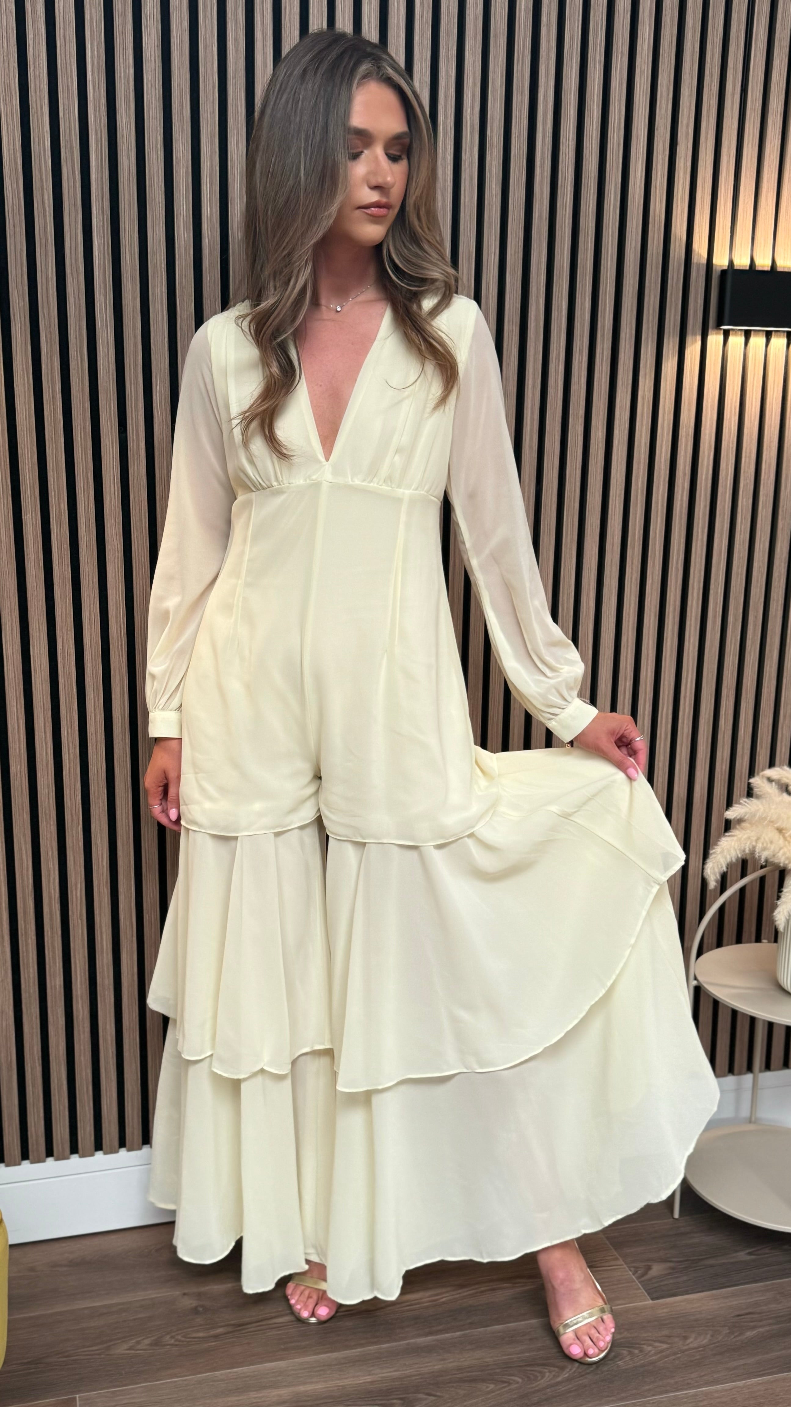 Lizzie Yellow V Neckline Long Sleeve Maxi Jumpsuit