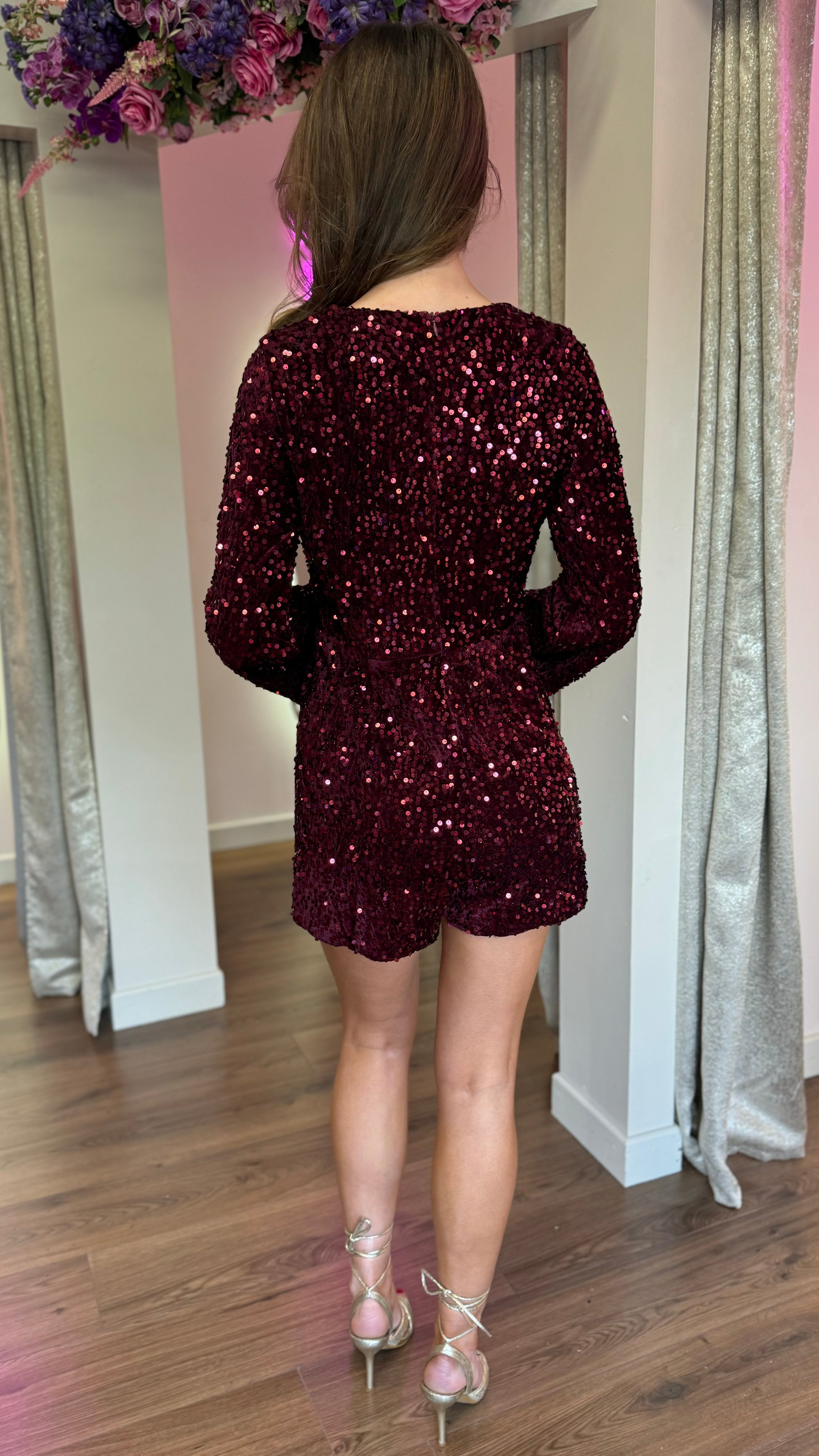 Mariama Burgundy Sequin Playsuit
