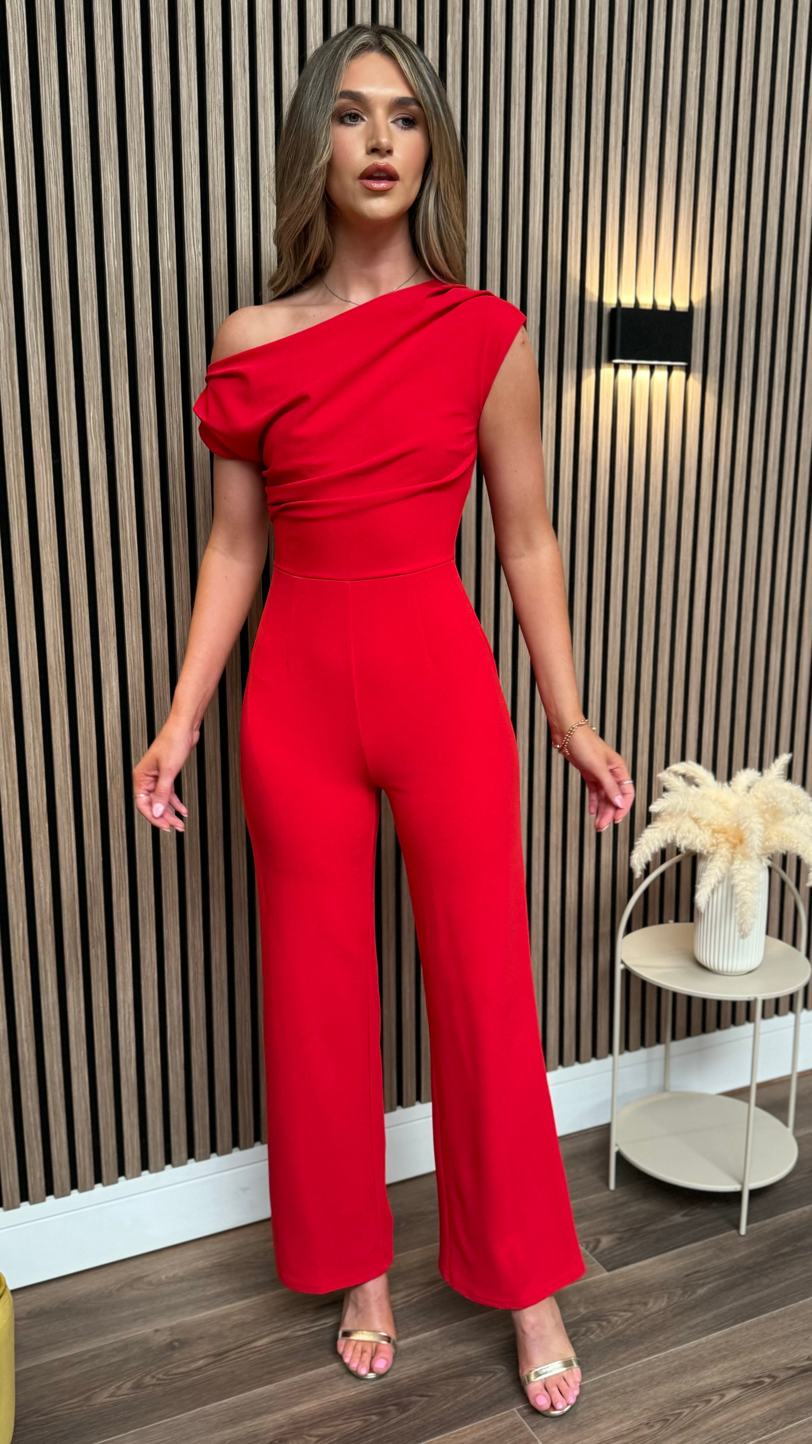 Nisha Red Sleeveless Cowl Neck Jumpsuit