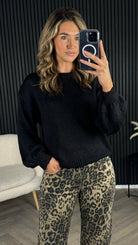 Bonita Black Round Neck Balloon Sleeve Jumper