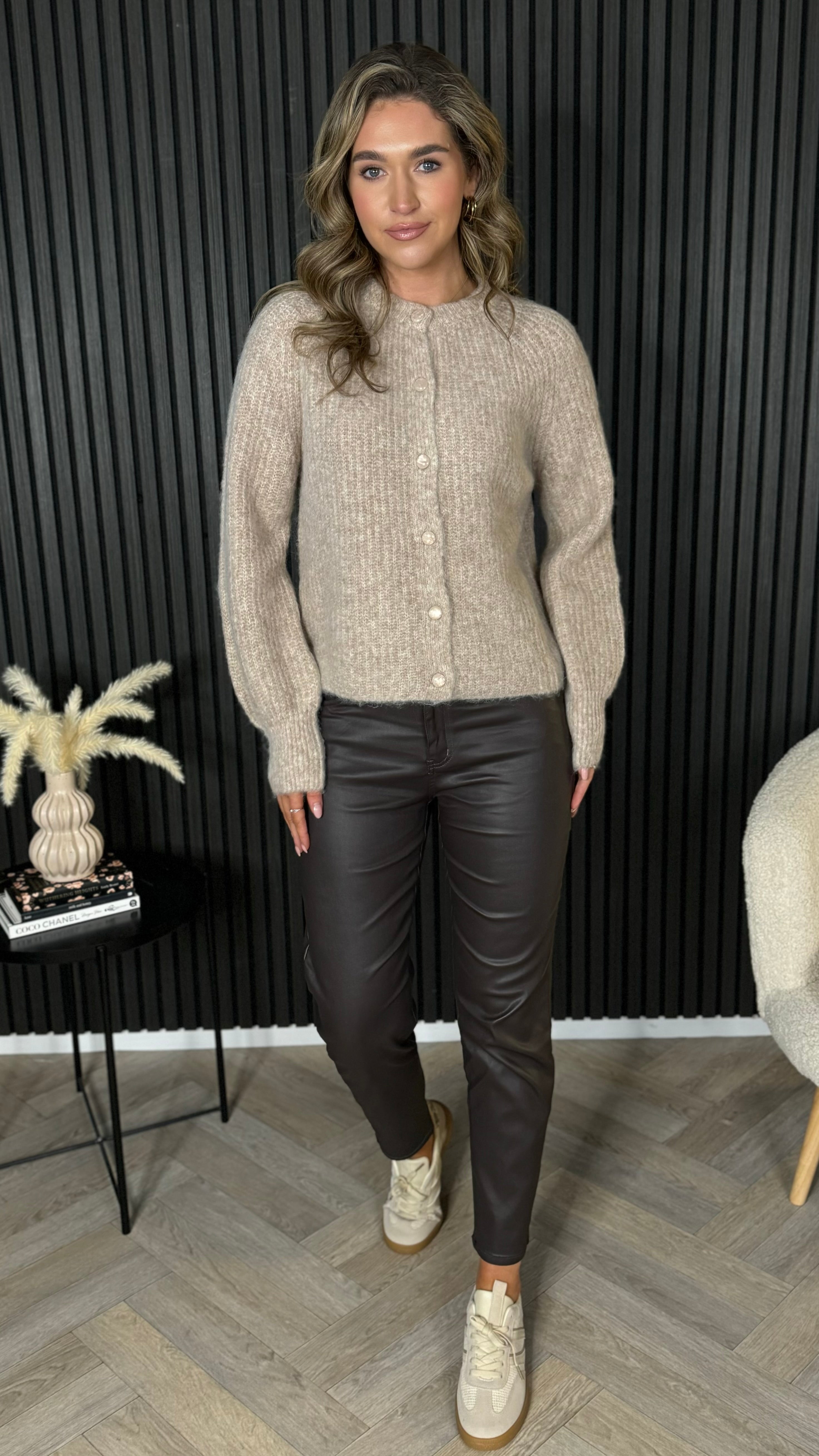 Slip into effortless comfort with the Lennon Taupe Button Down Ribbed Cardigan. This cosy knit features a classic round neck, perfectly ribbed cuffs and hem for a polished finish, and sumptuous soft ribbed material that feels like a warm hug. Layer it over your favourite tee or wear solo for that laid-back, chic vibe. Your new go-to piece for looking put-together without even trying.