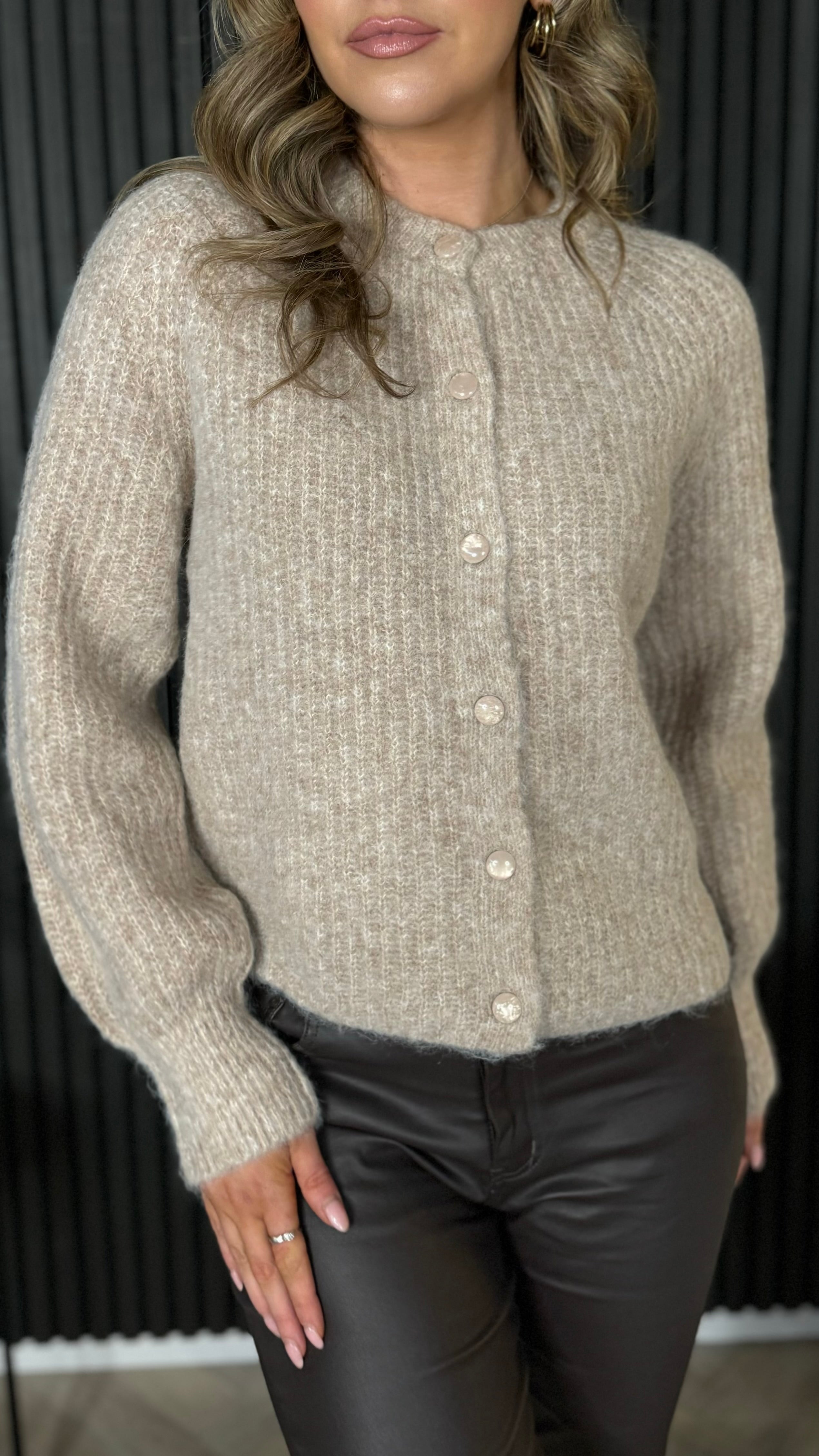 Lennon Taupe Button Down Ribbed Cardigan