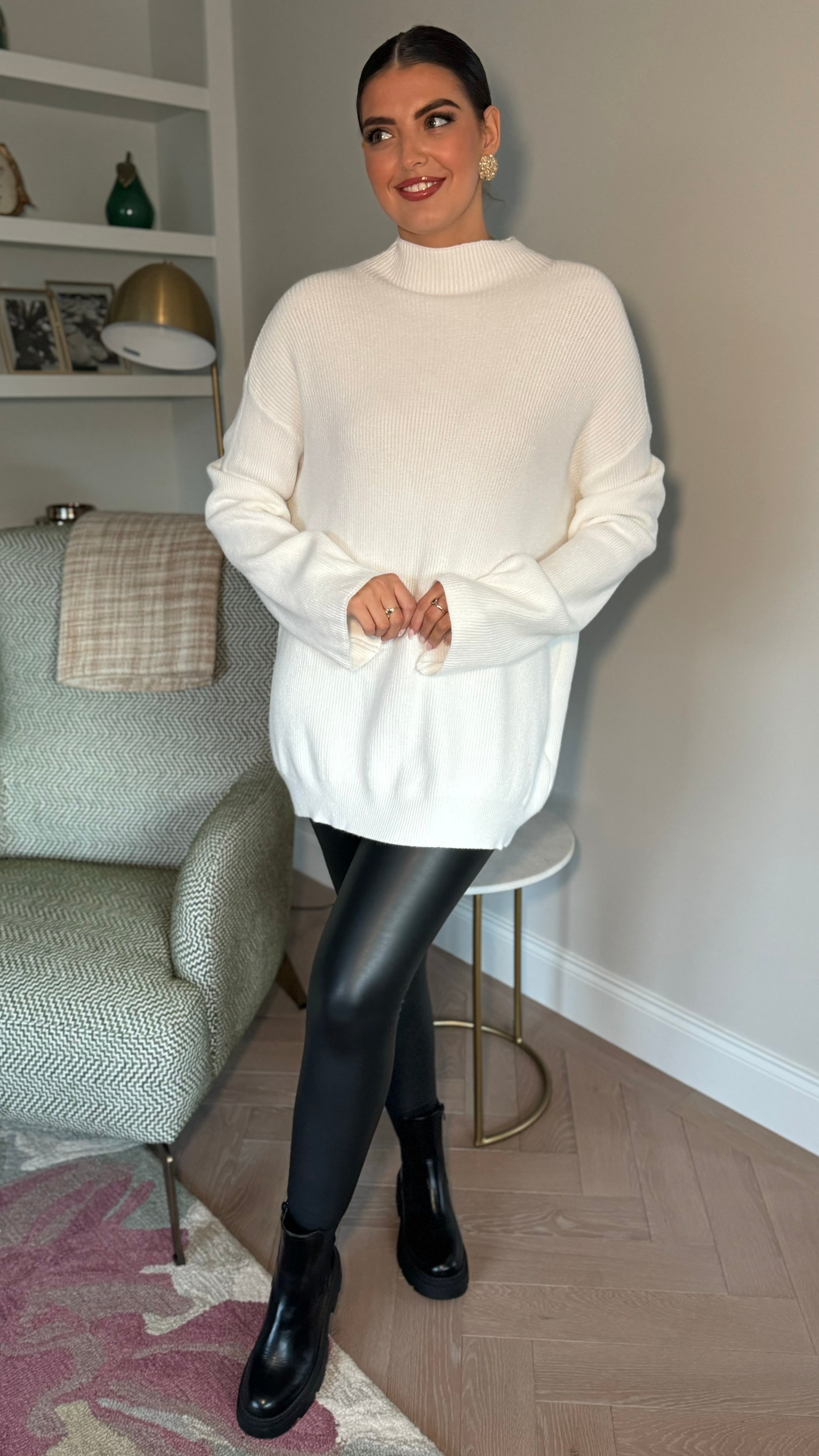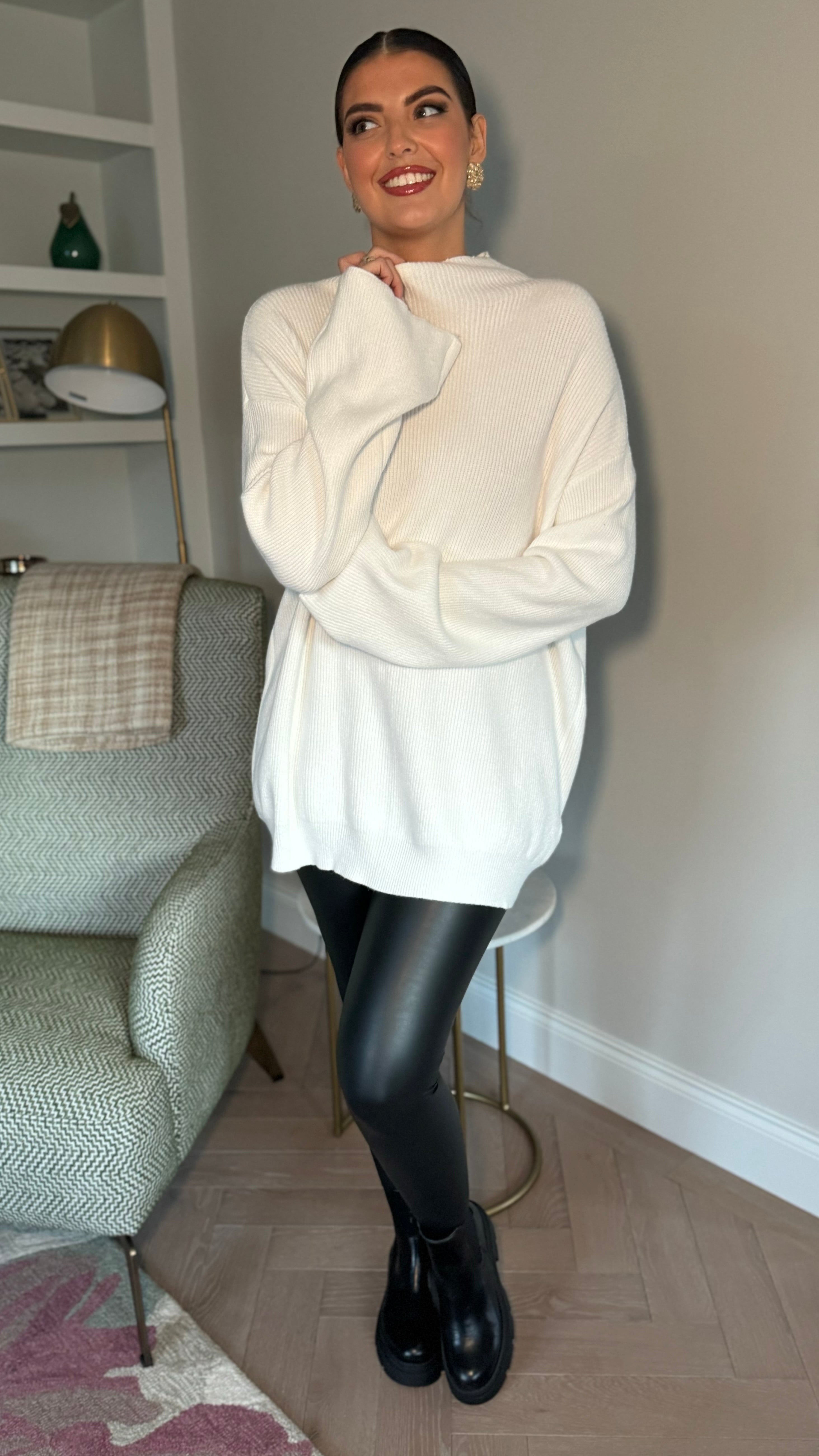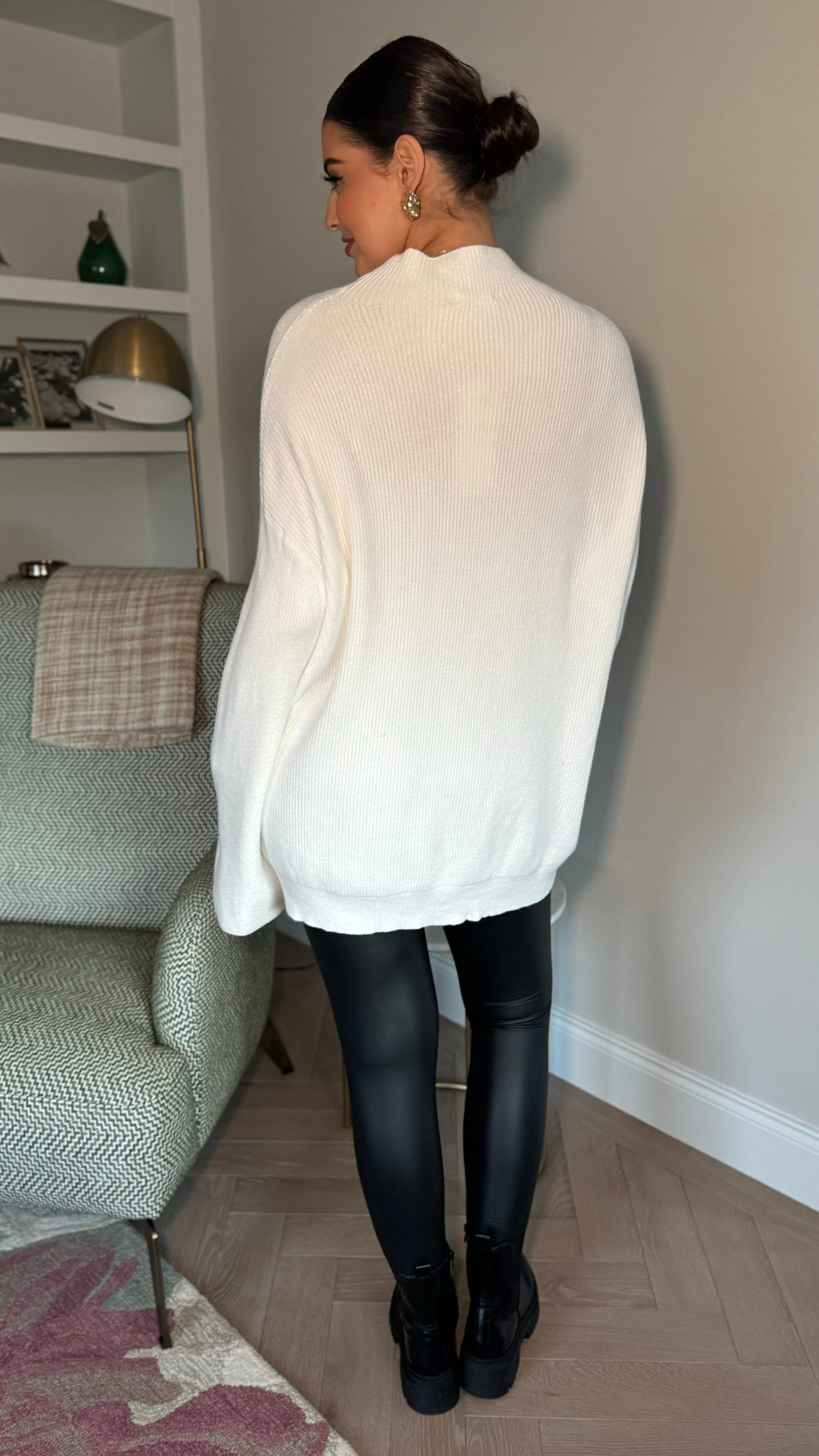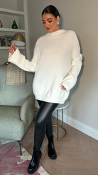 Get cozy and chic in this Michelle White Ribbed Turtle Neck Jumper. The ribbed texture adds a touch of sophistication while the turtle neck keeps you warm on chilly days. Perfect for layering or wearing on its own. Don't miss out on this must-have winter essential!