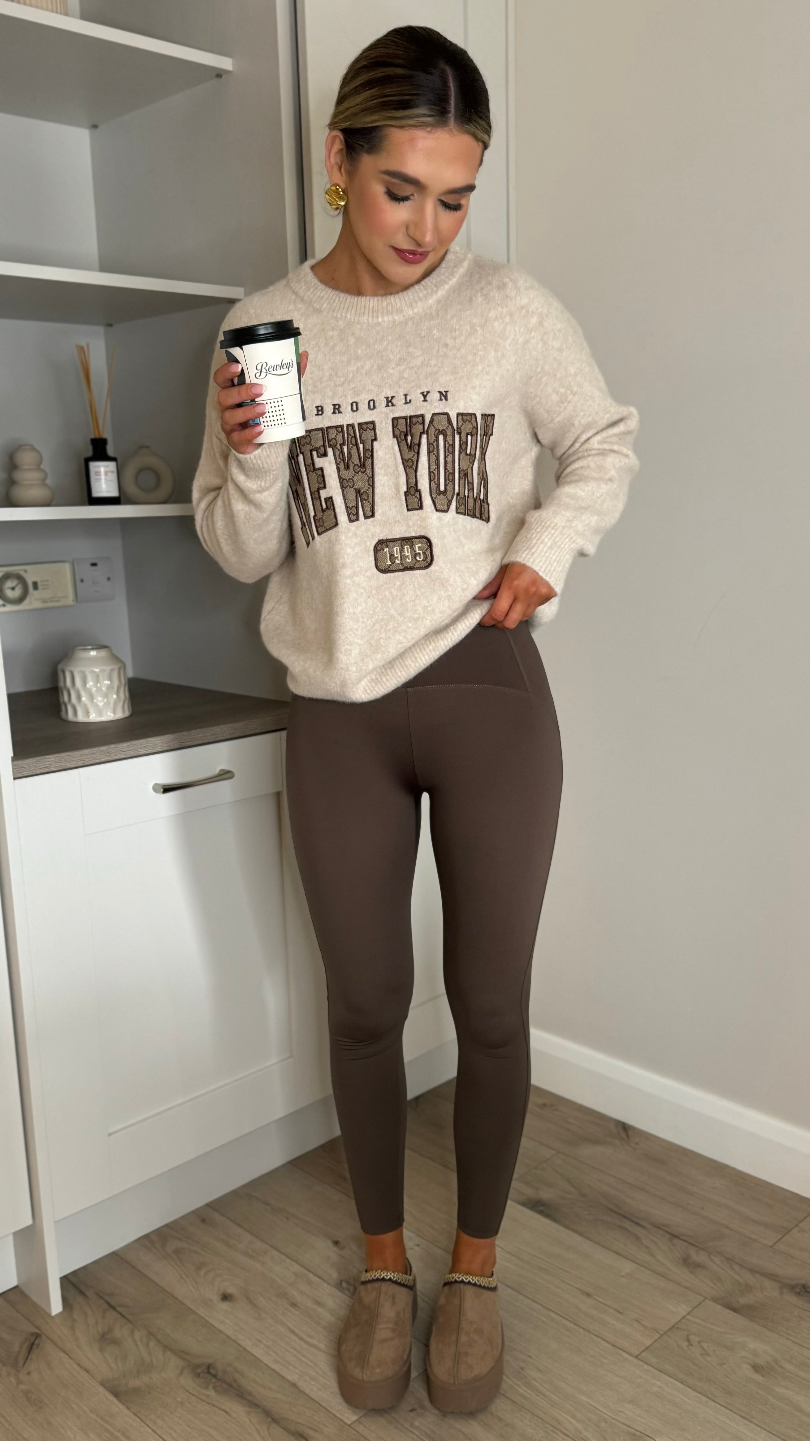 Troy Chocolate Brown High Waisted Fleece Lined Leggings