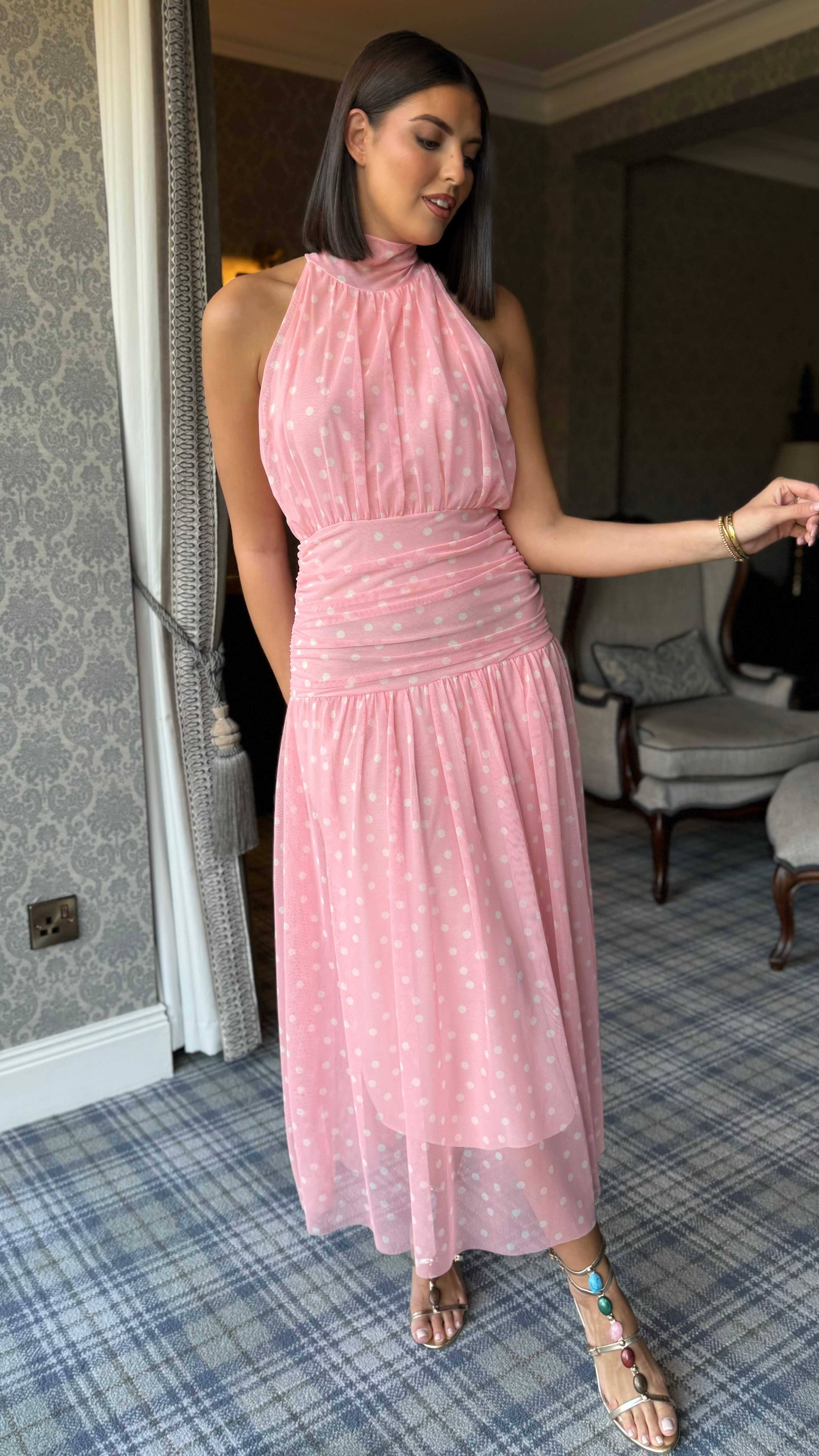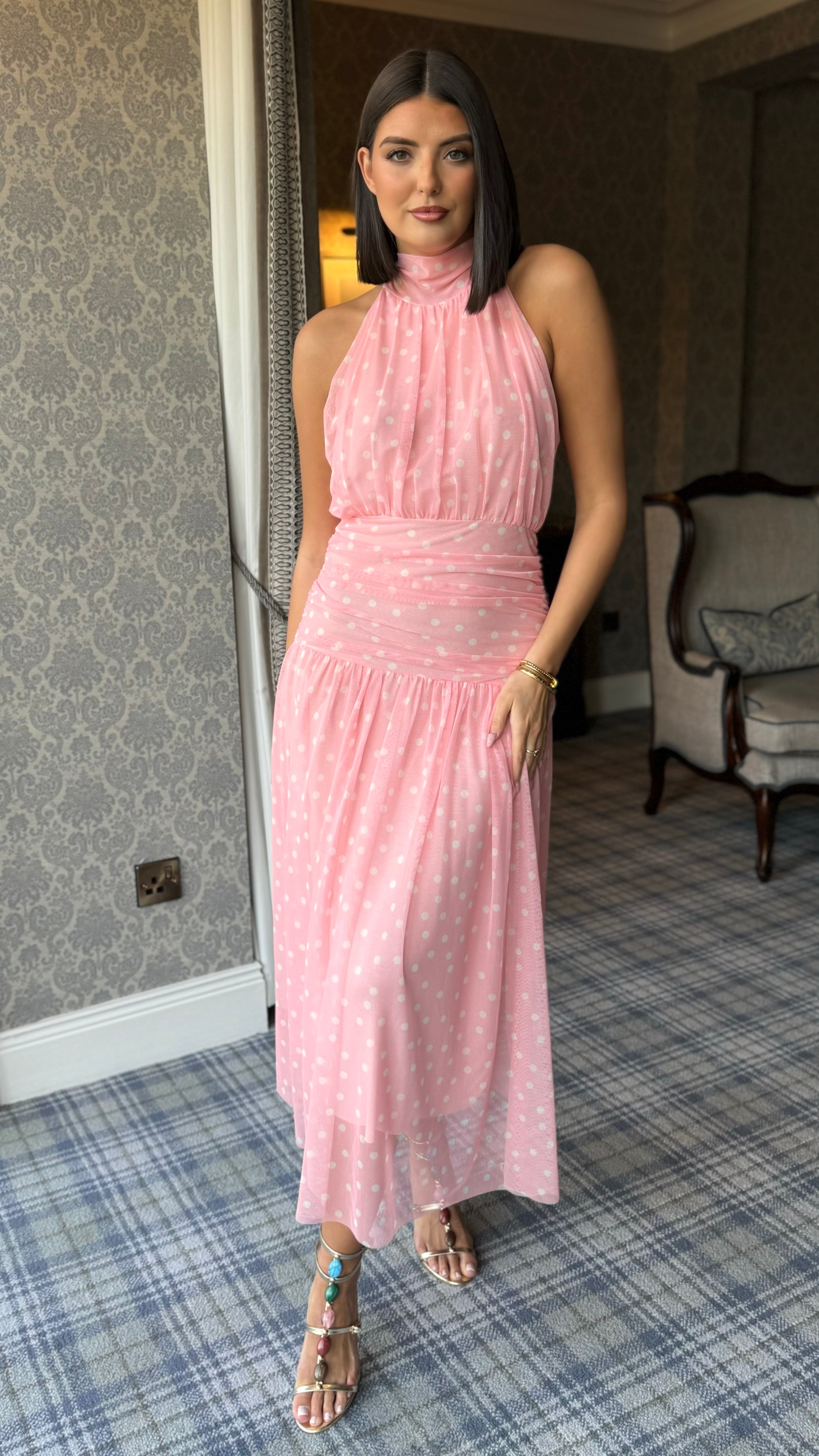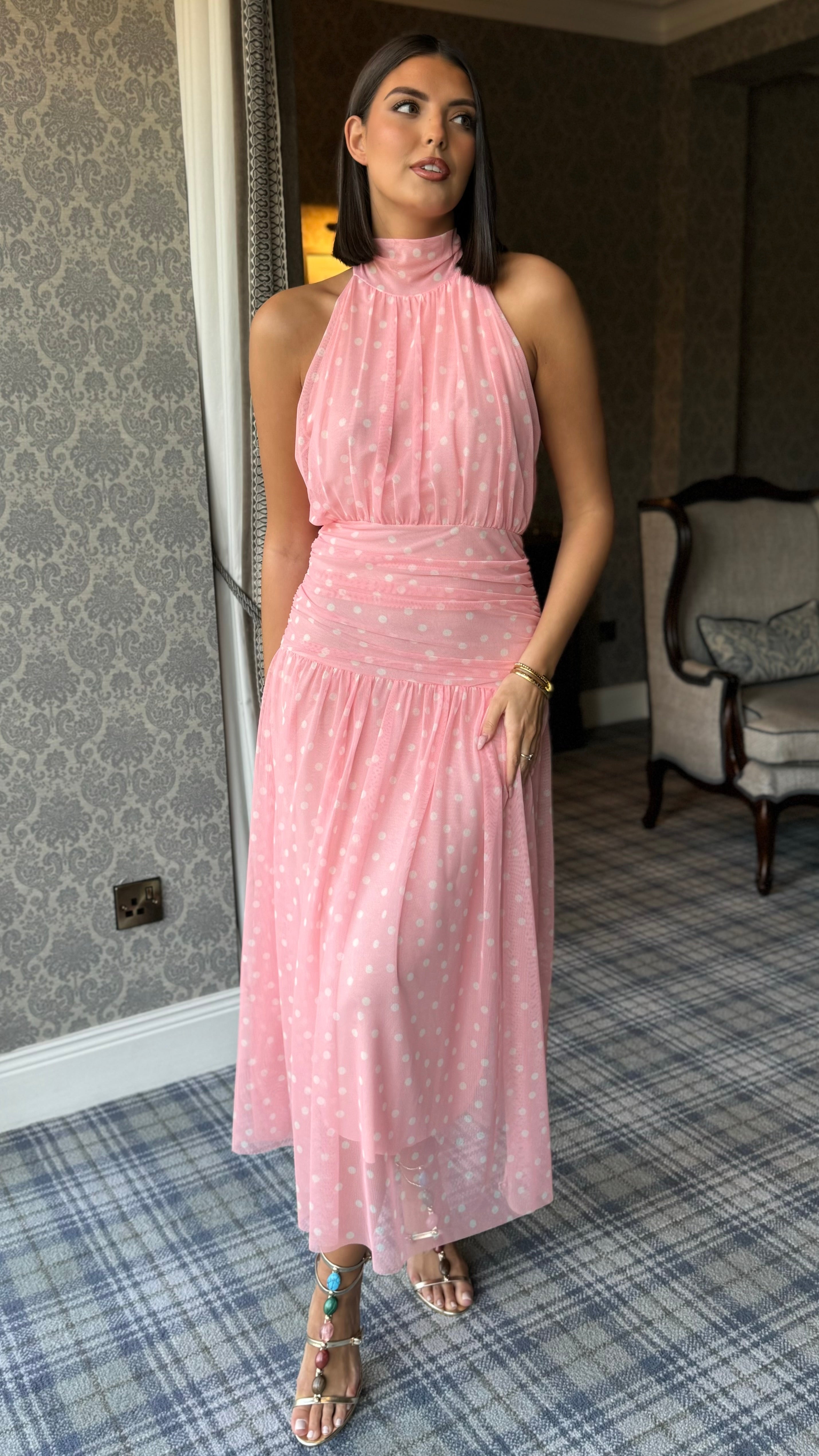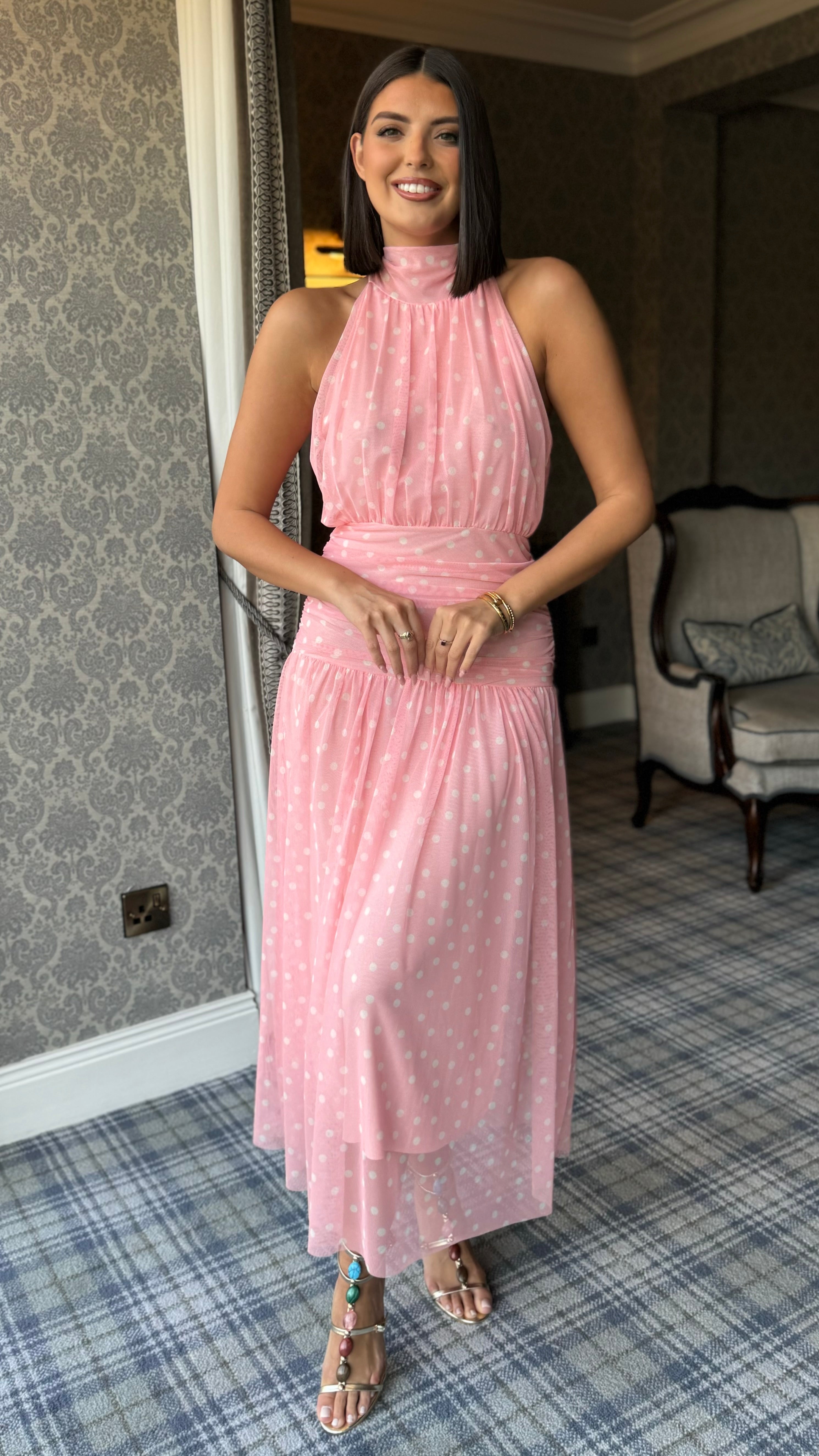 Bibi Pink Polka Dot High Neck Maxi Dress