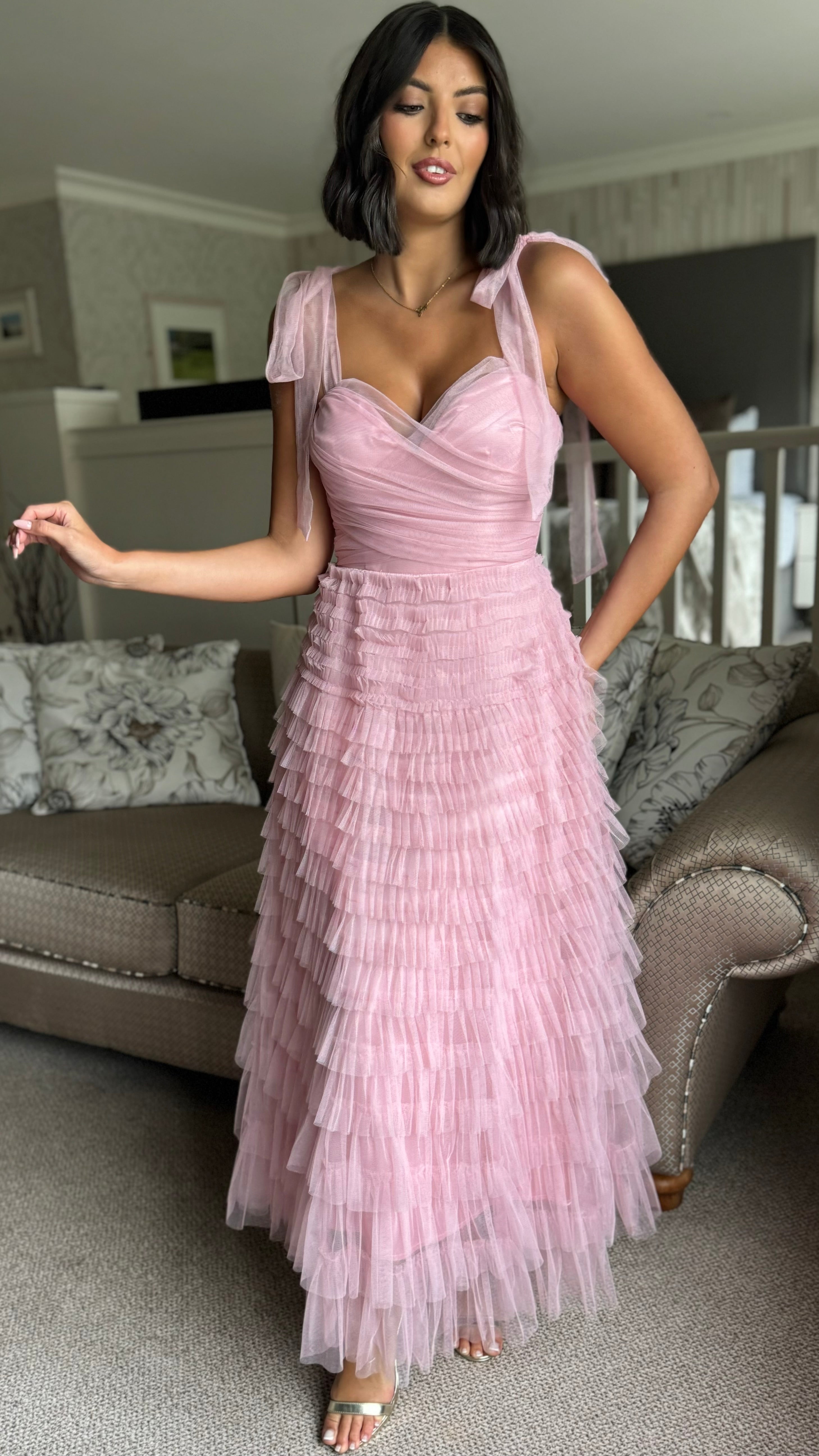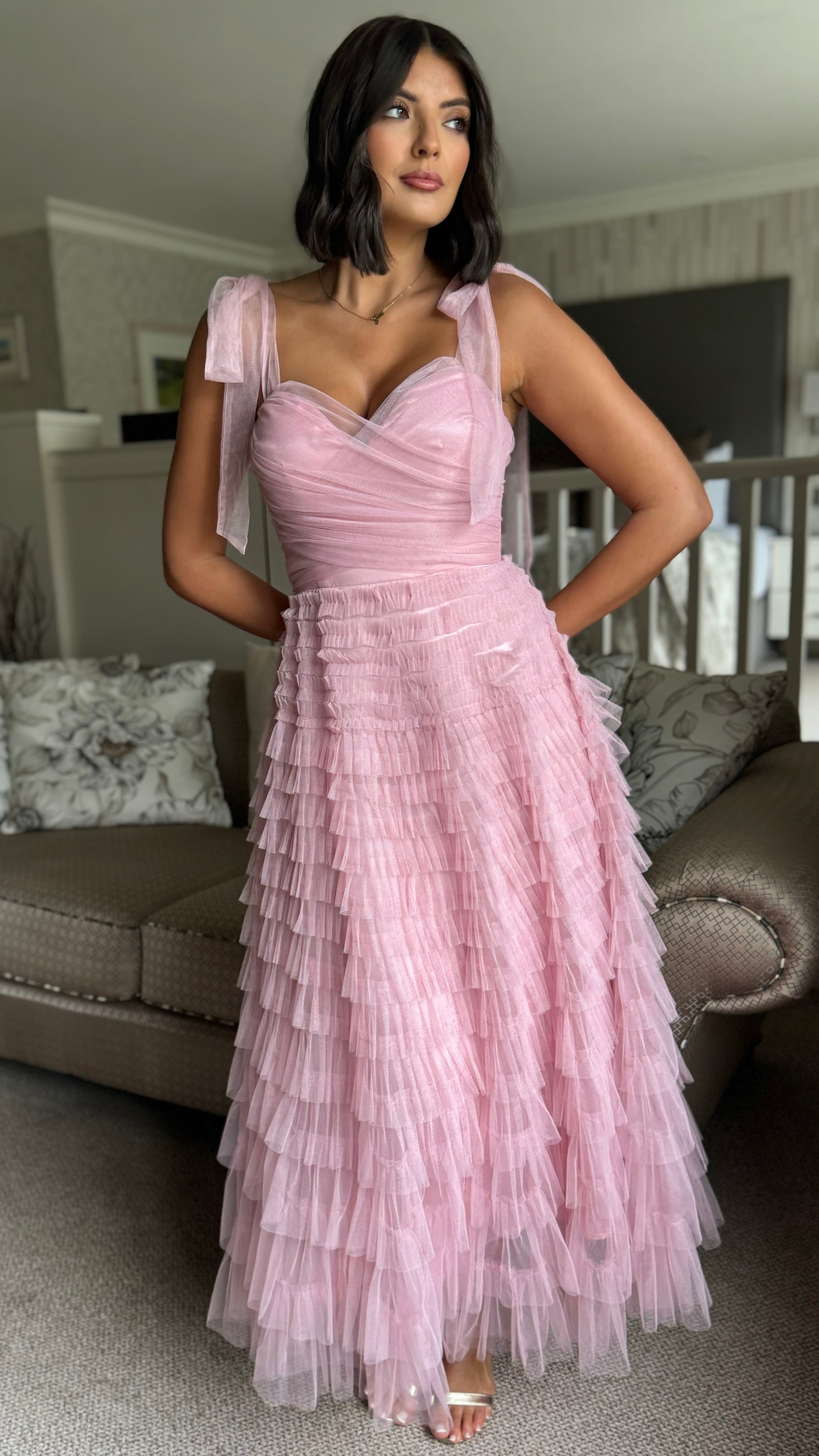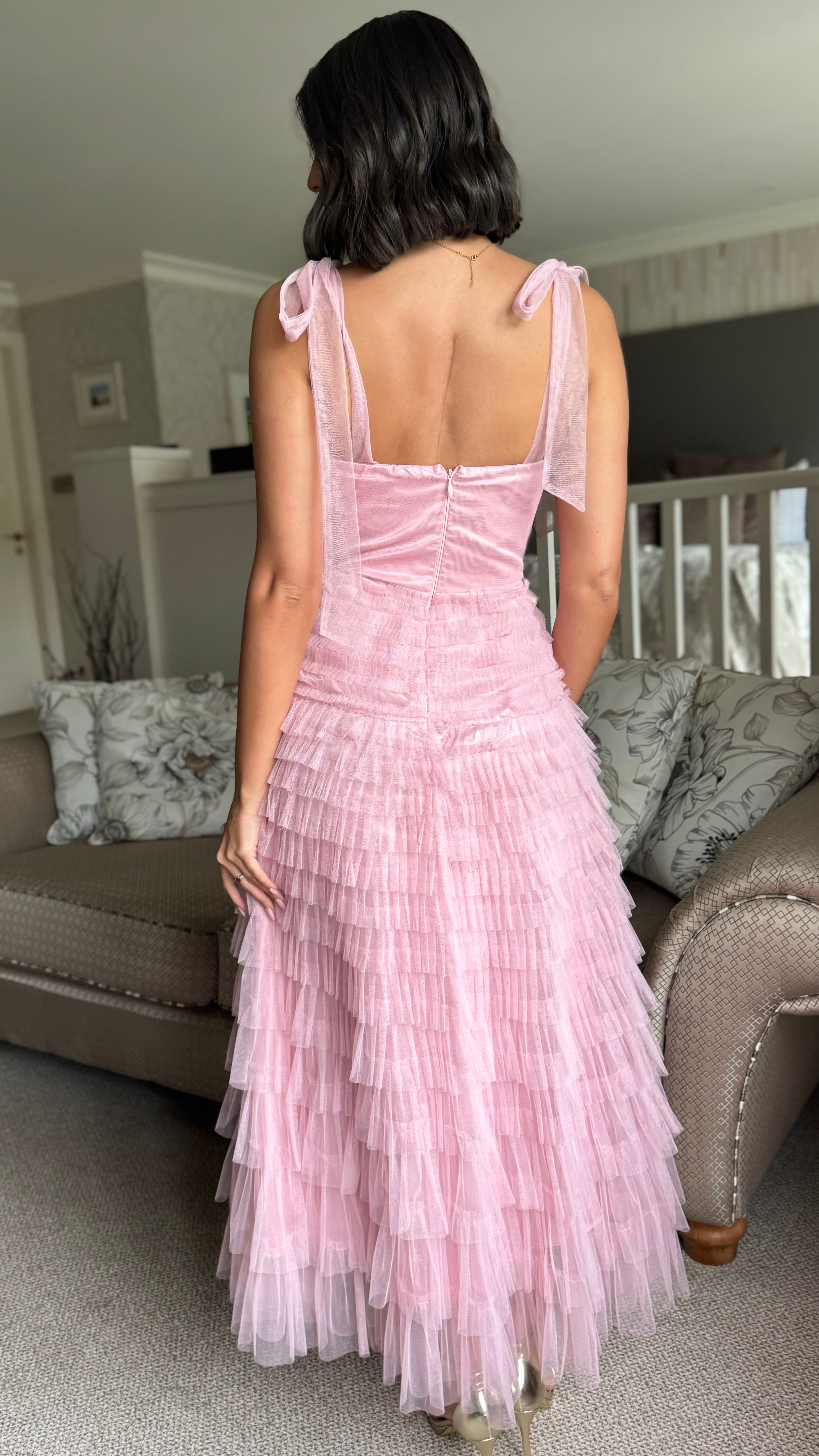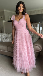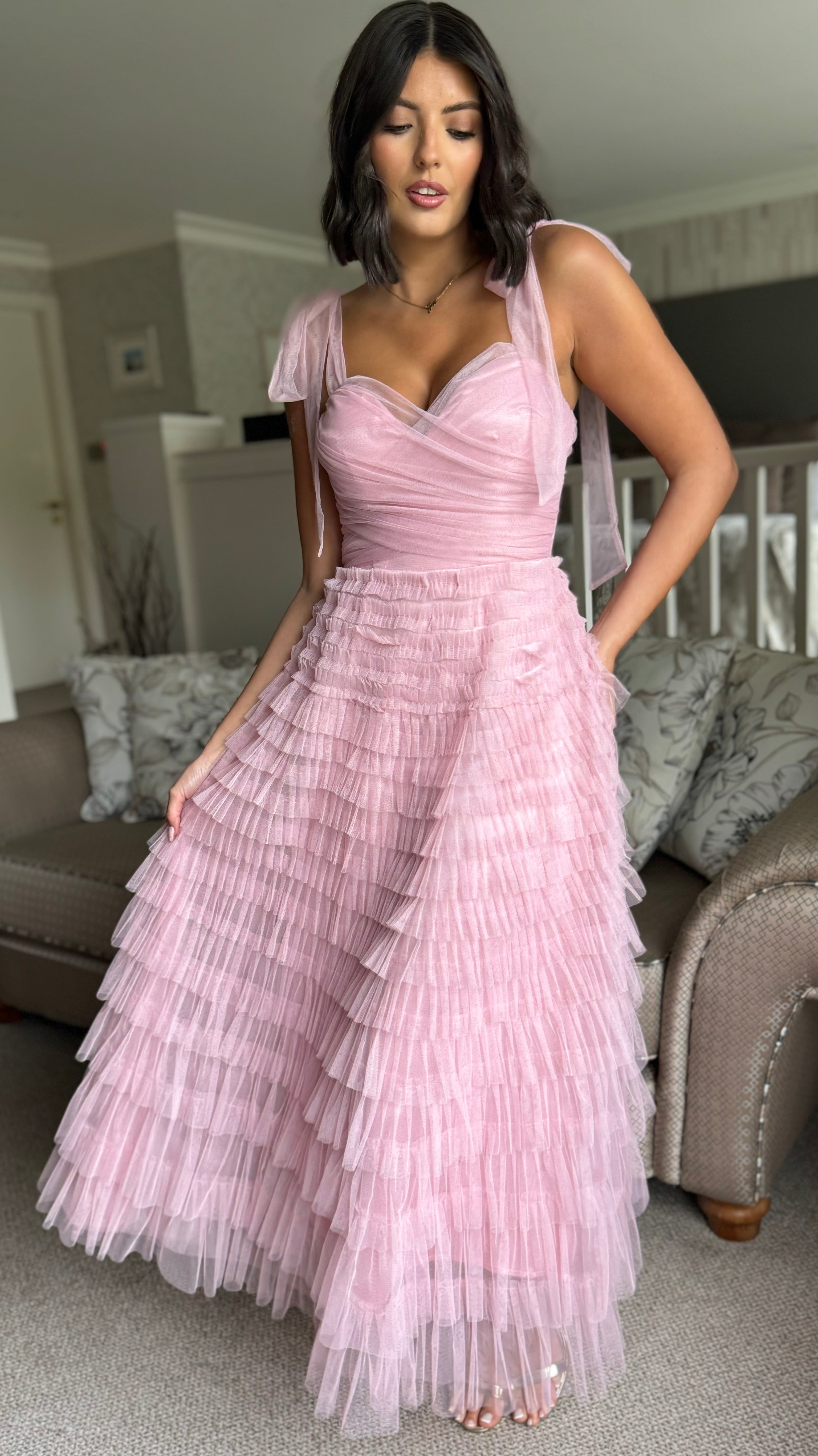 Layla Rose Pink Tulle Sweetheart Neckline Midi Dress