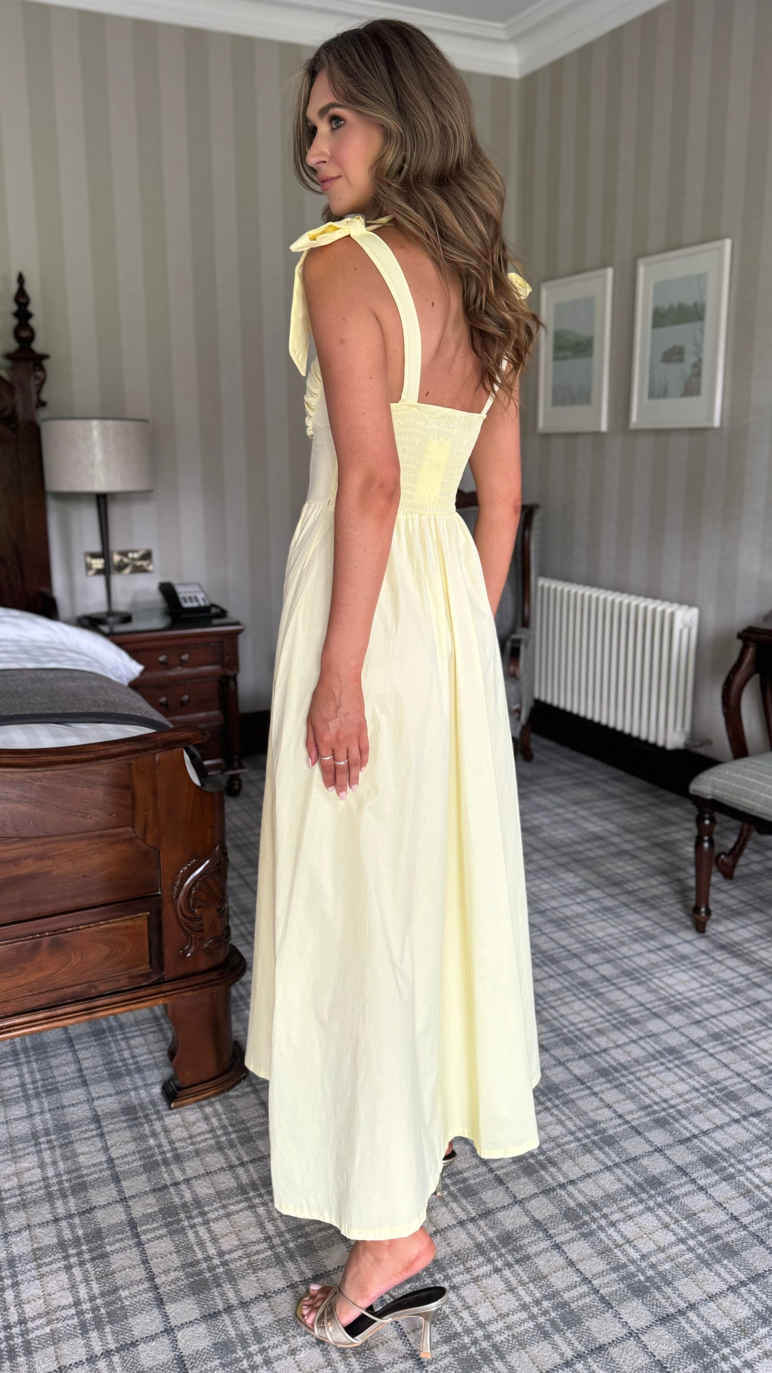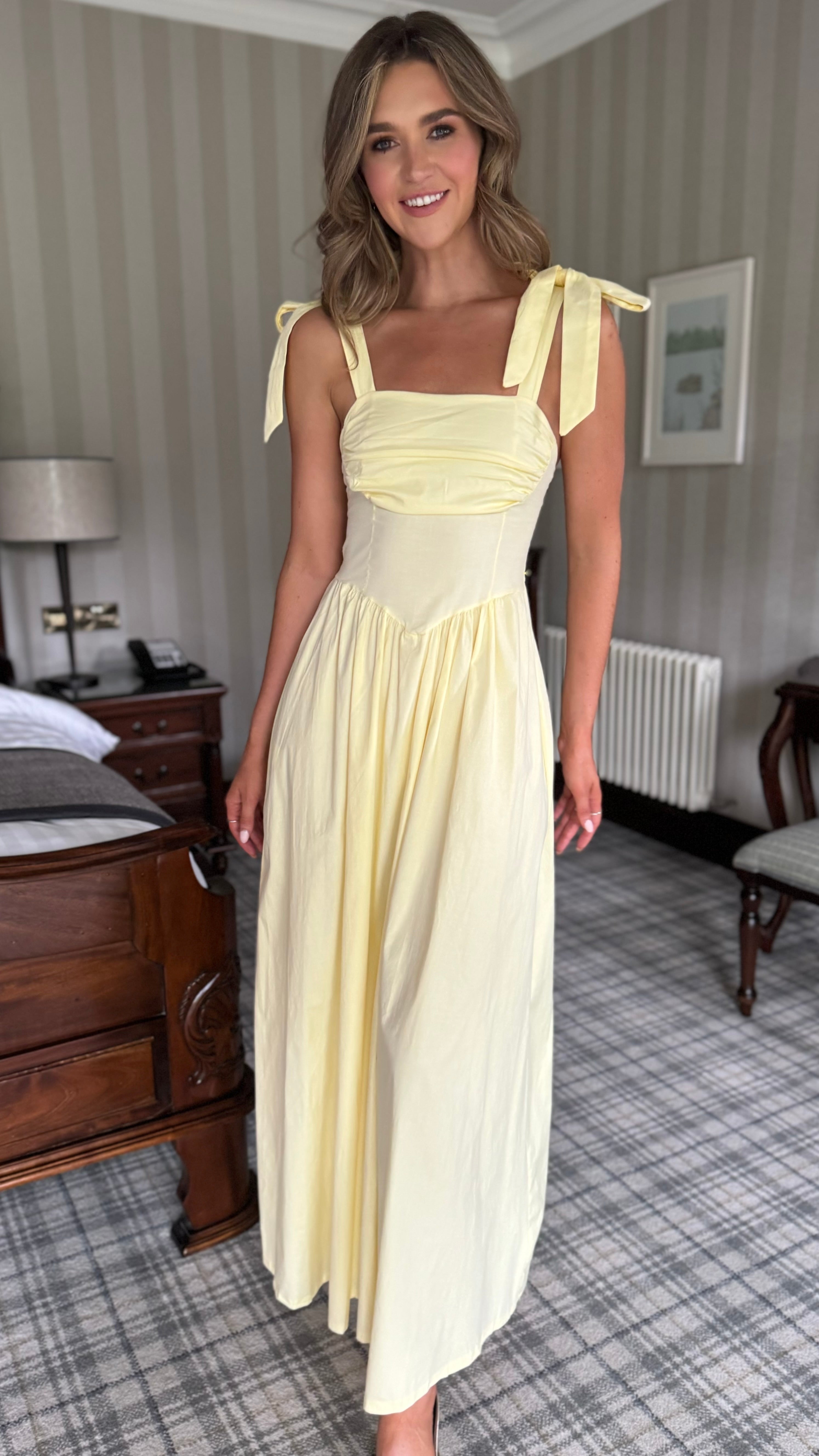 Luellen Yellow Tie Shoulder Straps Ruched Bust Detail Midaxi Dress