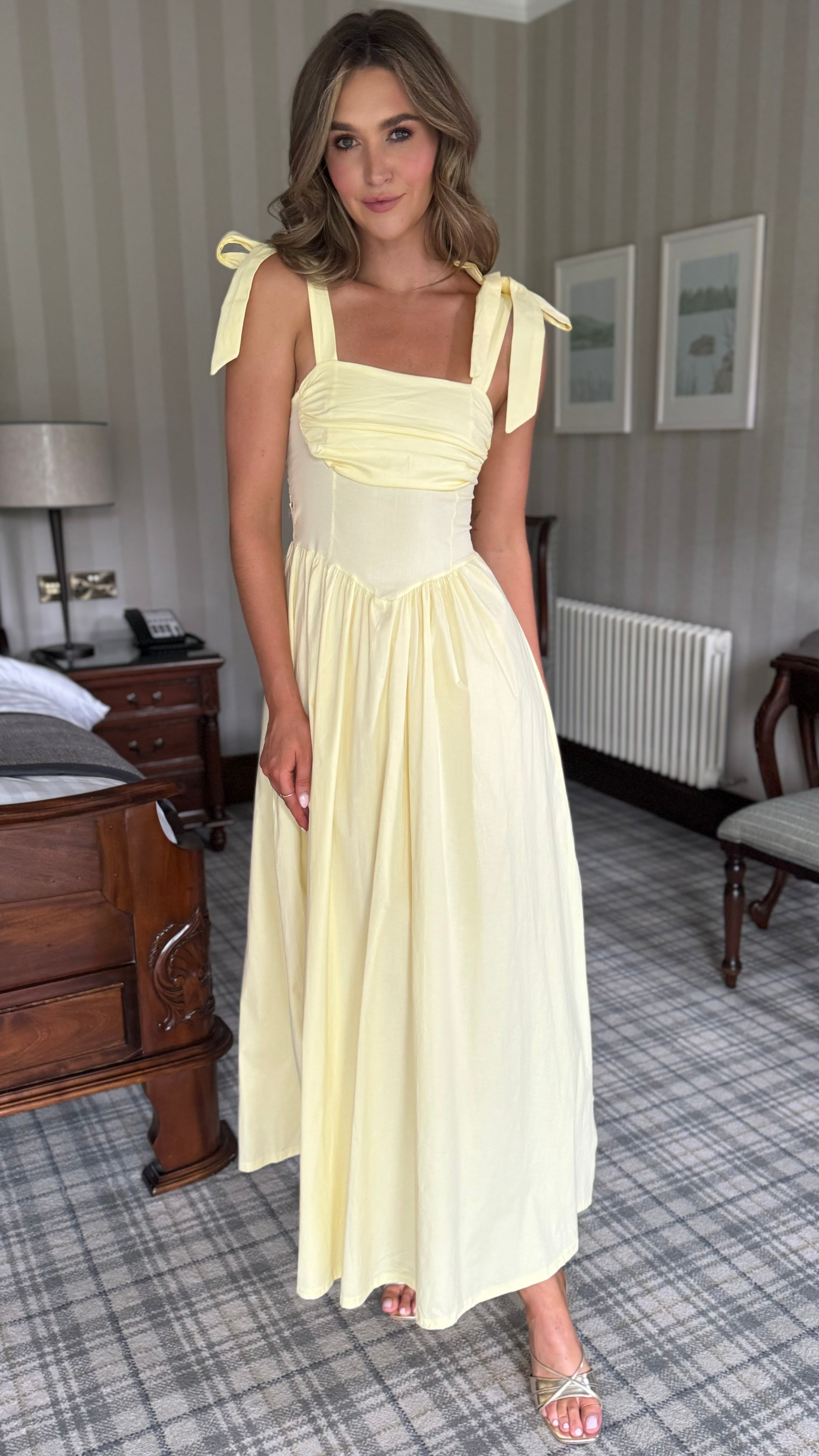 Brighten your collection with the Luellen Yellow Midaxi Dress, featuring delicate tie shoulder straps and a ruched bust that enhances your figure with subtle elegance. Its refined silhouette and vibrant colour make it an ideal choice for sophisticated occasions, blending comfort with timeless style. Perfect for making a graceful statement wherever you go. 🌟💛