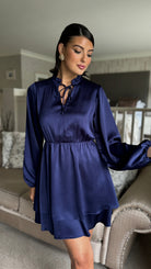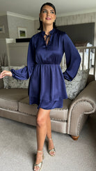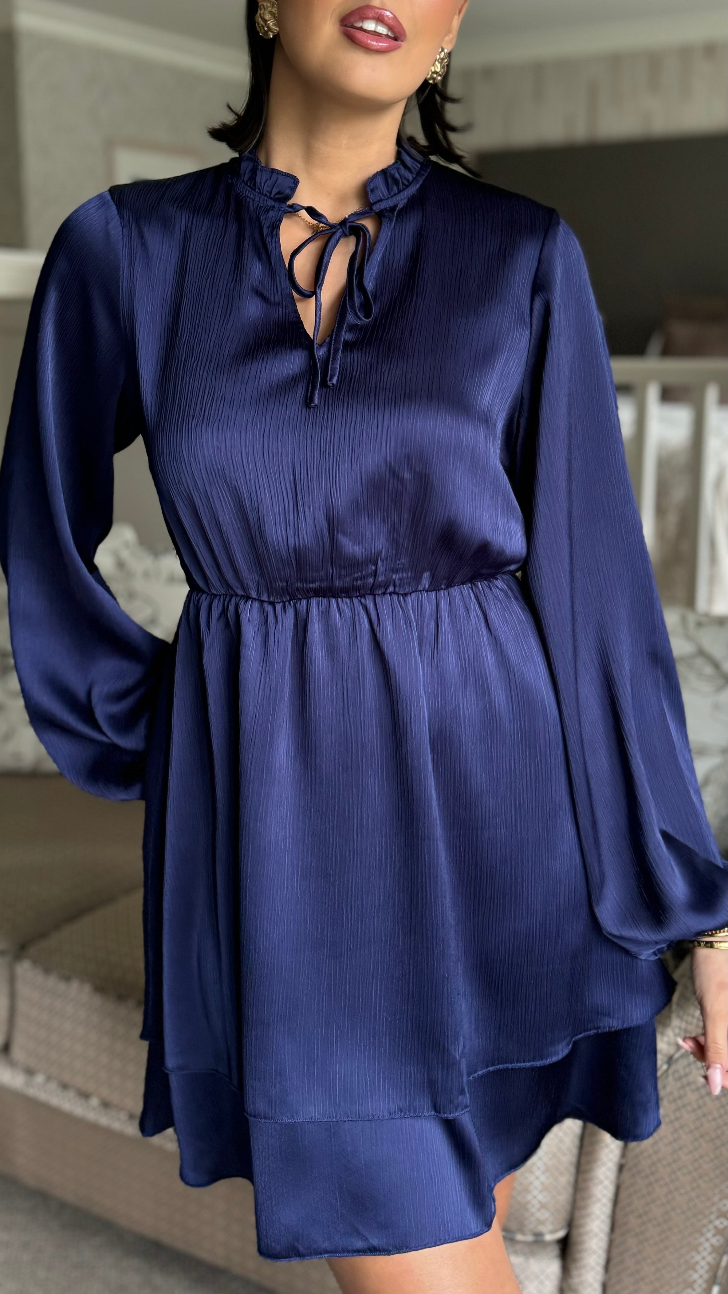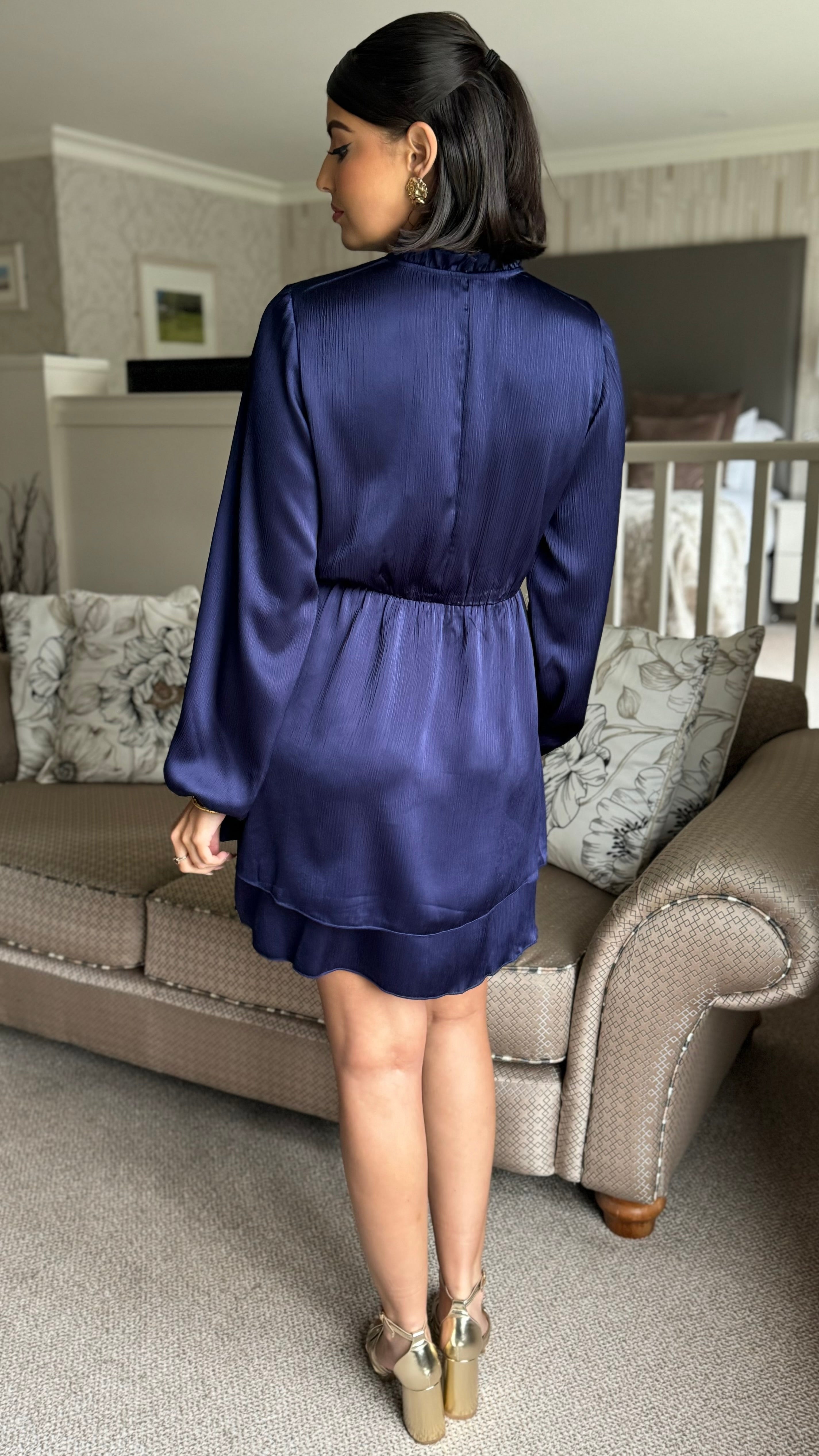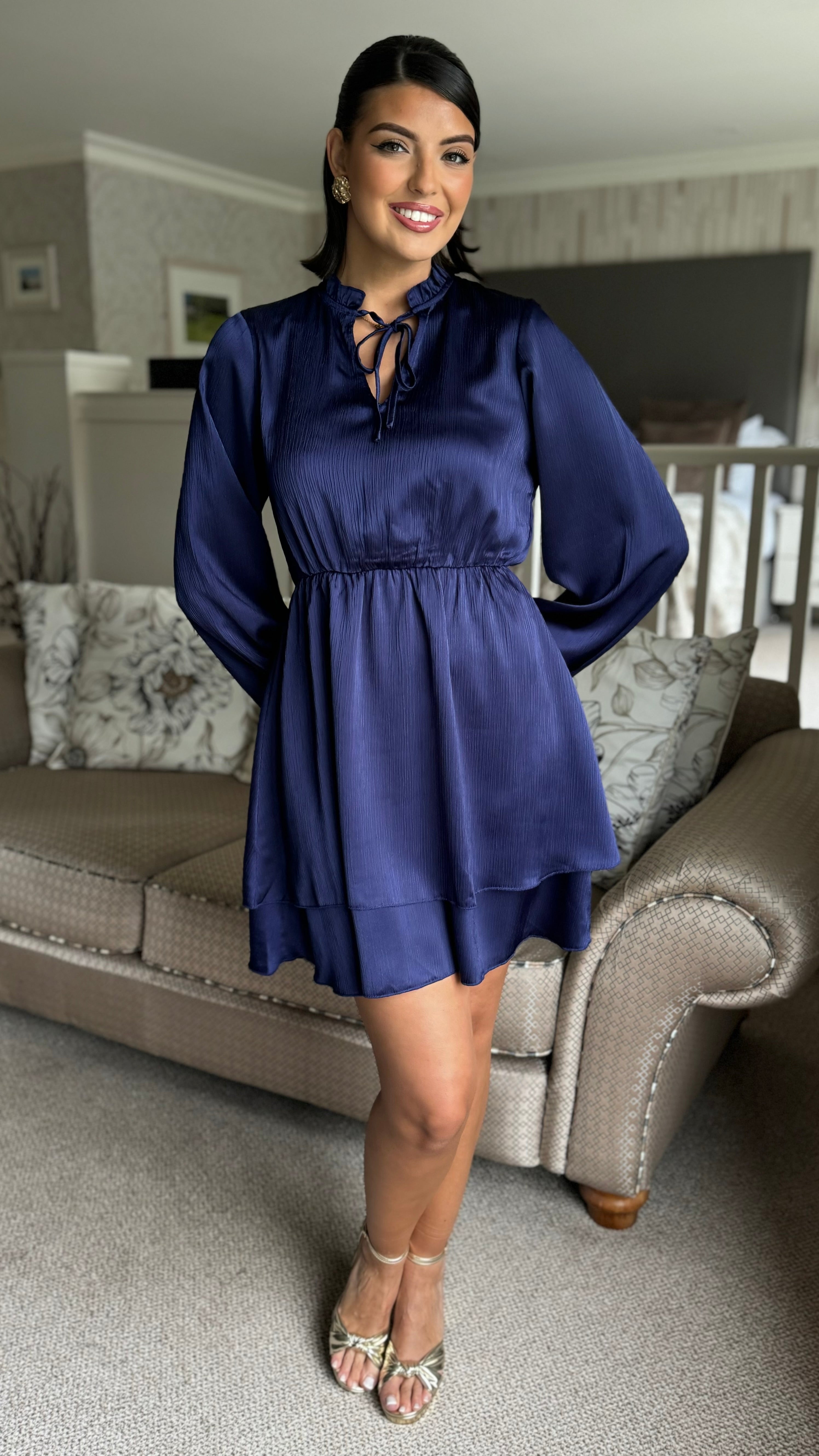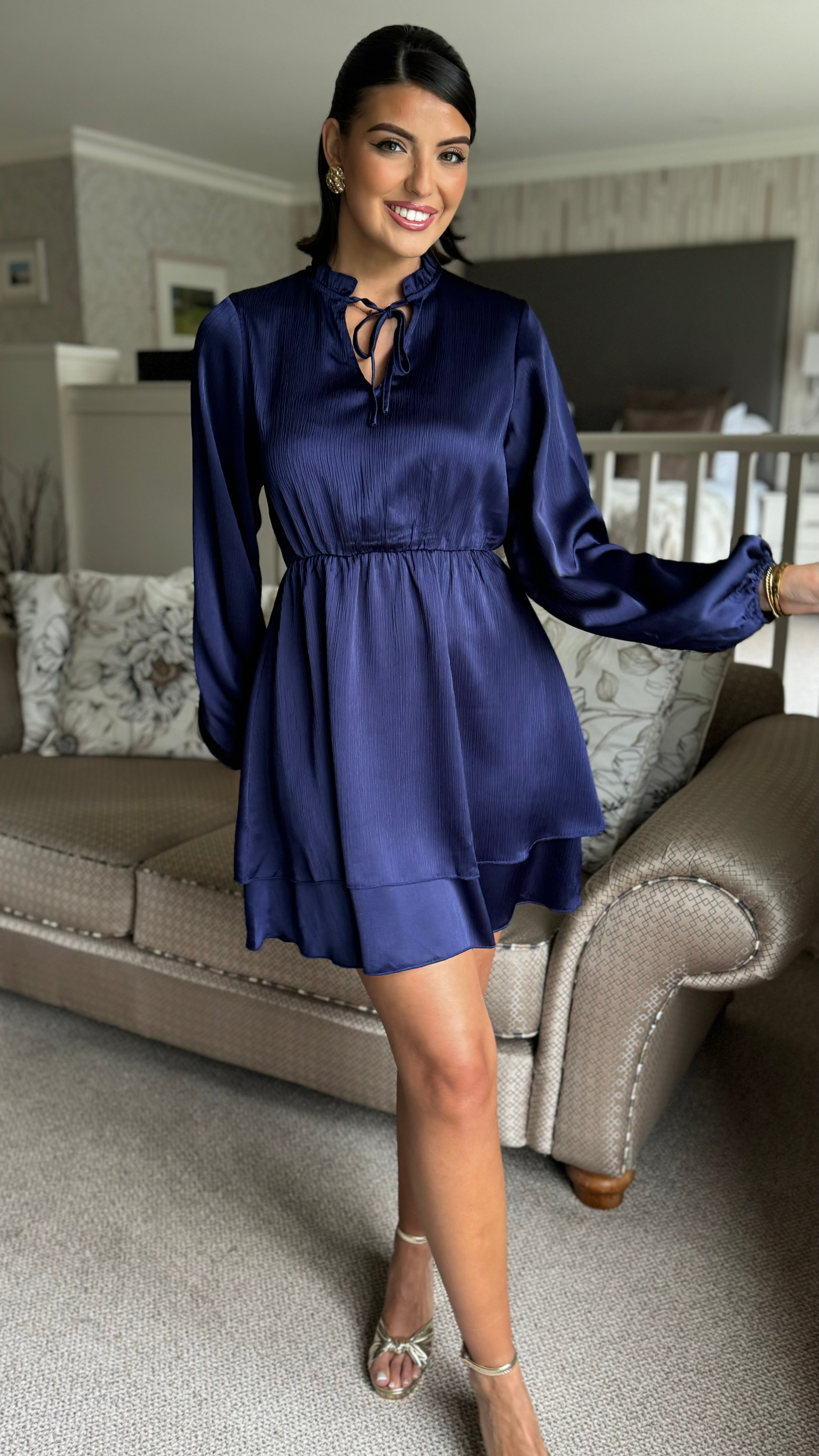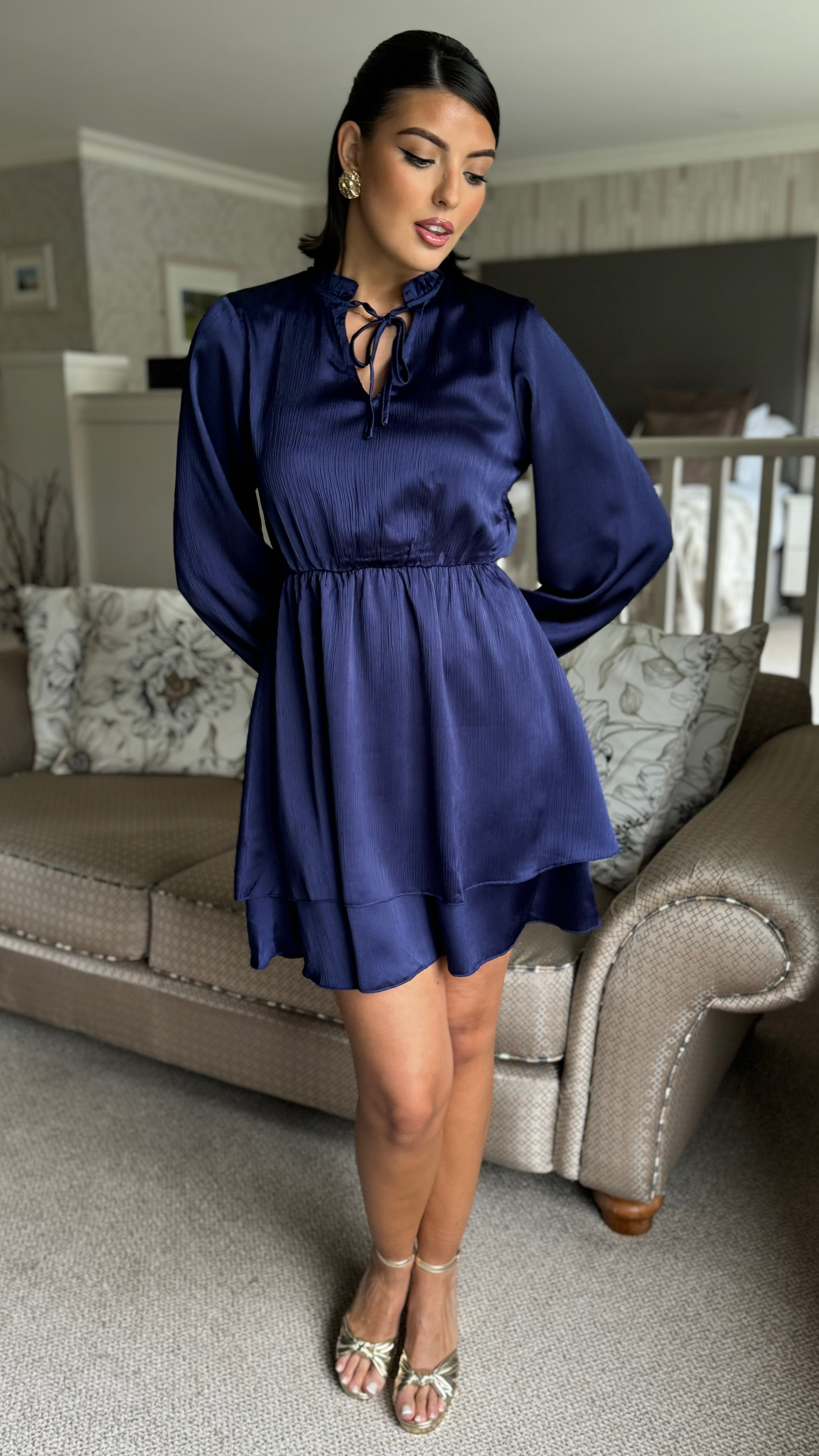 Etta Navy Long Sleeve Ruffle Mini Dress