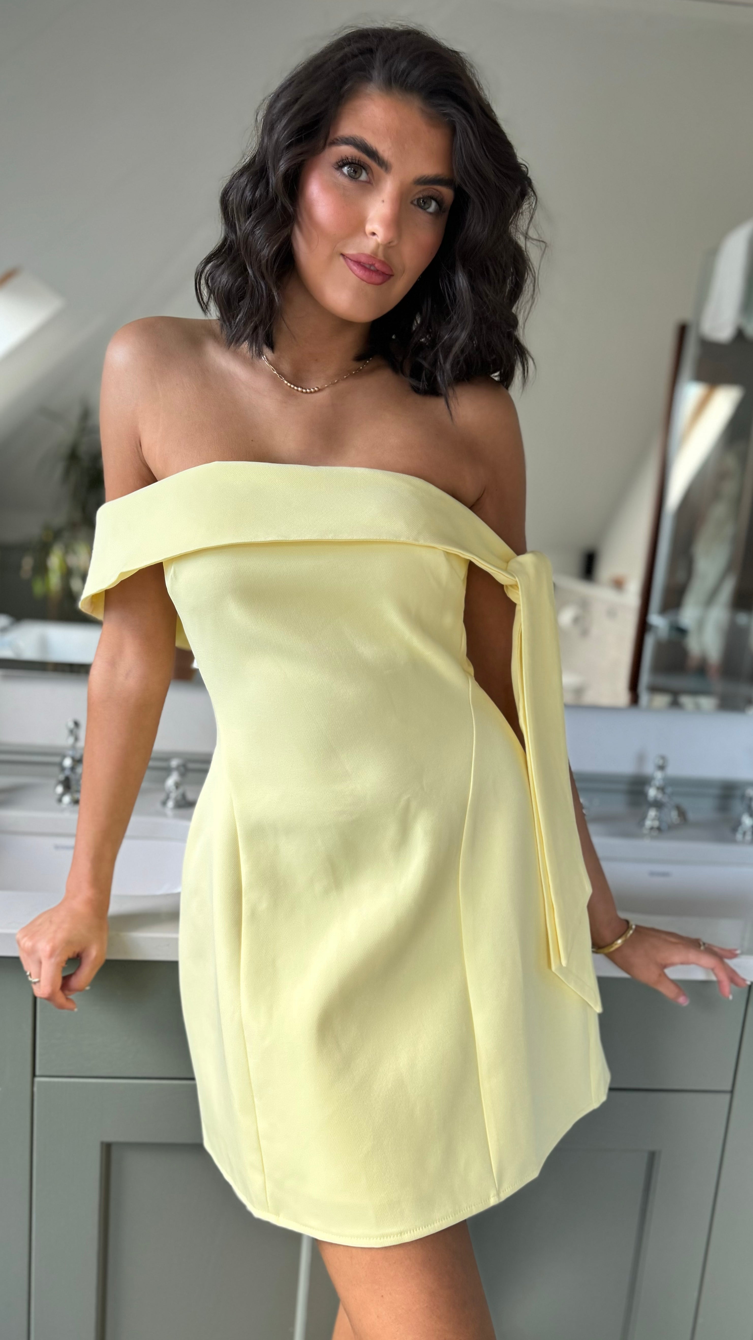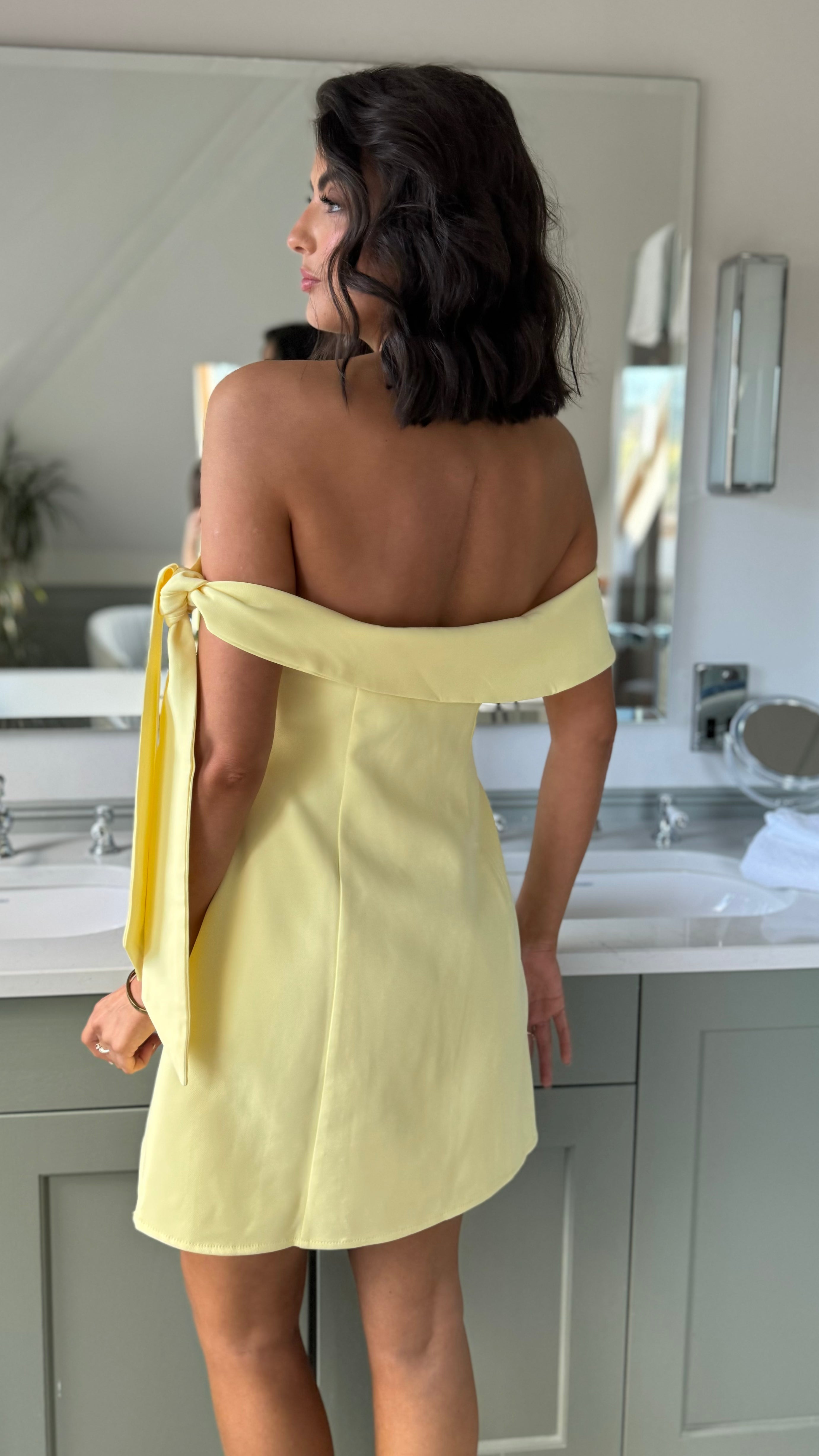 Florrie Yellow Off Shoulder Tie Detai Mini Dress